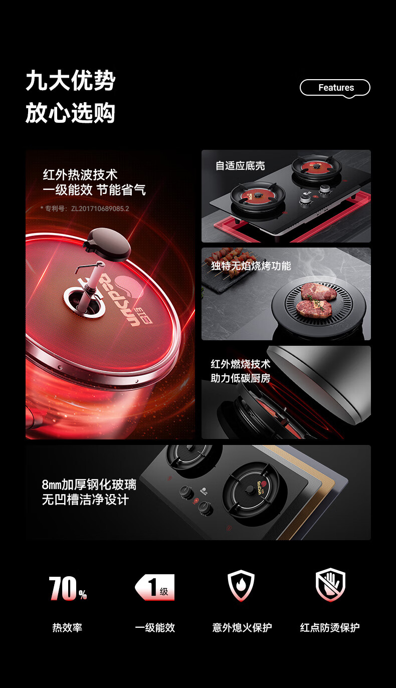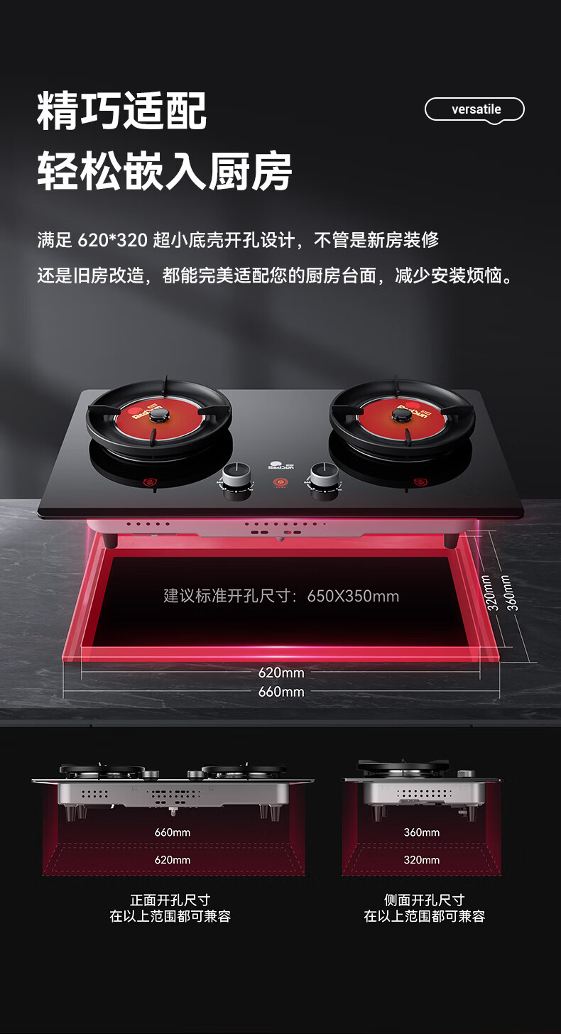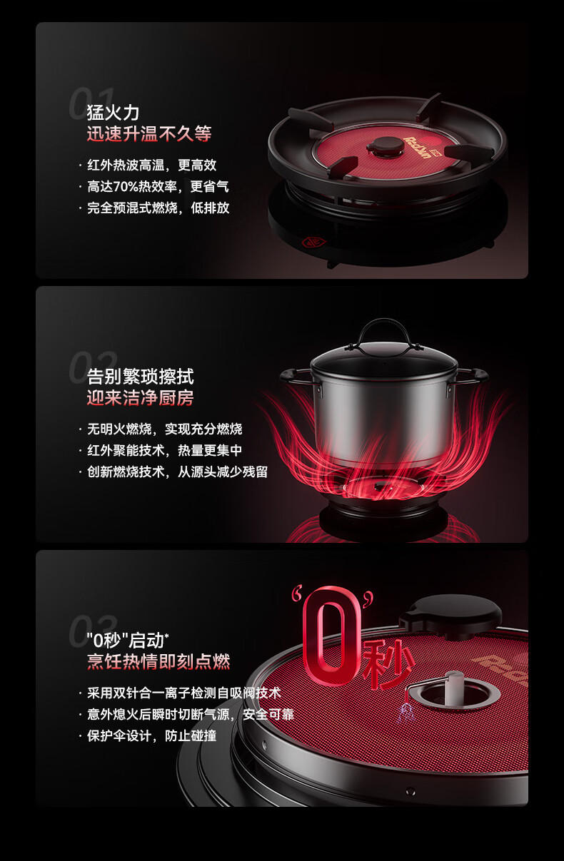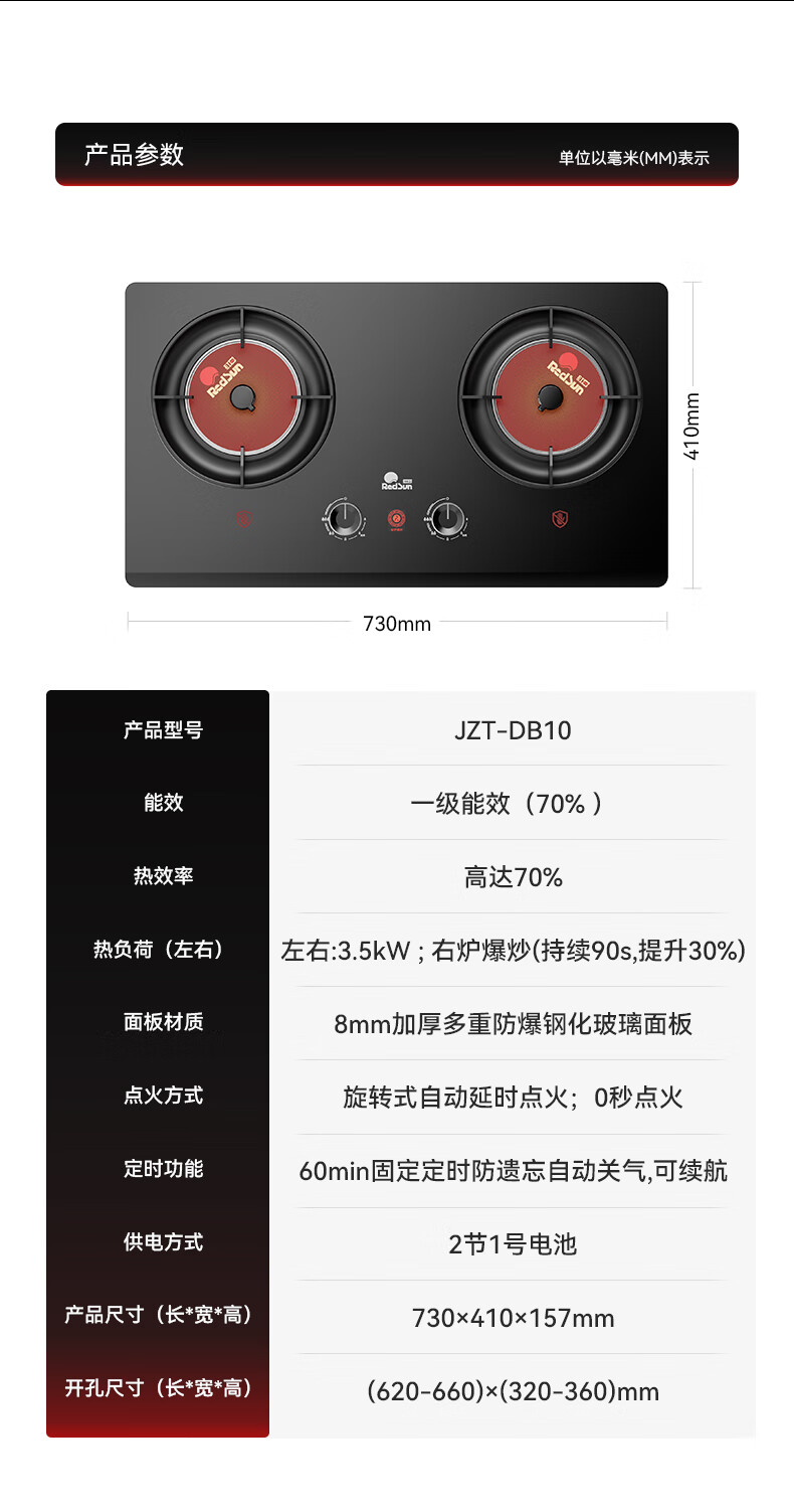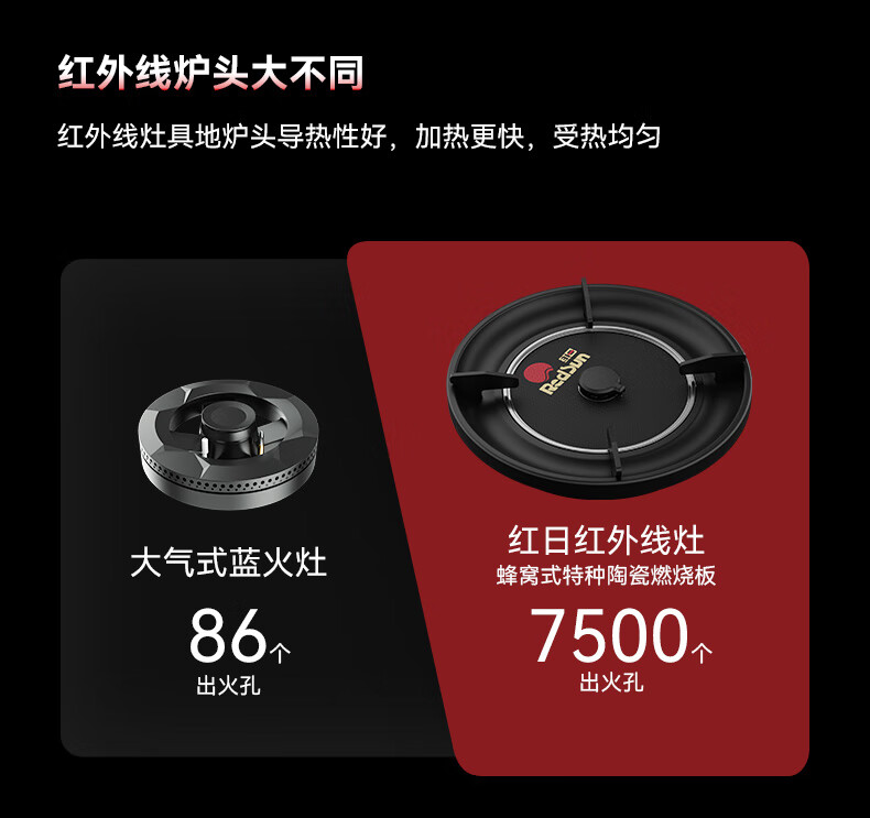 红日(RedSun)DB10聚能红外线灶具健康节能底定时猛火爆炒70%高热效率免改孔小底壳 70%高热效率免改孔定时爆炒红外灶 DB10 天然气