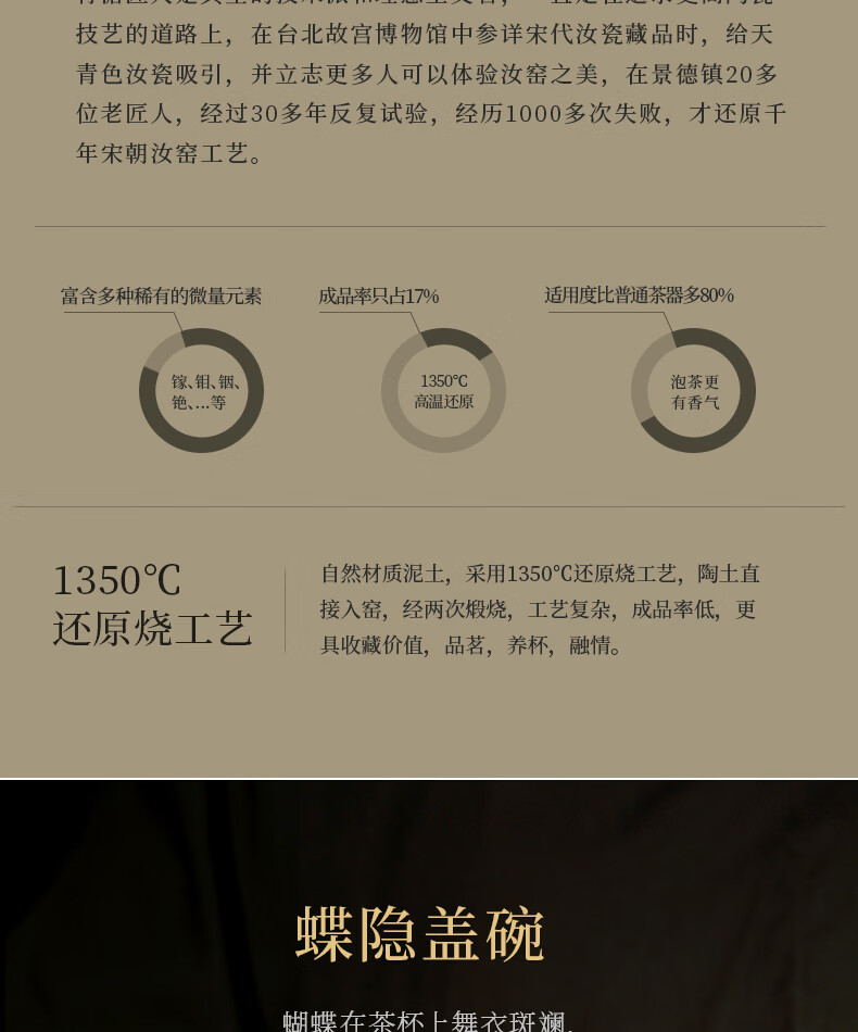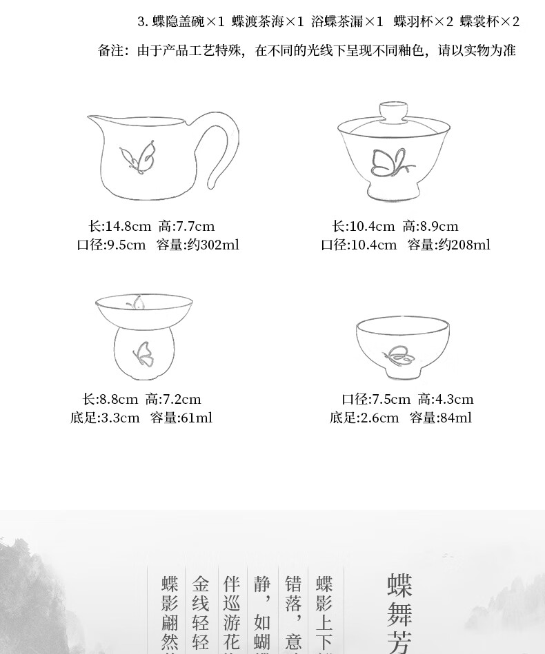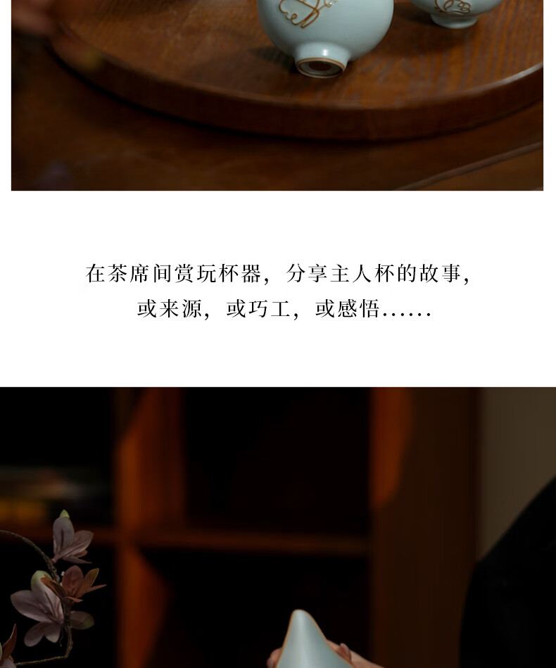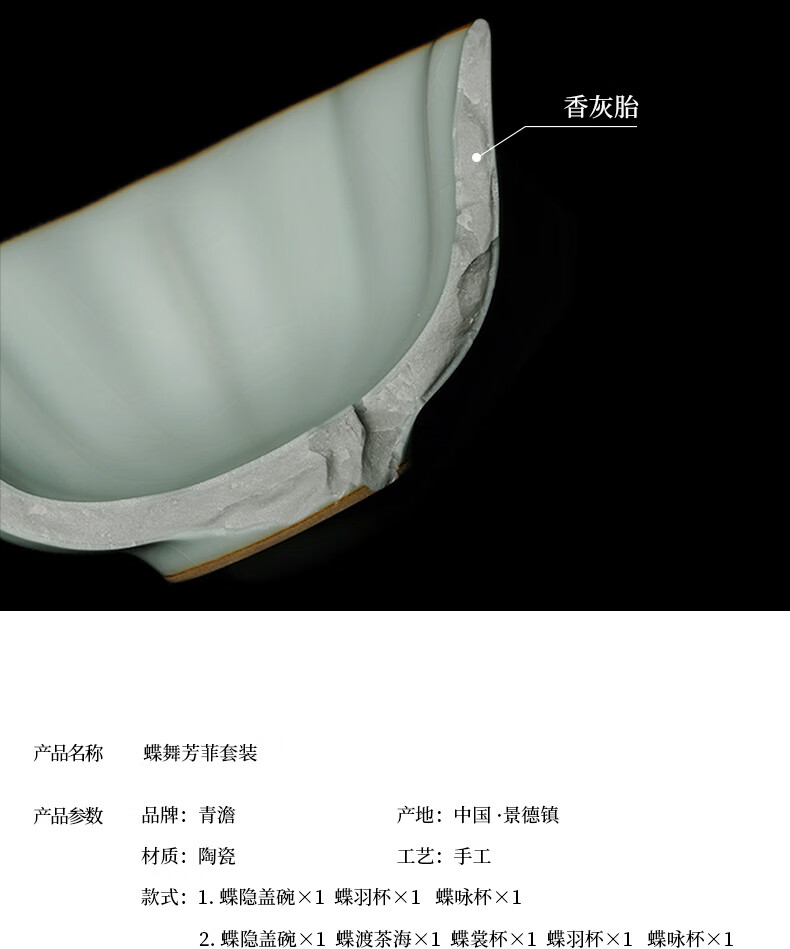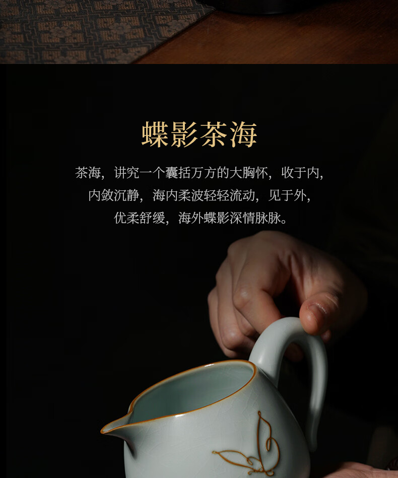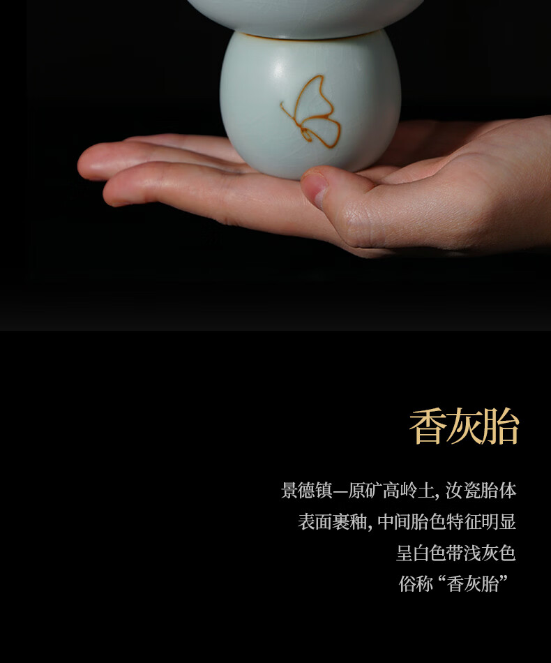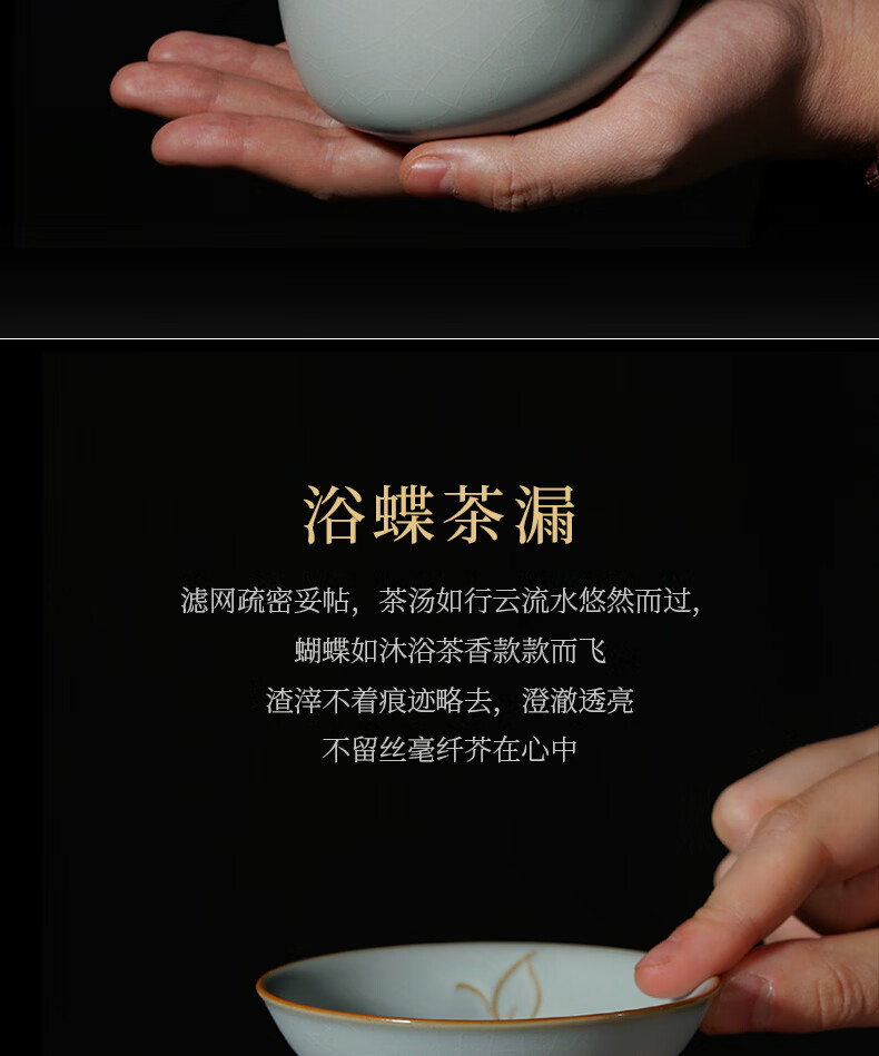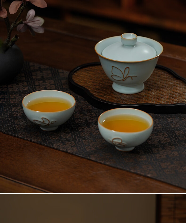 青澹墨雅青澹汝窑茶具套装礼品冰裂釉汝瓷整套茶杯茶壶礼盒装陶瓷盖碗茶具 青澹蝶舞芳菲7件套