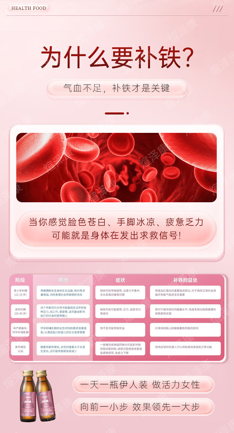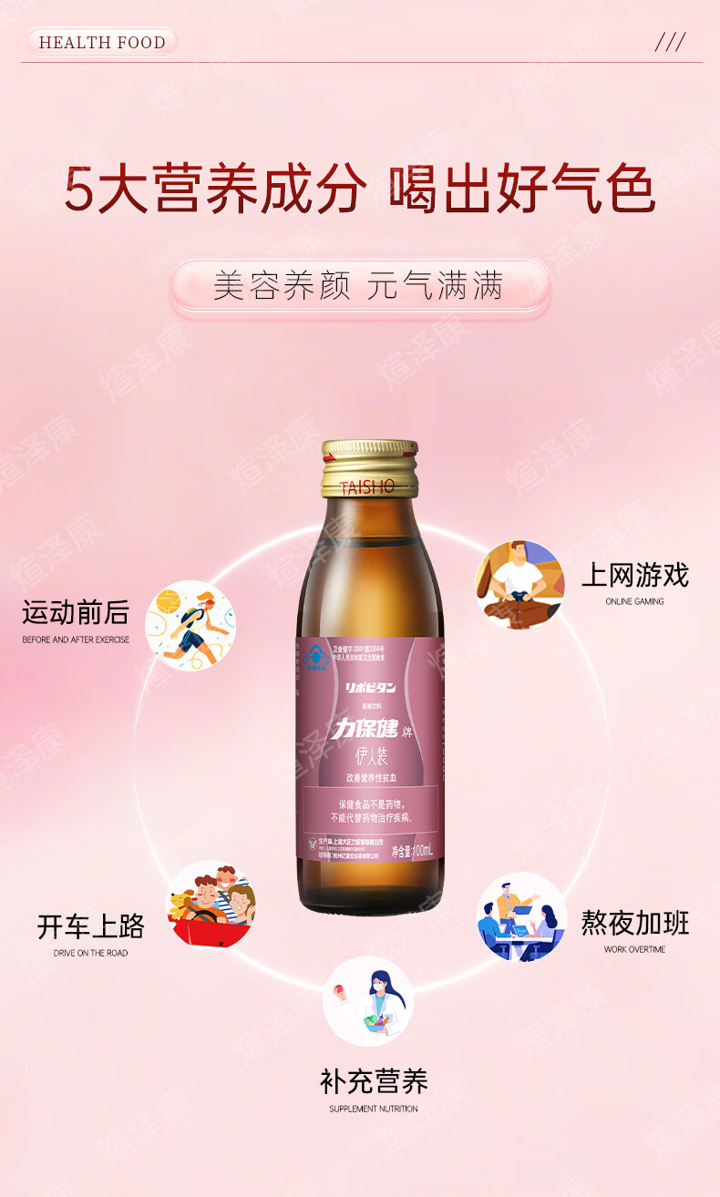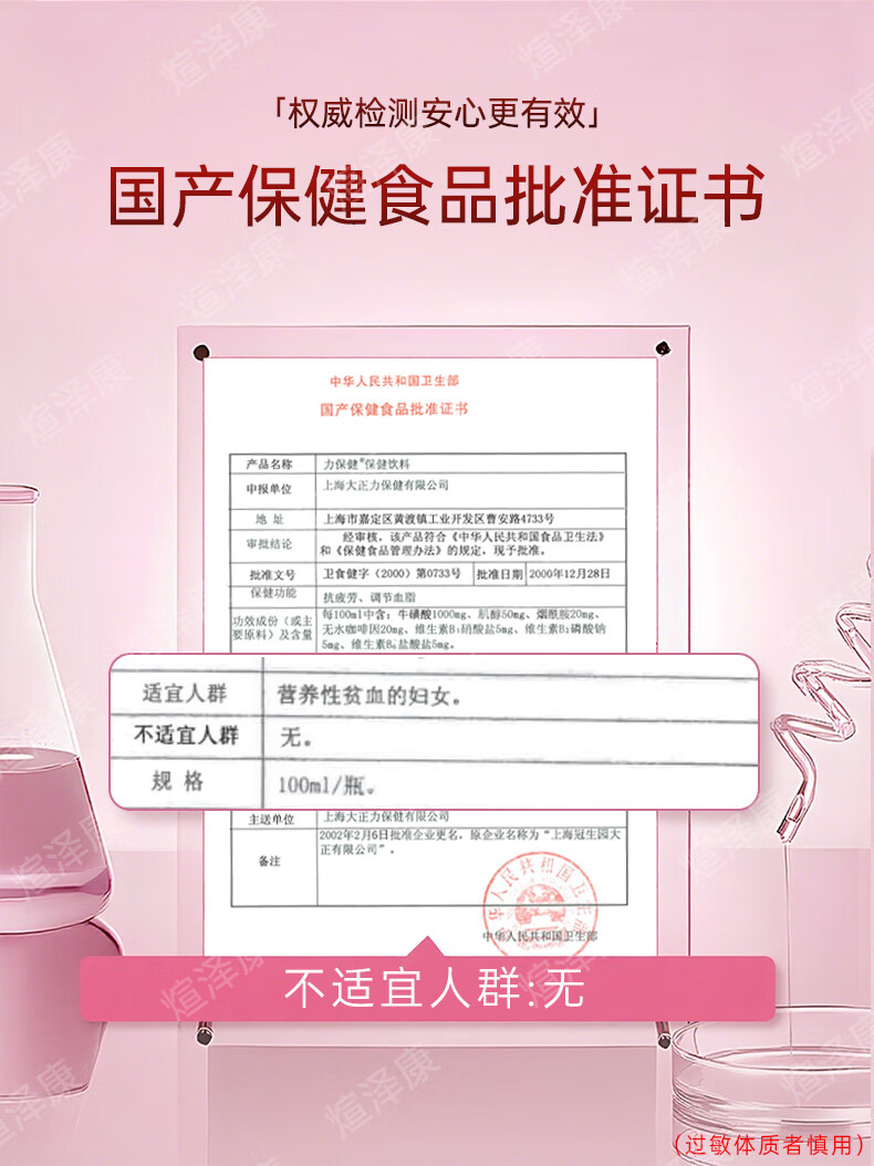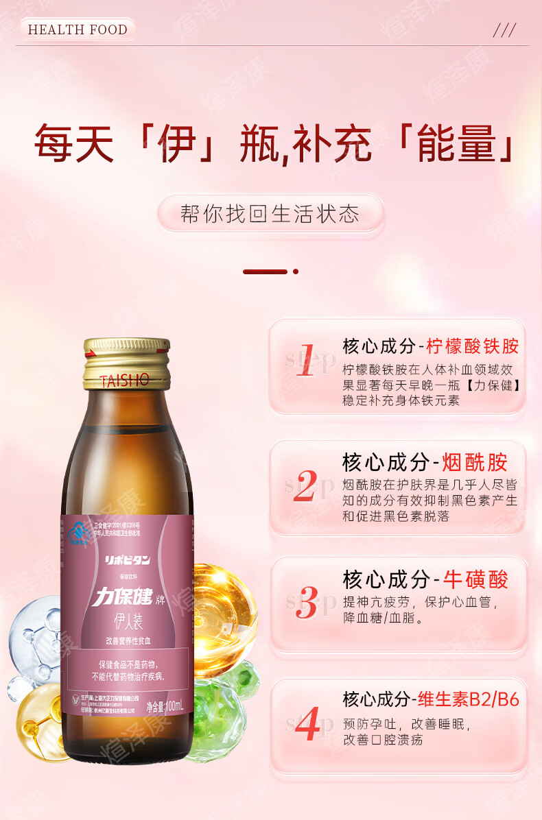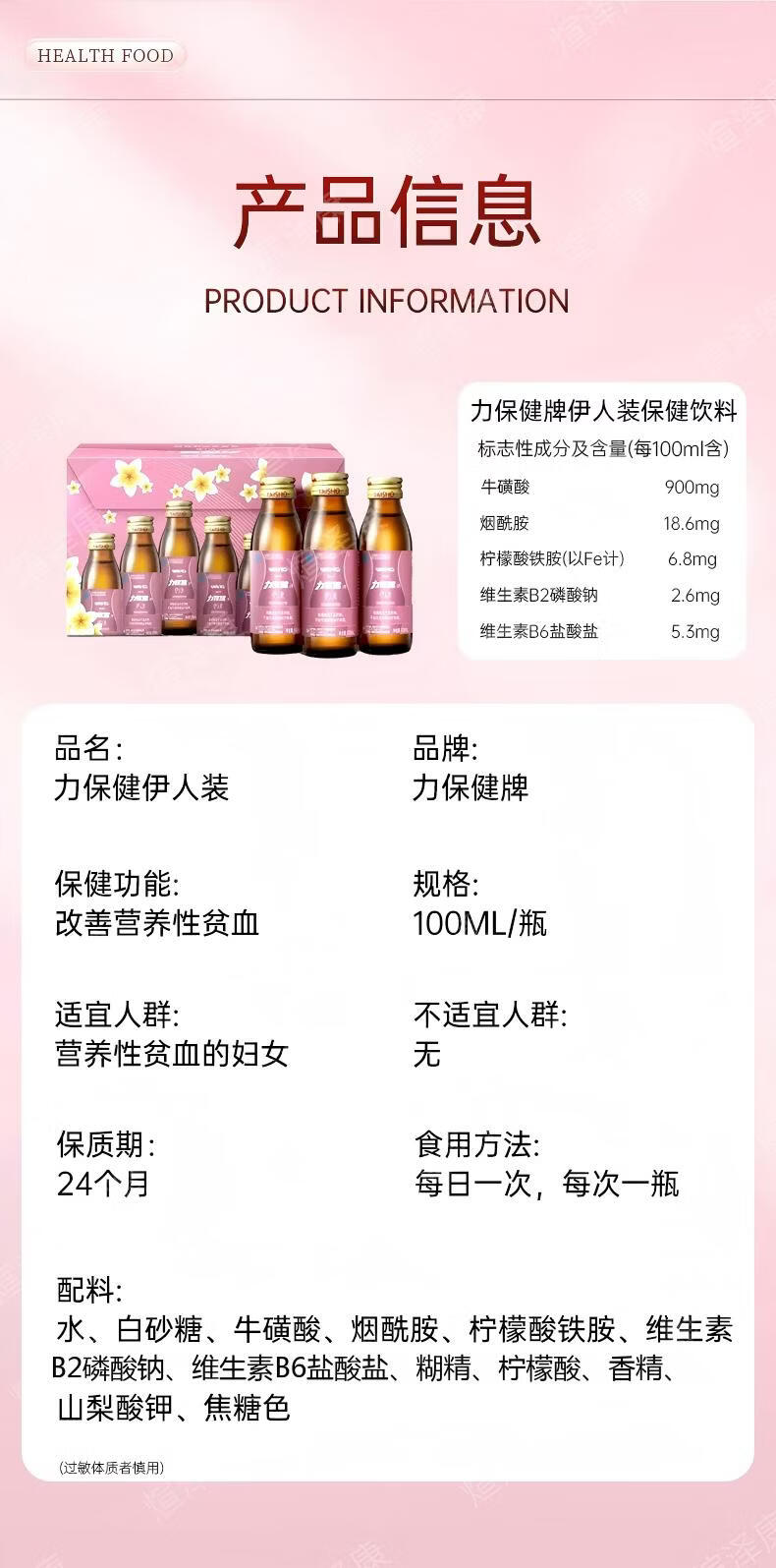 力保健伊人装改善营养性贫血蓝帽认证功能性饮料 牛磺酸维生素B群 100ml*30瓶