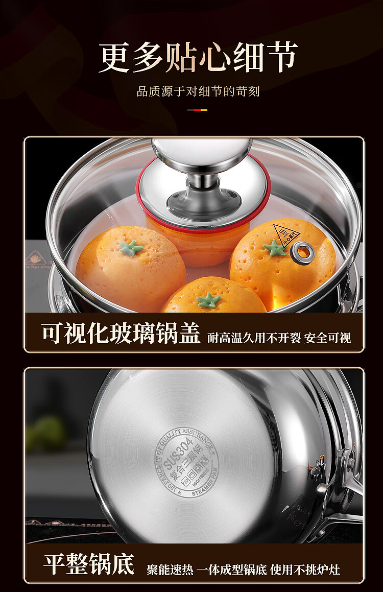 思美雅汤锅蒸锅双层304不锈钢家庭用蒸煮一体防烫硅胶炳多层多功能锅 汤蒸锅双层 26cm