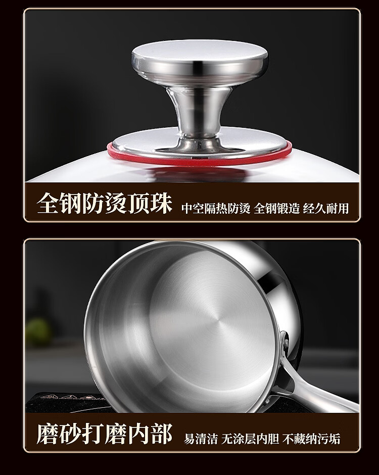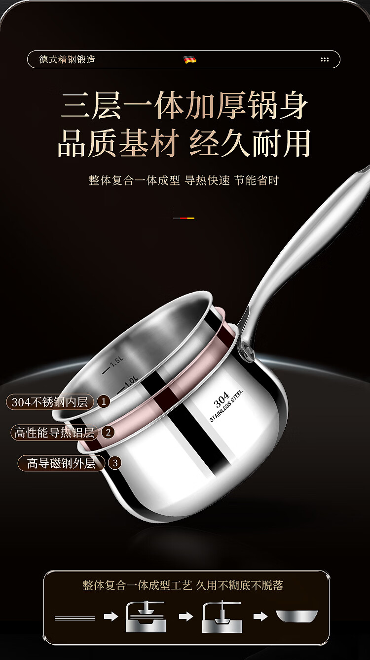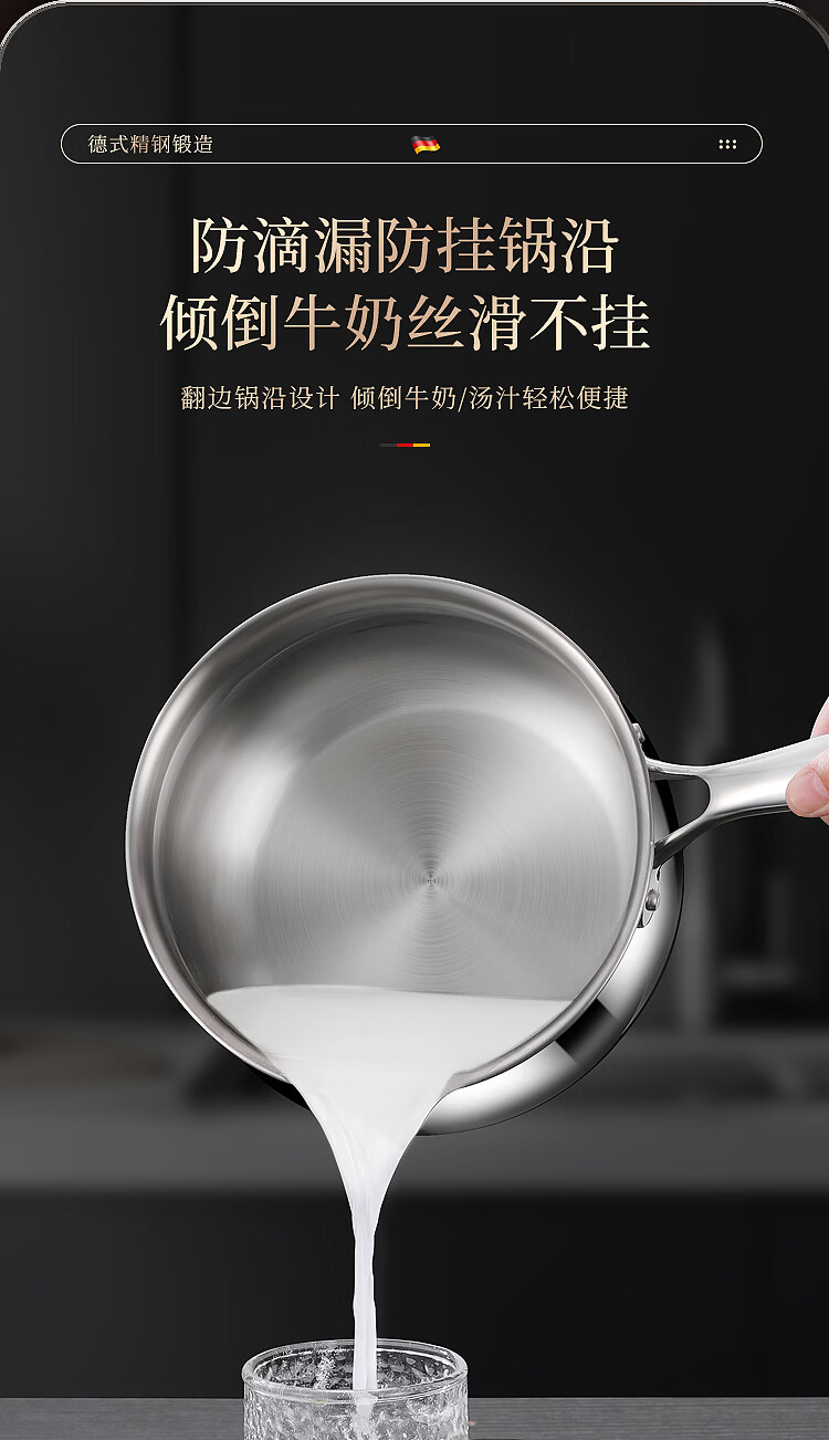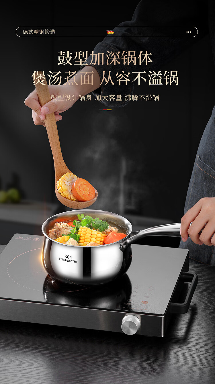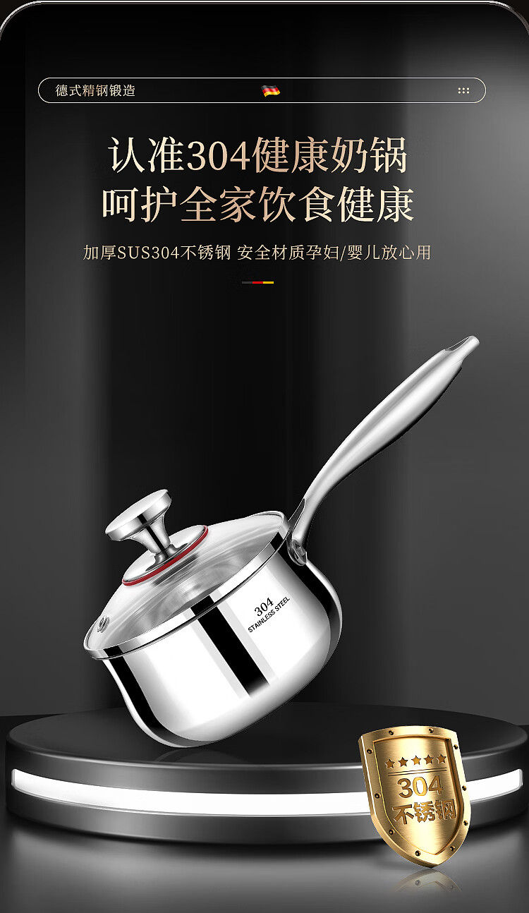 思美雅奶锅304不锈钢小奶锅不粘锅无涂层食品级婴儿辅食锅蒸煮一体+蒸笼 【母婴级奶锅+蒸格】 双层 18cm