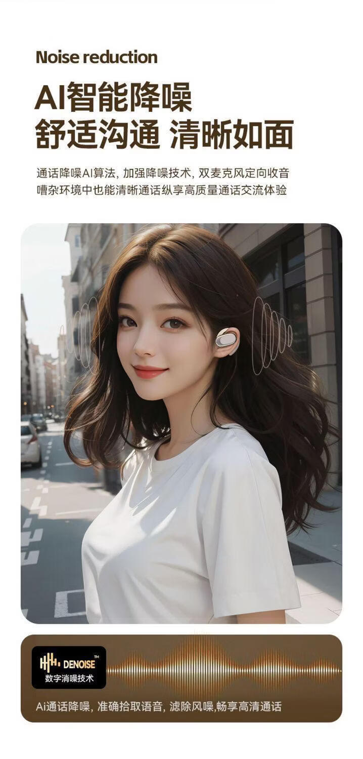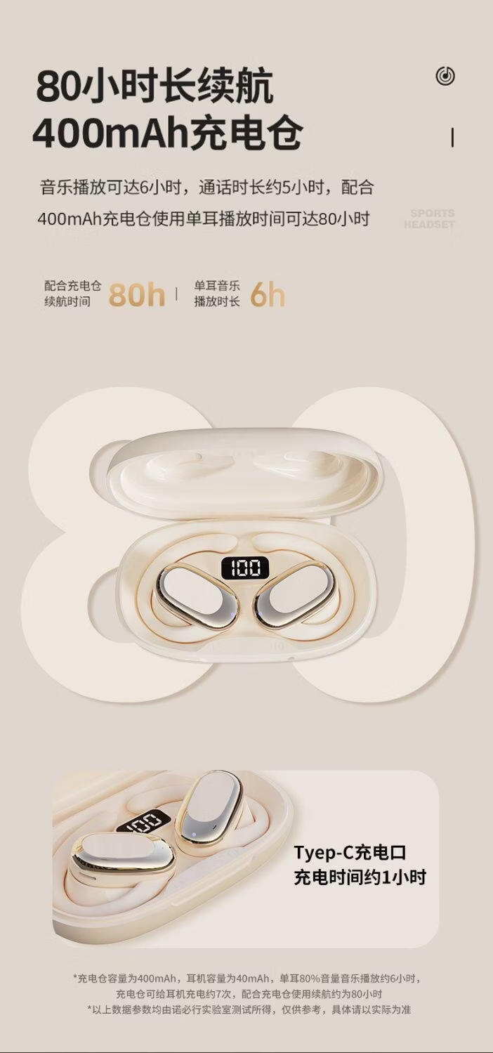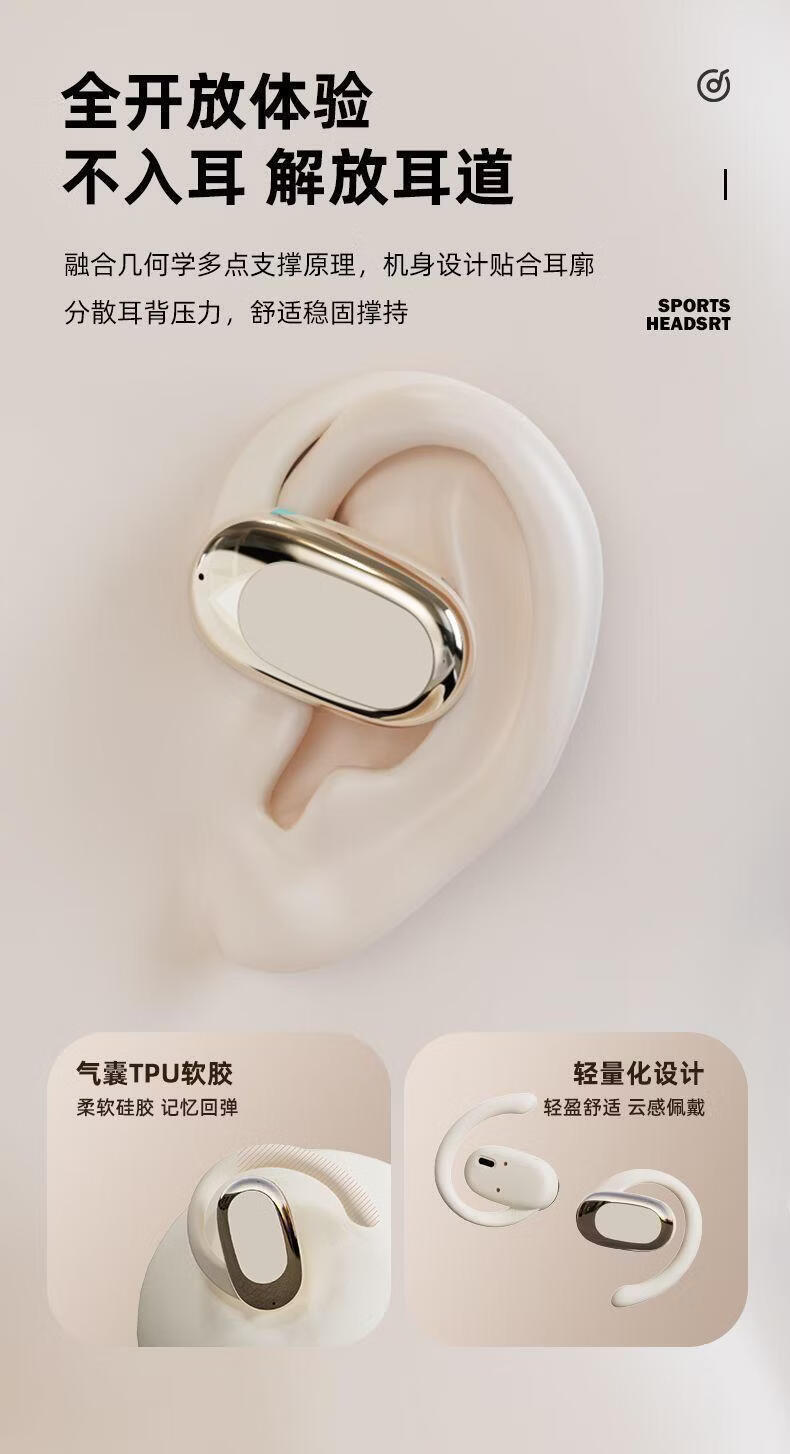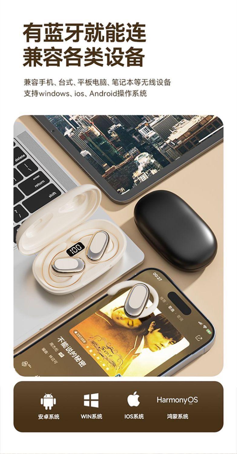 鑫羽音【甄选好物】新款无线蓝牙耳机不入耳气骨 白+超长续航+超清通话 蓝牙通用