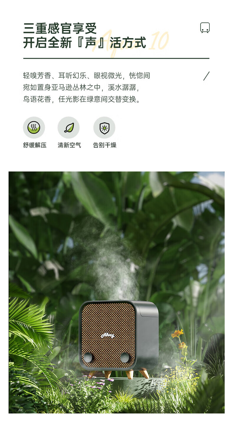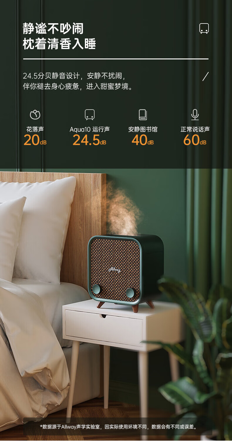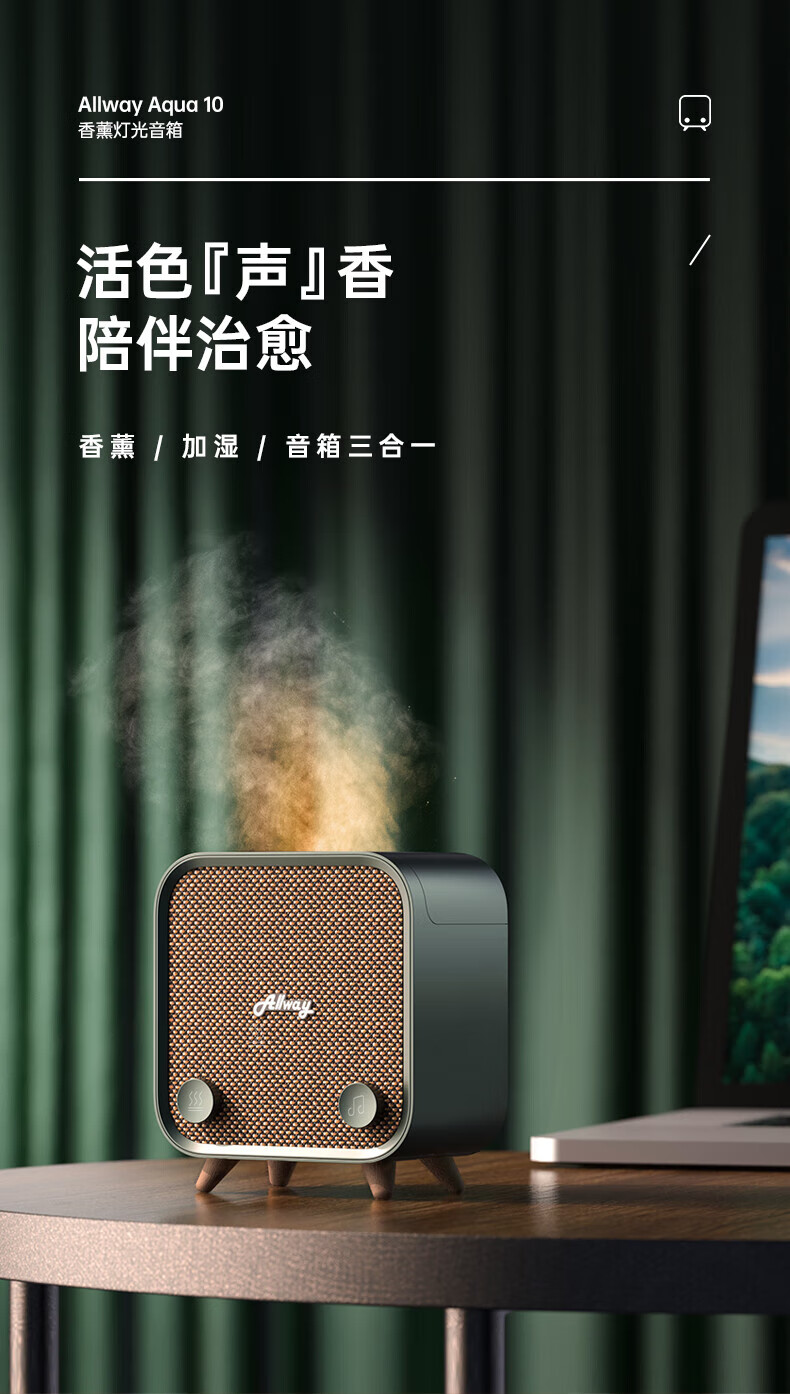 ALLWAY Aqua10桌面香薰蓝牙音响 空气加湿+氛围灯三合一音乐音箱家用室内助眠舒缓情绪复古音响生日礼物 【香薰&加湿器&音箱】3机合一