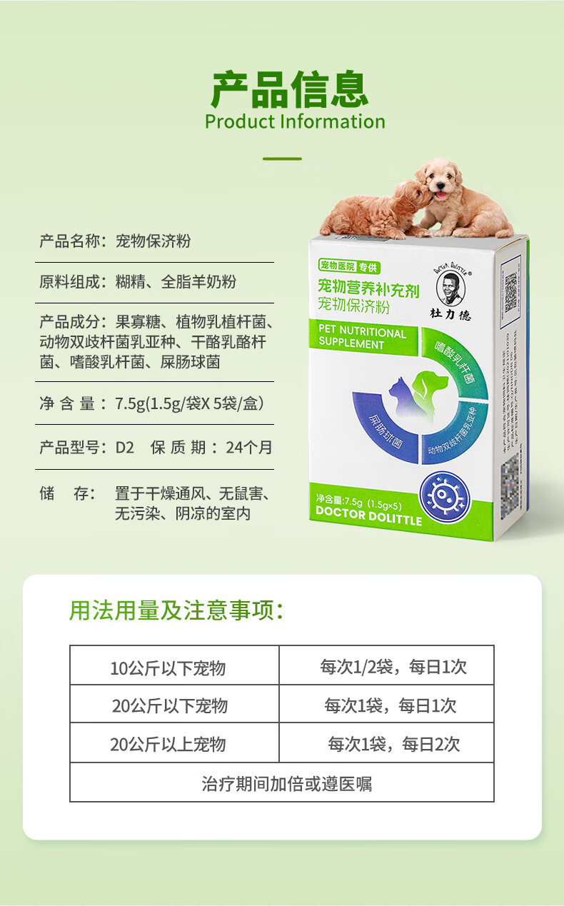 杜力德狗猫咪益生菌肠胃不适菌群失调食欲消化差宠物营养补充剂保济粉