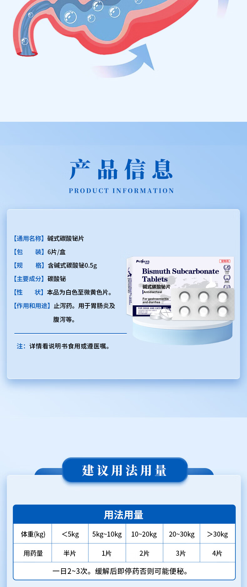 宠康源碱式碳酸铋片宠物狗狗拉肚子止泻药幼小犬呕吐拉稀腹泻血便金毛 胃肠炎呕吐腹泻套餐