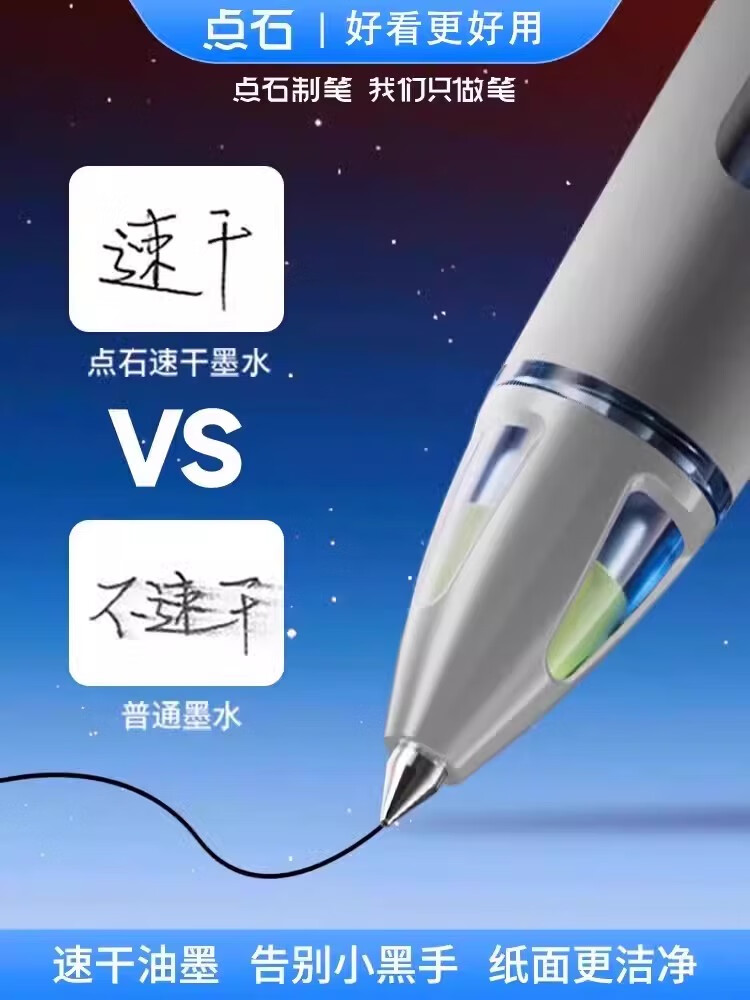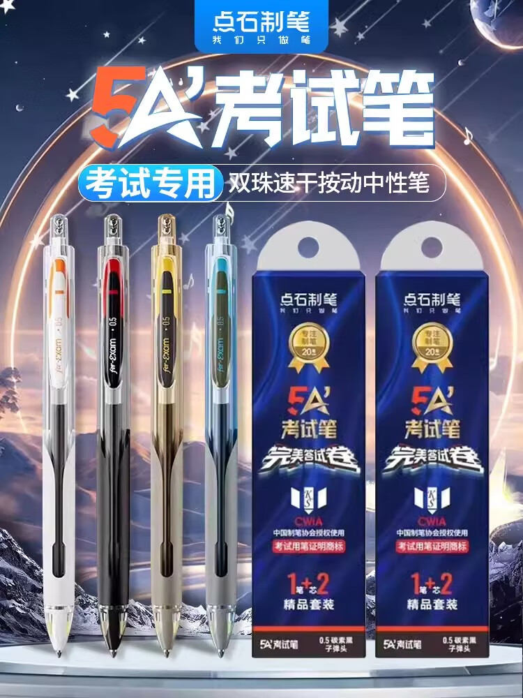 百今正品点石5A考试笔双珠速干按动静音中性笔0.5mm碳素黑子弹头学生刷题笔办公签字笔 5A原装笔芯12支【书写黑】