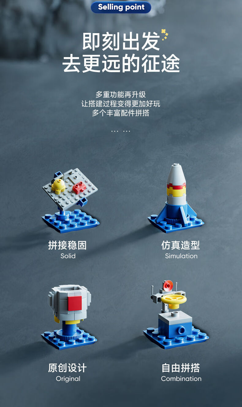 奇优宝兼容乐高乐乐兄弟航天火箭飞船模型中国宇宙太空飞船系列拼装积木 快要抢光航天飞船-【107PCS】