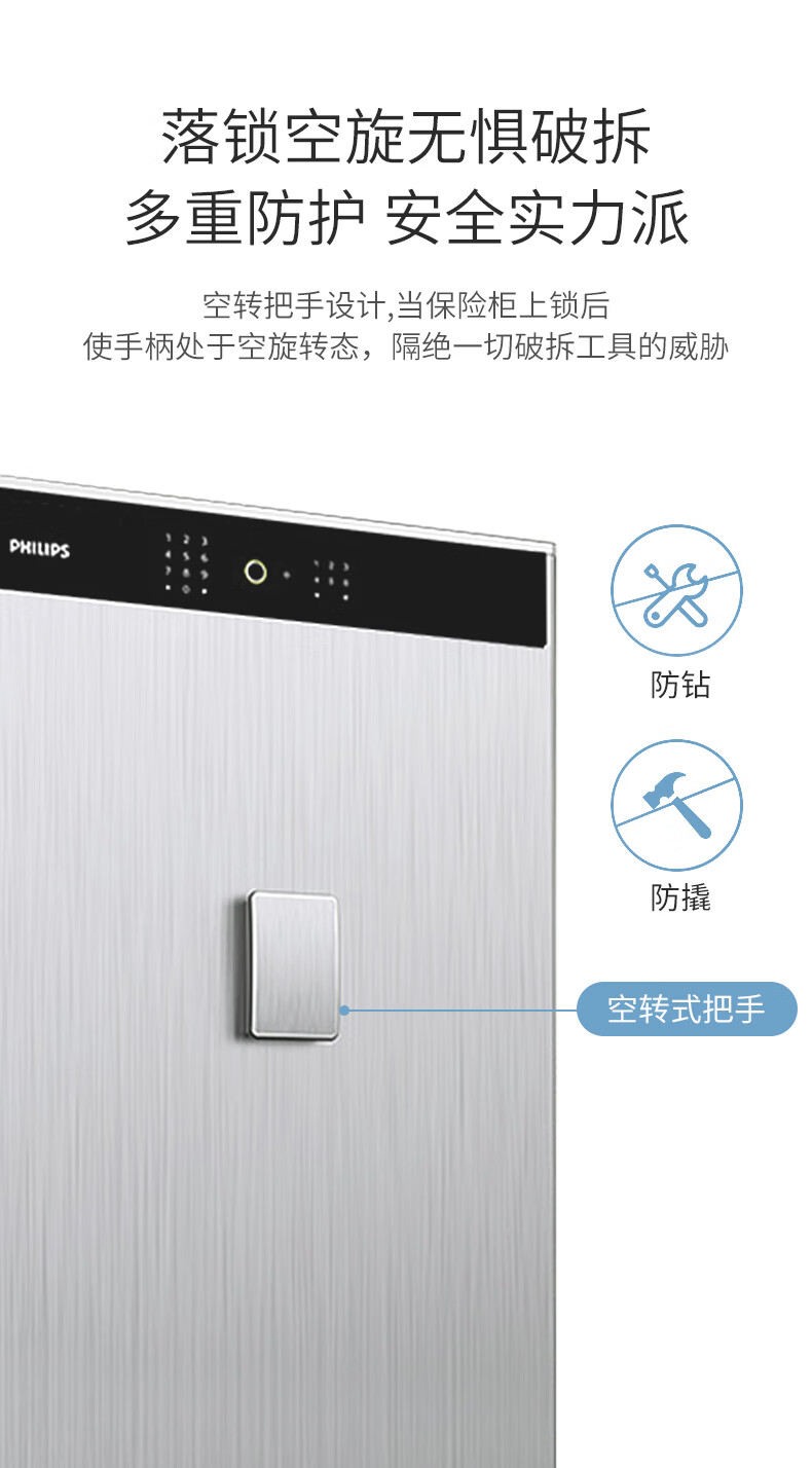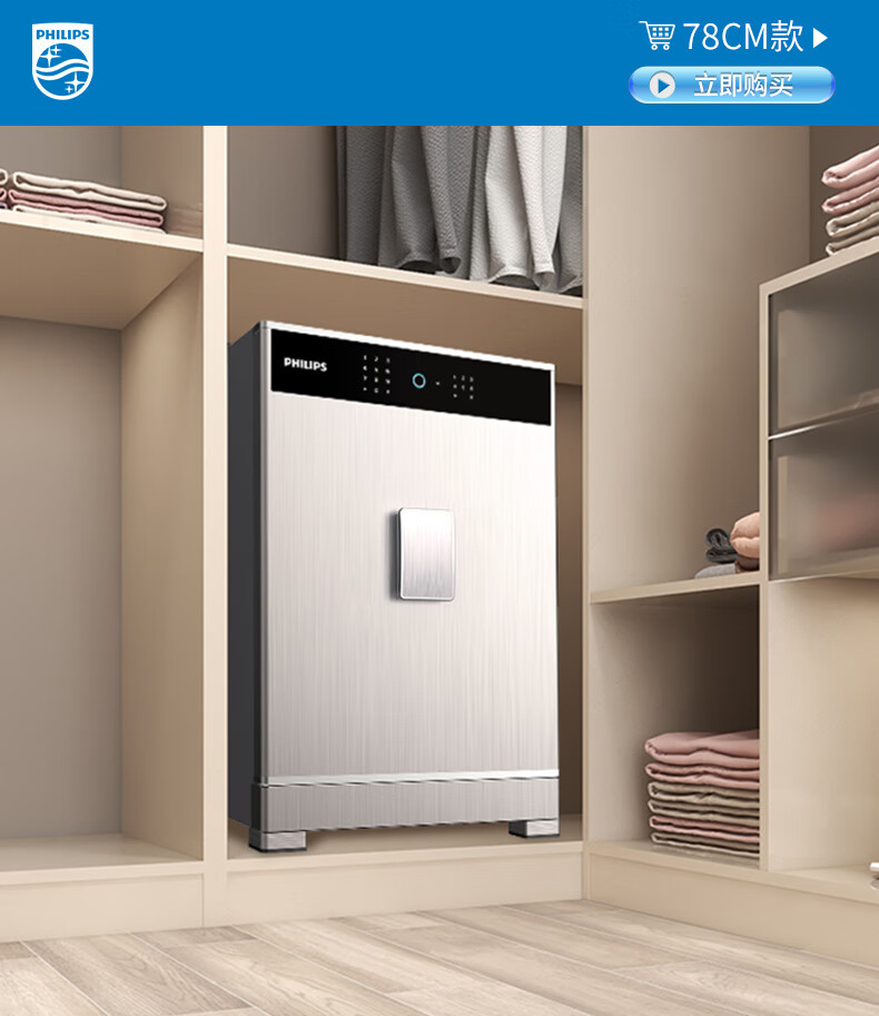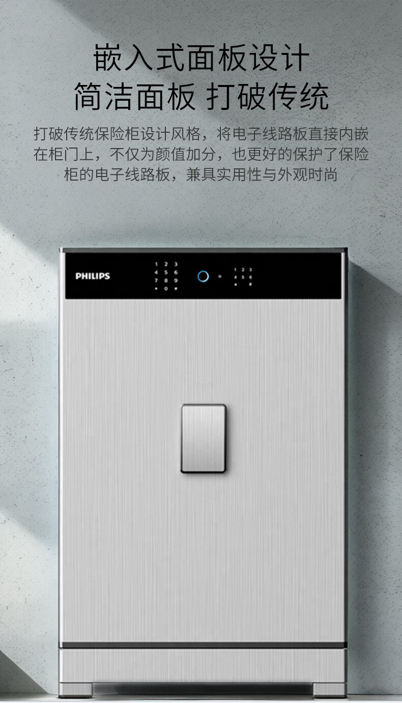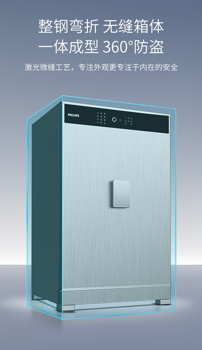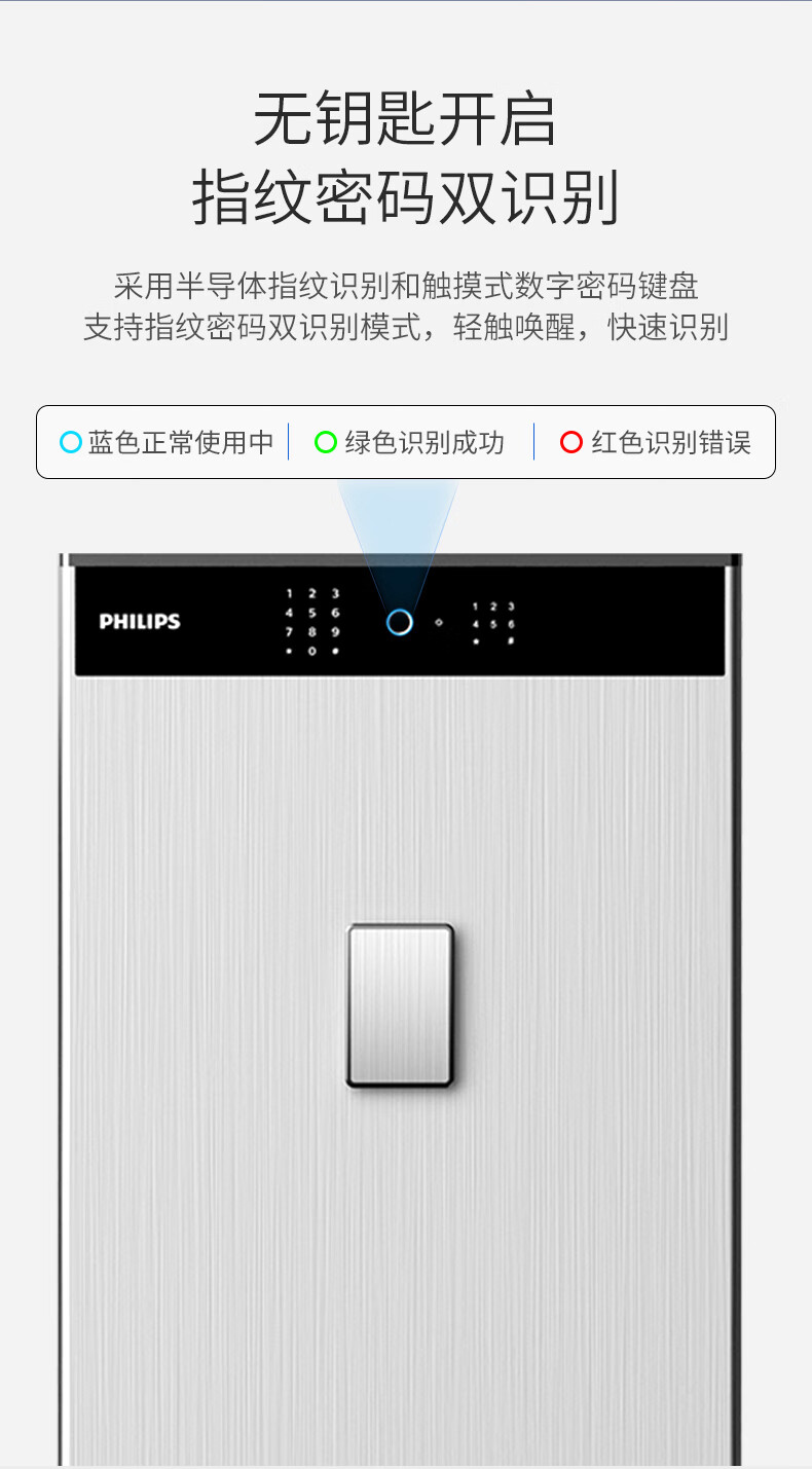 飞利浦保险柜701指纹密码双系统 箱体实心钢板一体成型 隐藏密码锁家用加重大型办公室财务防盗保险箱柜 星空灰105公斤【高68宽45深42】