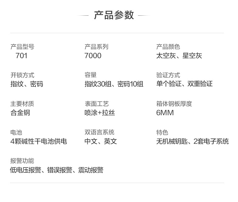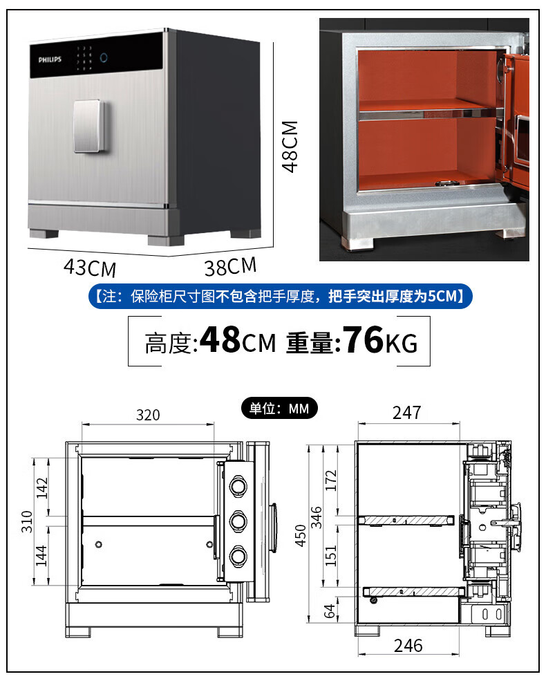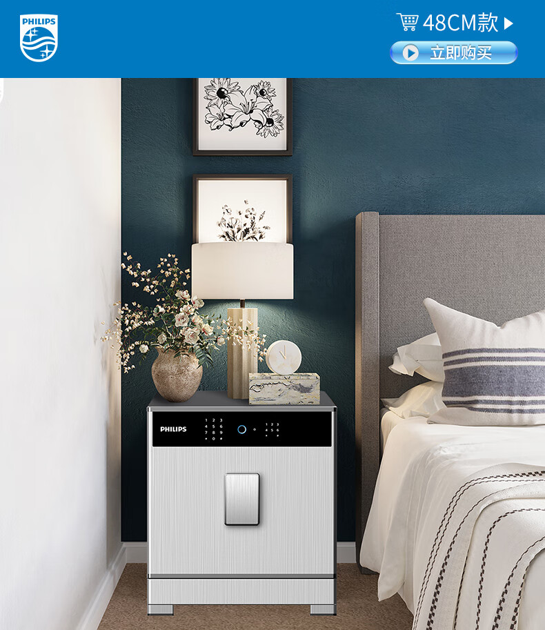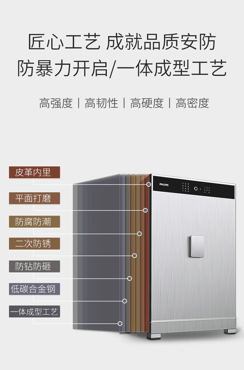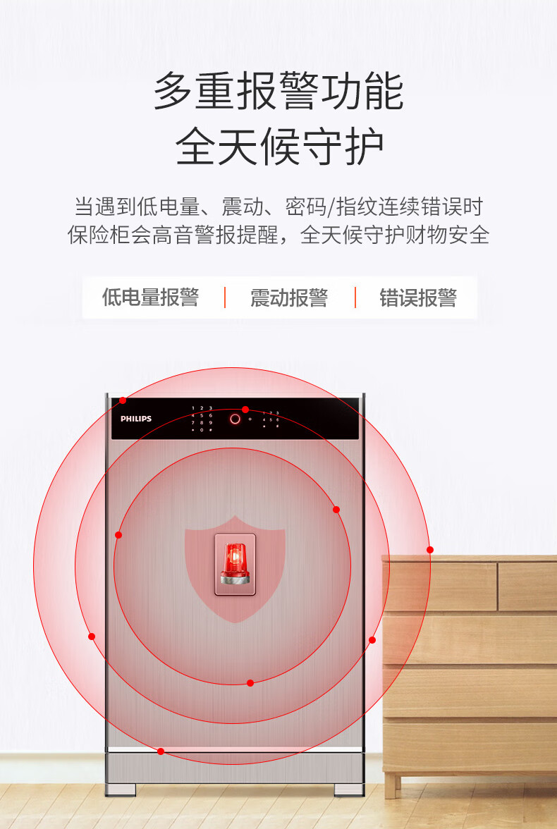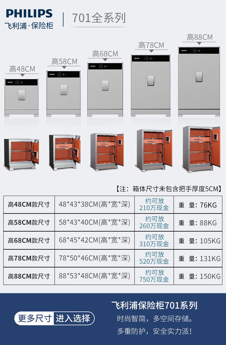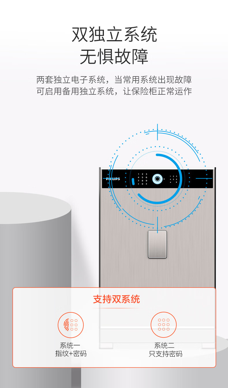 飞利浦保险柜701指纹密码双系统 箱体实心钢板一体成型 隐藏密码锁家用加重大型办公室财务防盗保险箱柜 星空灰105公斤【高68宽45深42】