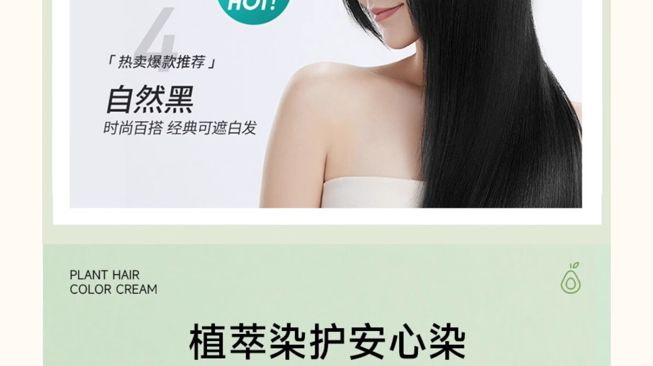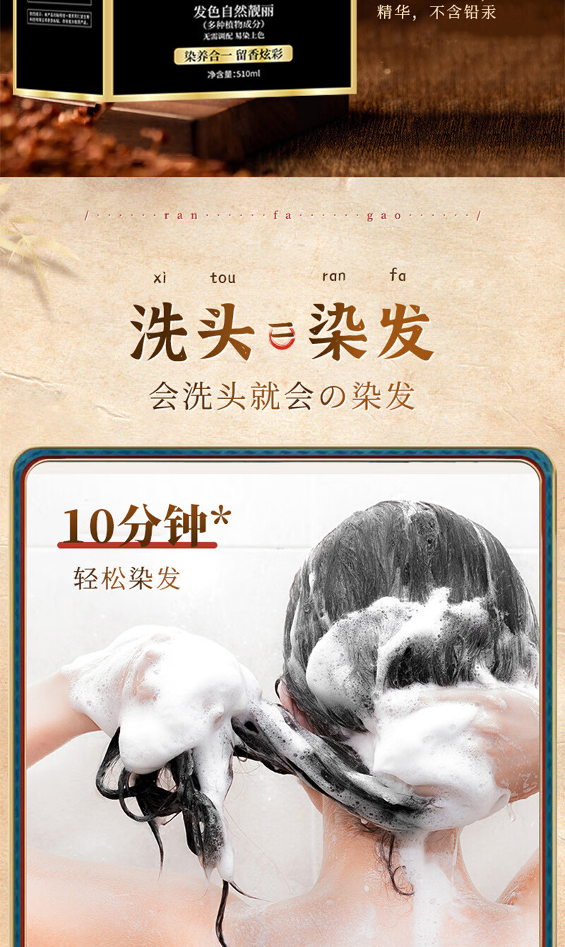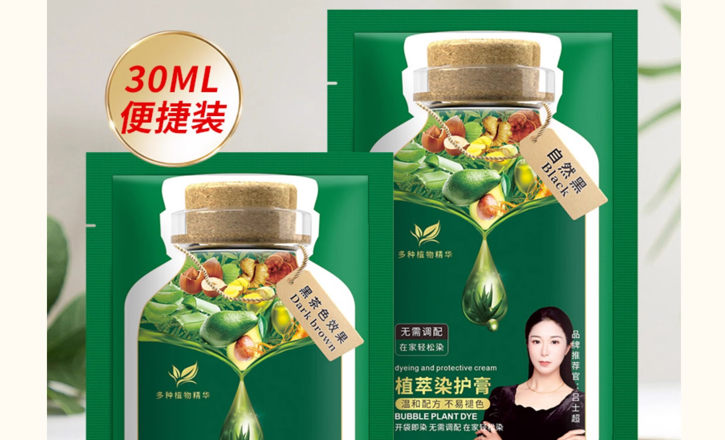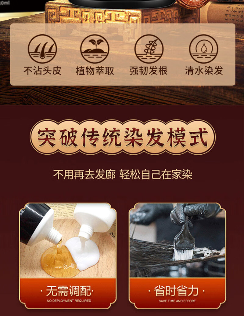 染发剂100%天然植萃染发膏自然黑一不沾头皮洗男女士盖白通用黑发 自然黑 30ml*20袋