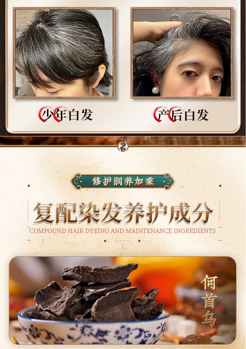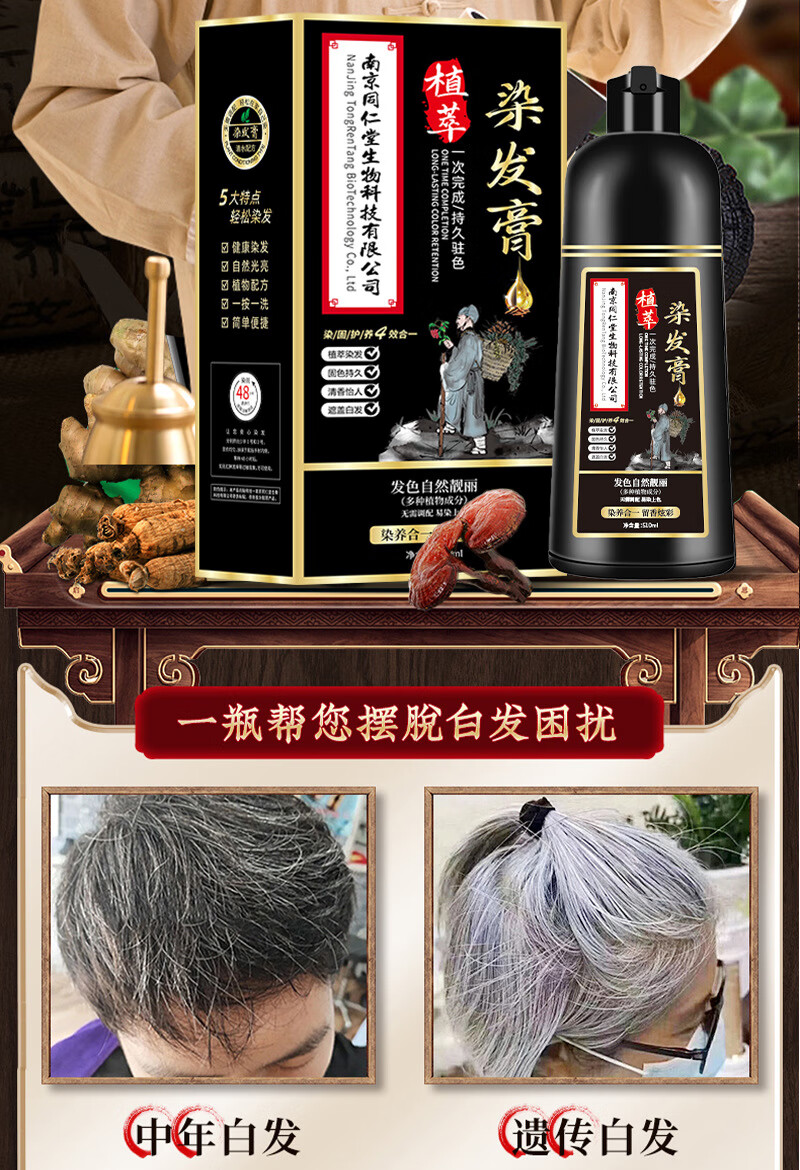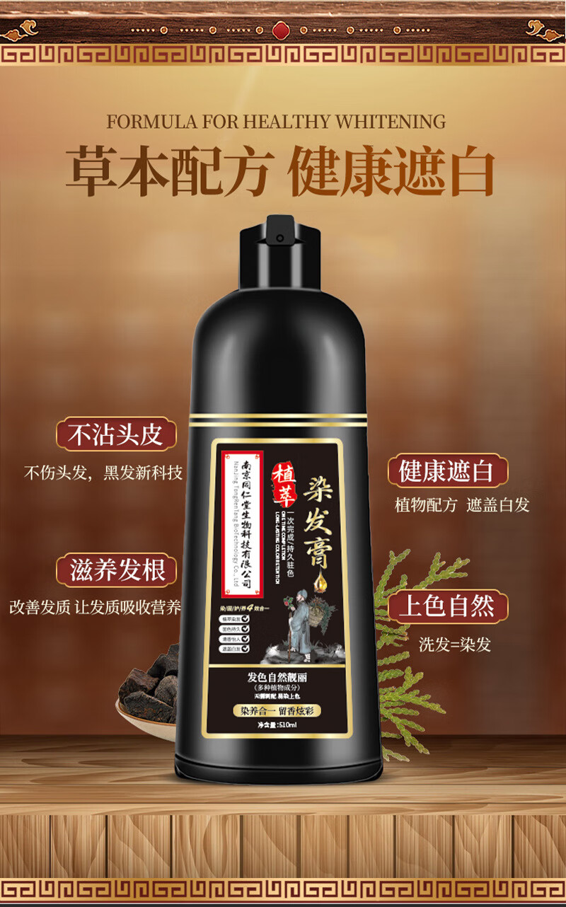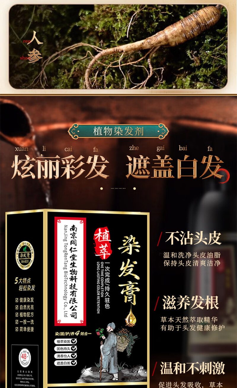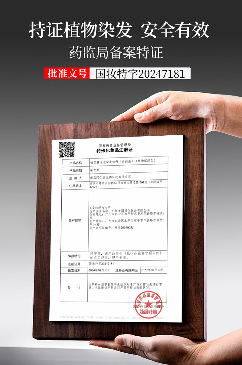 染发剂100%天然植萃染发膏自然黑一不沾头皮洗男女士盖白通用黑发 自然黑 30ml*20袋