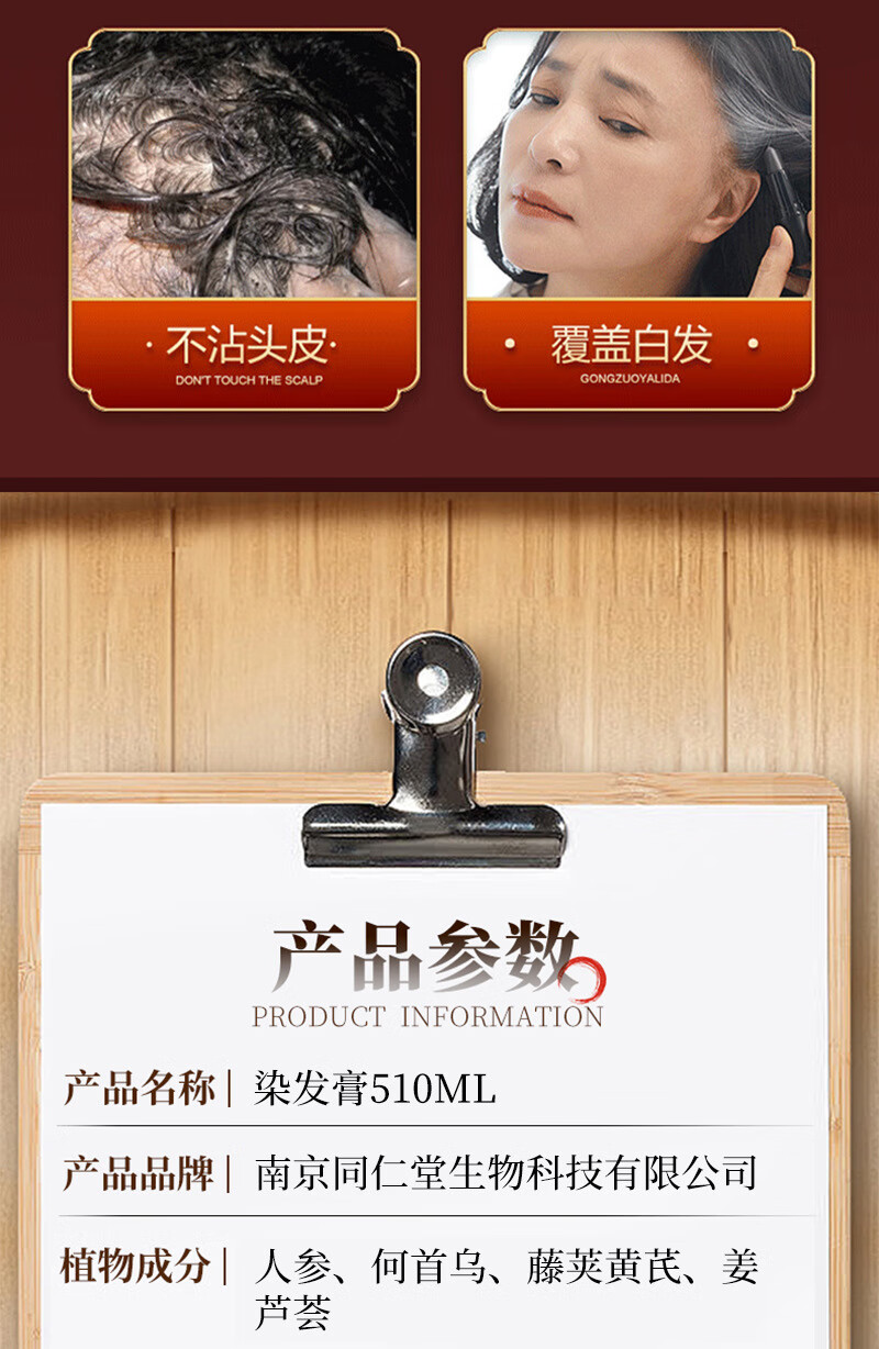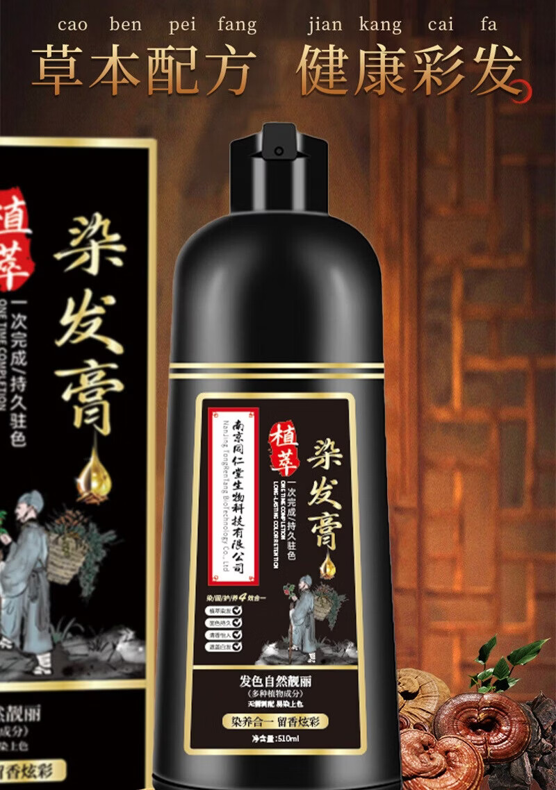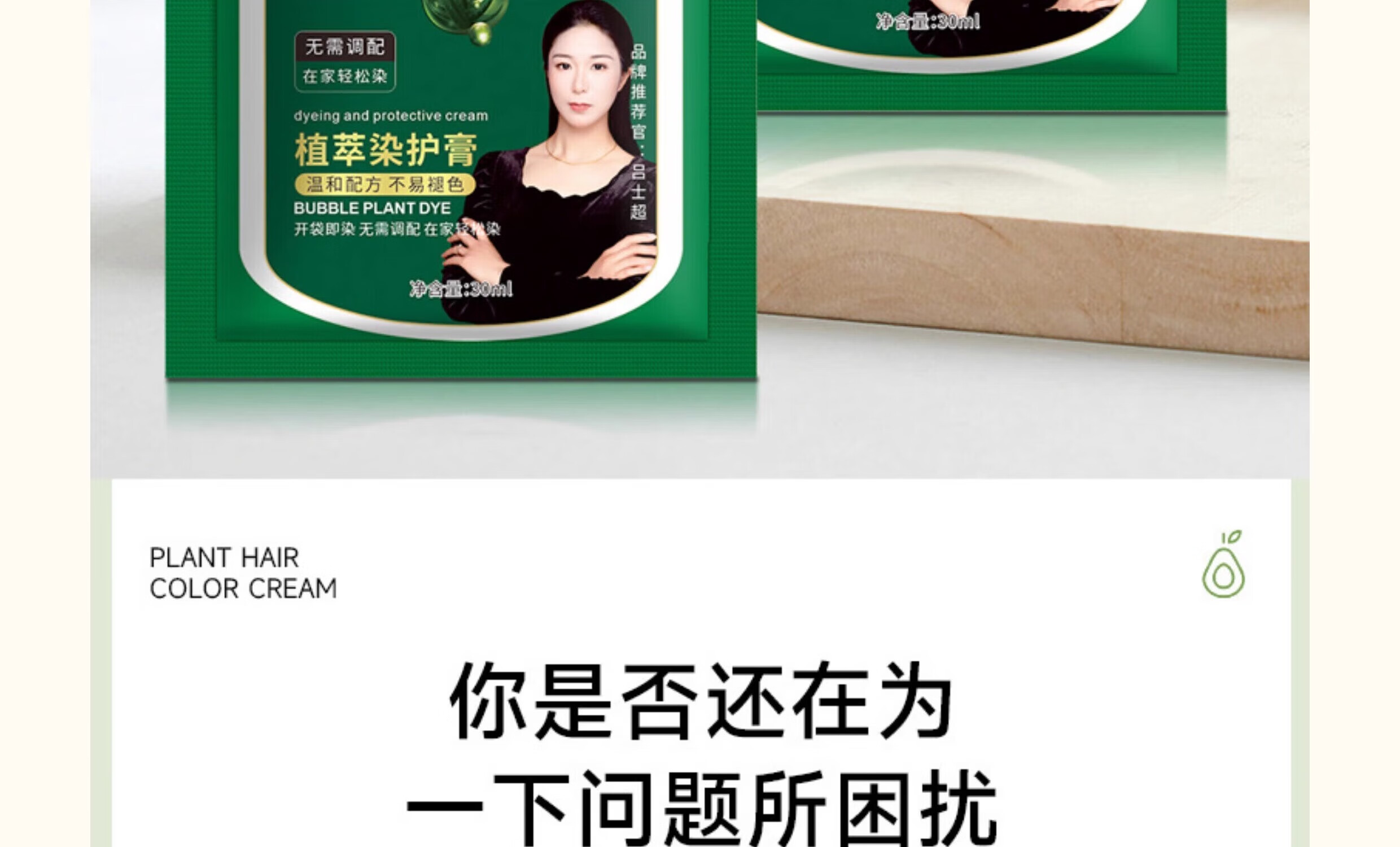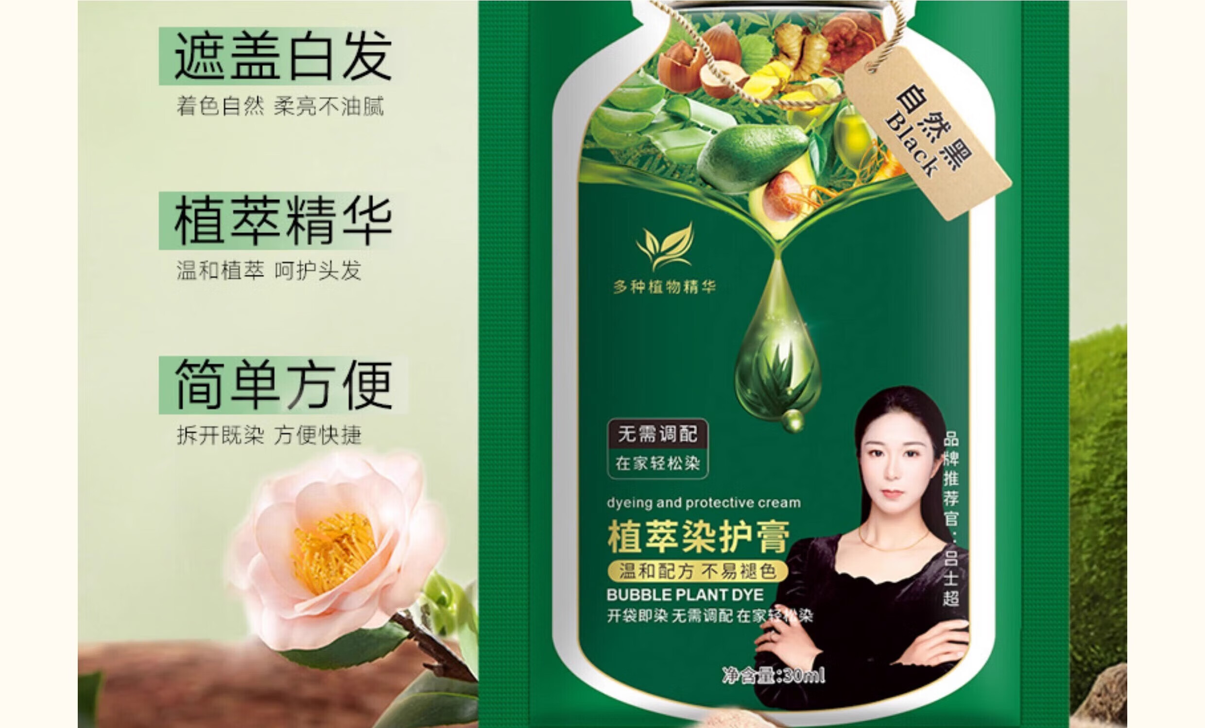 染发剂100%天然植萃染发膏自然黑一不沾头皮洗男女士盖白通用黑发 自然黑 30ml*20袋