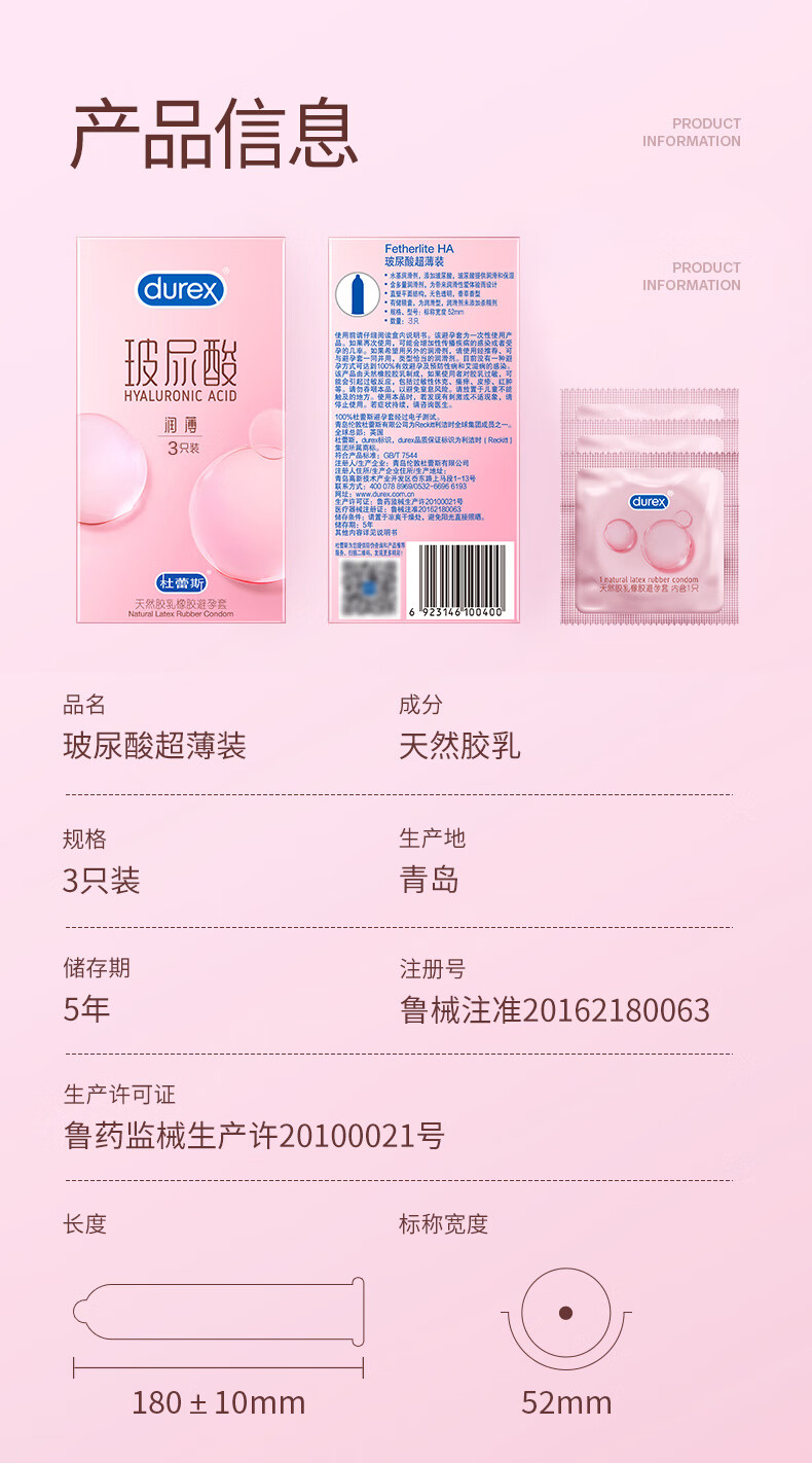 杜蕾斯(durex)小水库玻尿酸超薄避孕套润薄延时安全套男用成人房事计生情趣用品 玻尿酸纯享【18只】超薄玻尿酸18