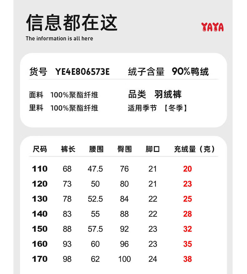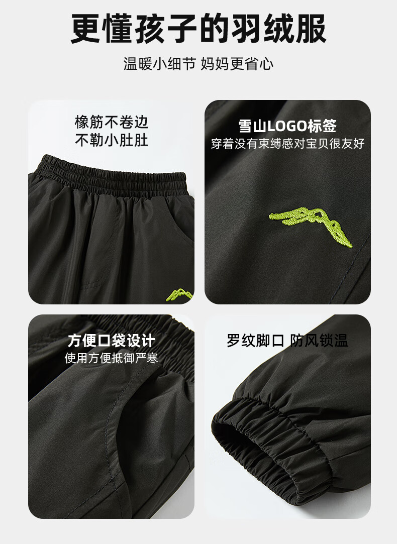 鸭鸭儿童羽绒裤男童2024冬季新款直筒裤加厚保暖中大童运动裤子WJ 黑色 170