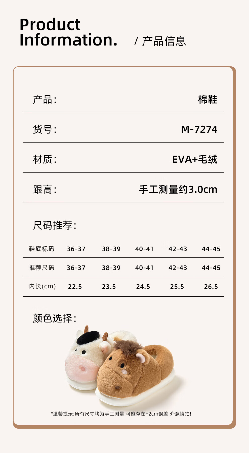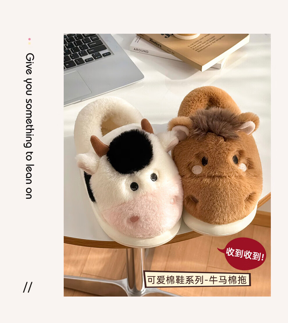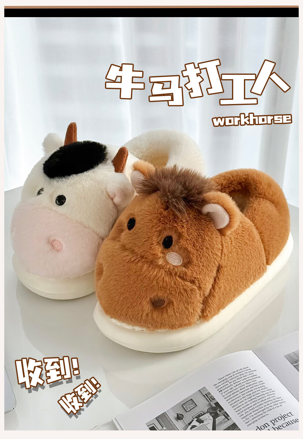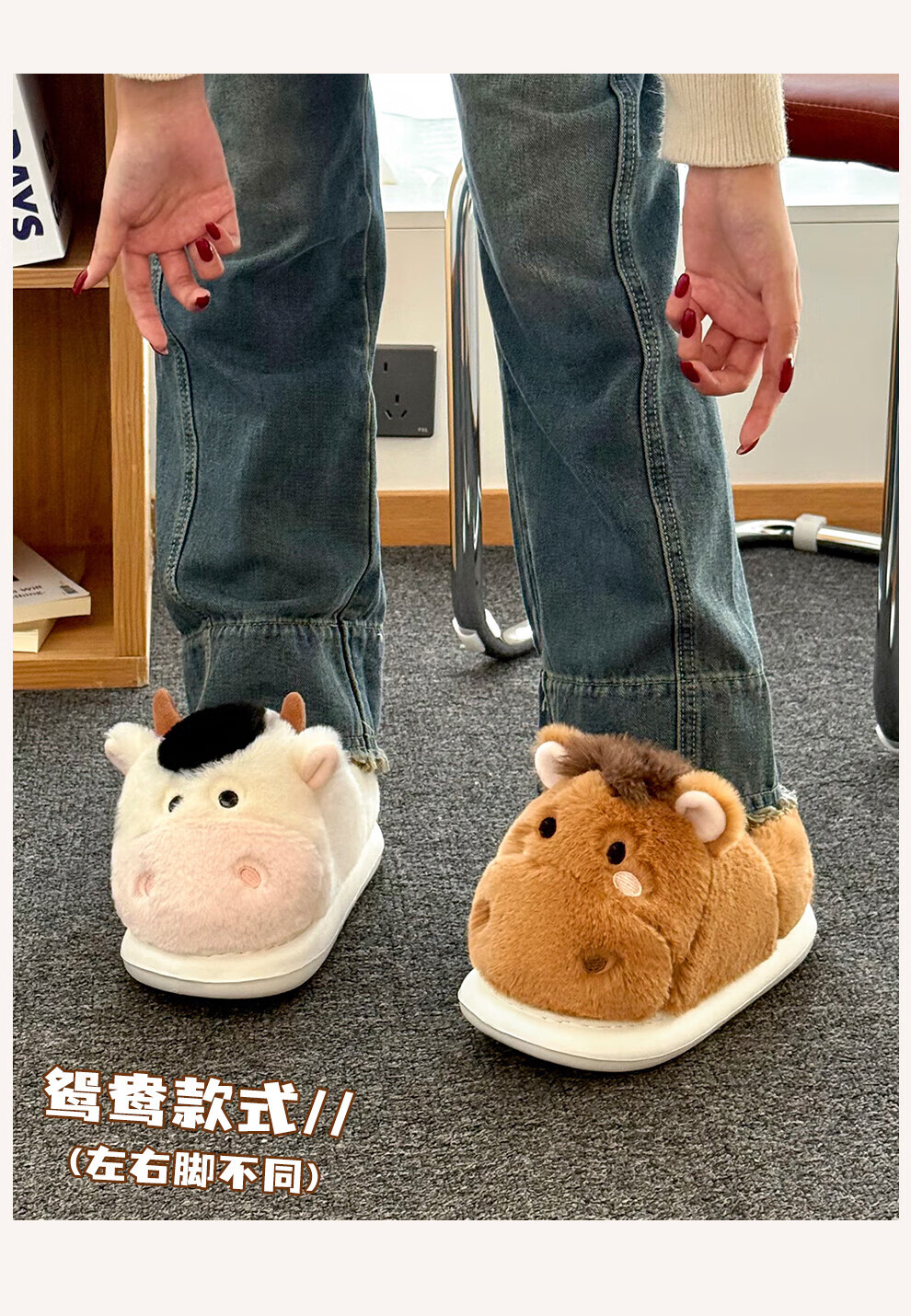 FZT牛马棉拖鞋女士2025秋冬季新款包跟毛绒居家可外穿鸳鸯情侣棉鞋男 白棕 36-37 标准码