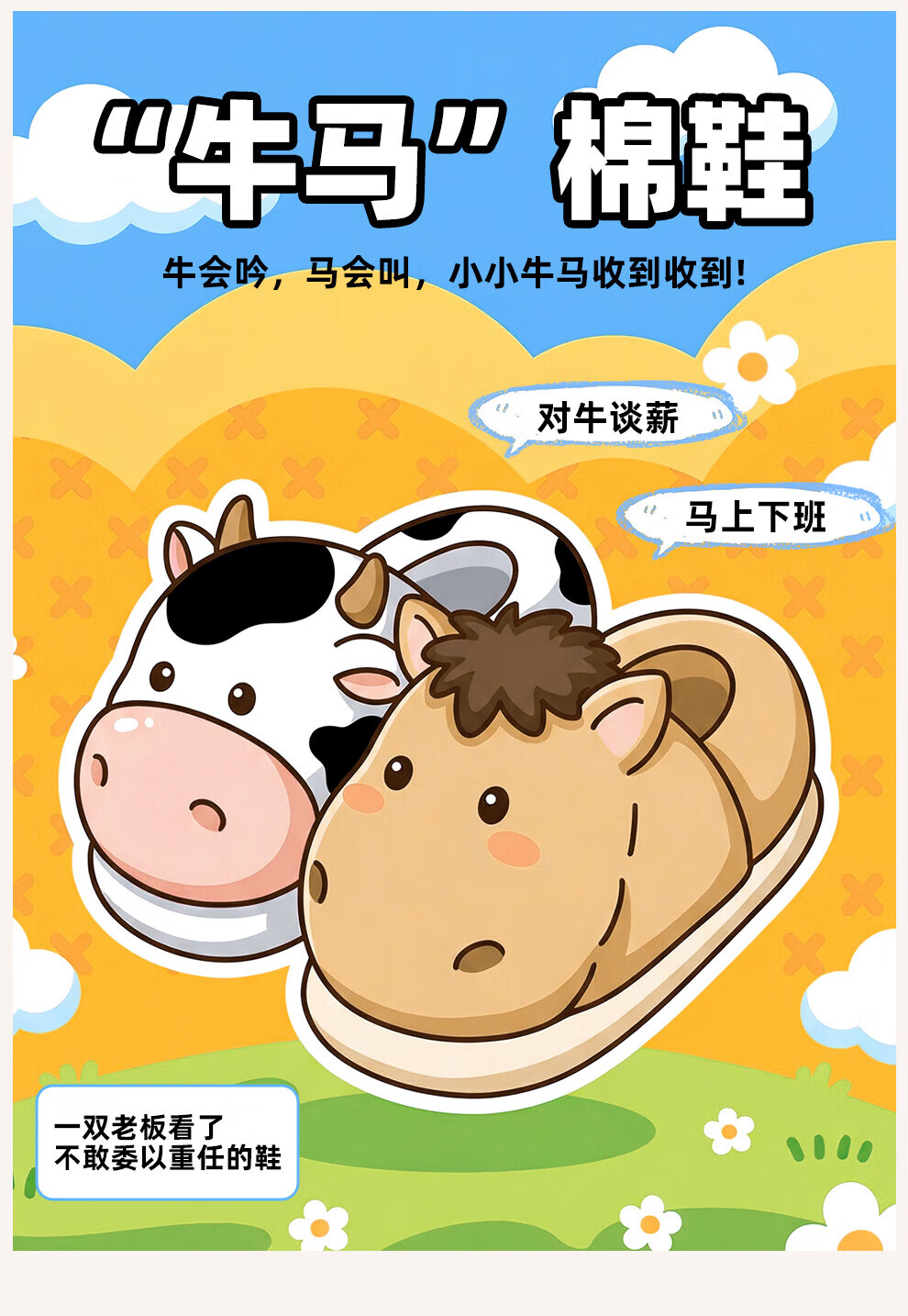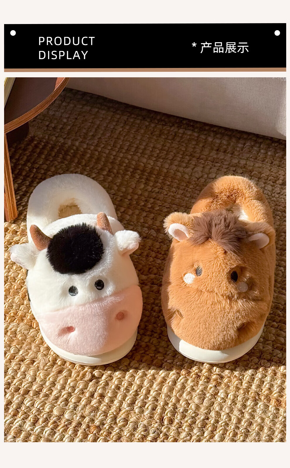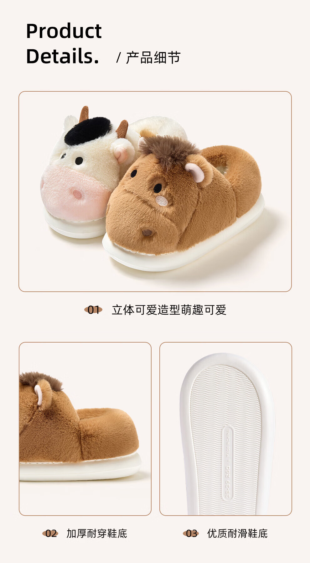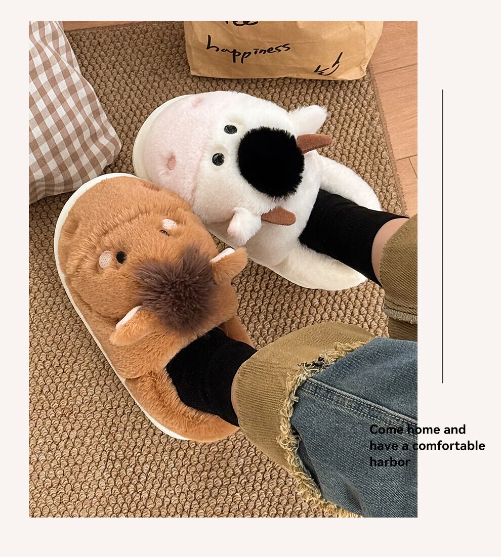 FZT牛马棉拖鞋女士2025秋冬季新款包跟毛绒居家可外穿鸳鸯情侣棉鞋男 白棕 36-37 标准码