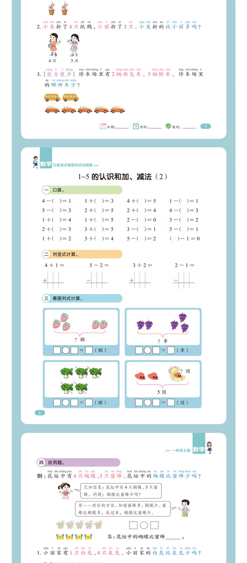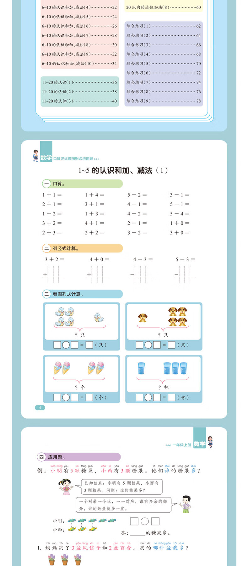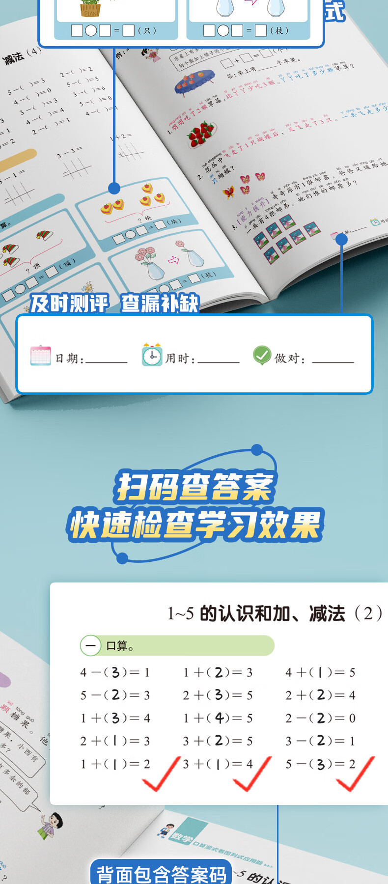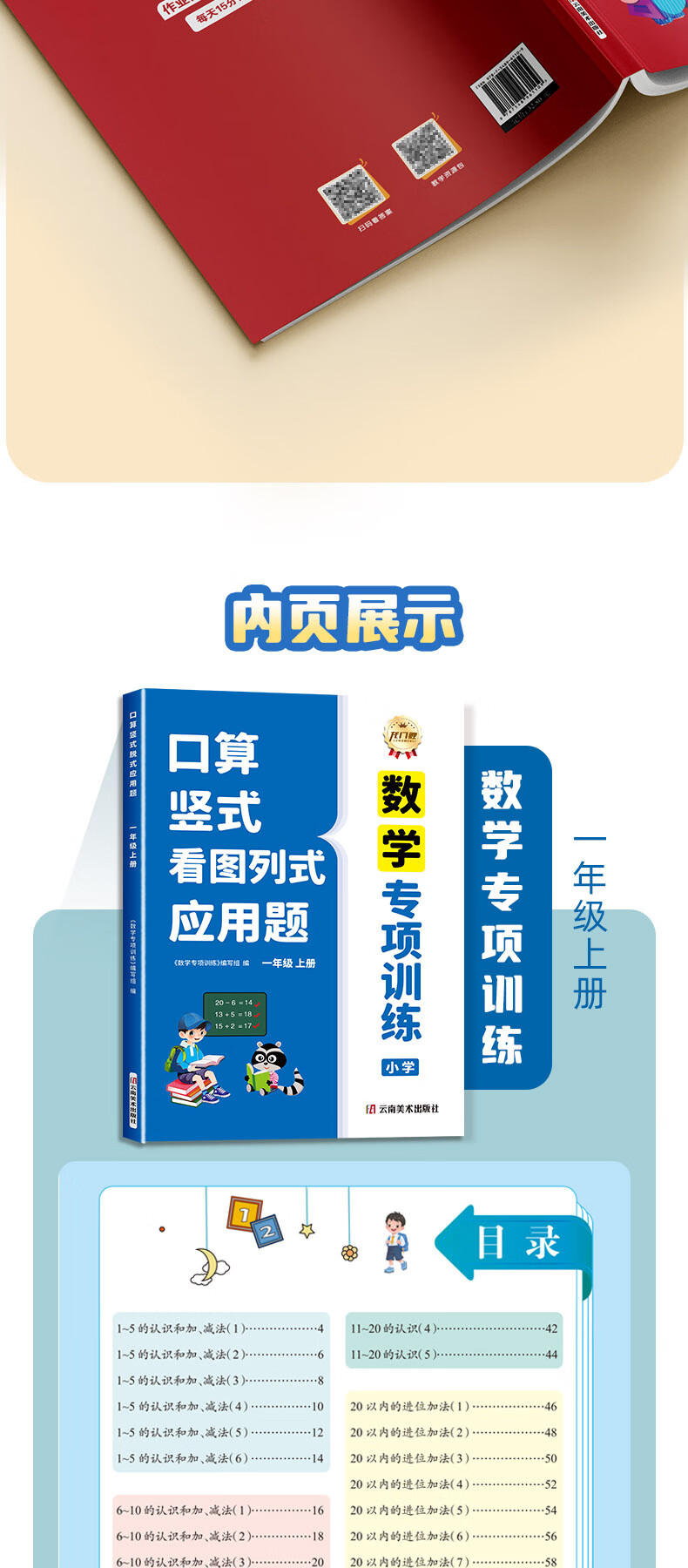 金枝叶一年级上册口算100以内加减法混合练习1-6年级算术题人教版数学练习册口算题卡幼小衔接心算速算二年级应用题每日一练 一年级上册口算10000题