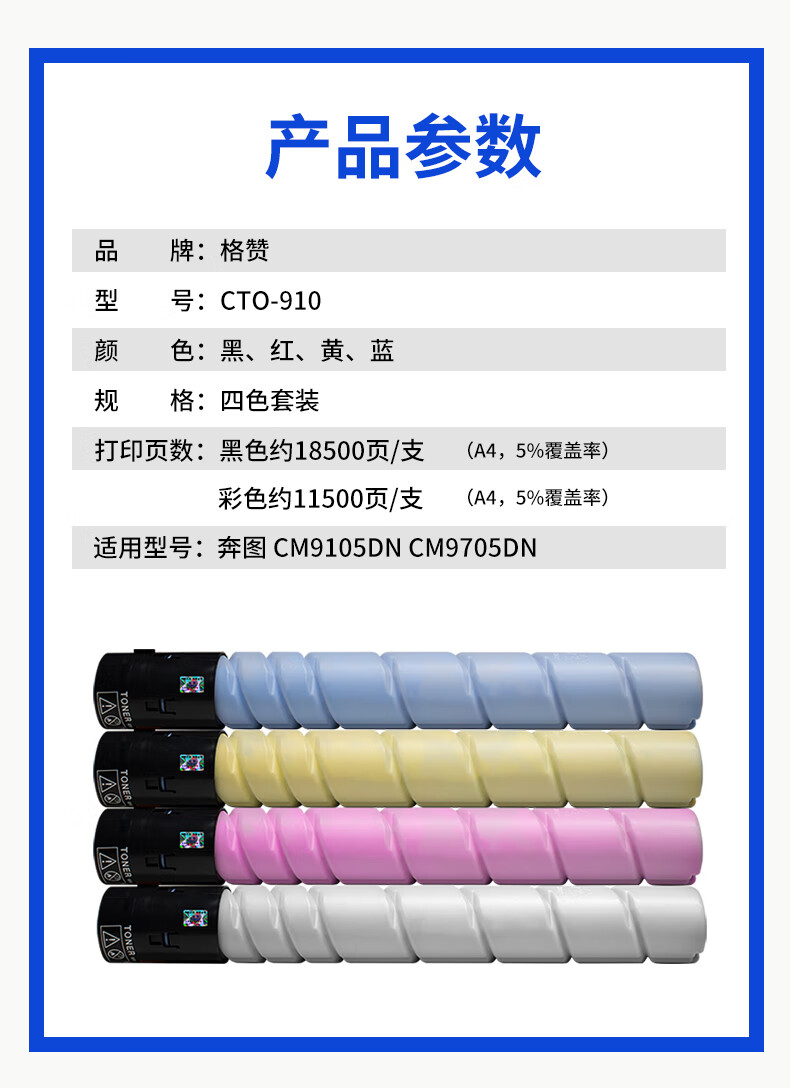 格赞CTO-910粉盒四色套装 适用奔图PANTUM CM9100 CM9700 CM9105DN CM9705DN打印机硒鼓墨盒墨粉盒