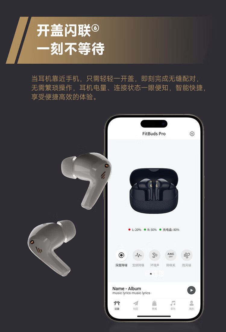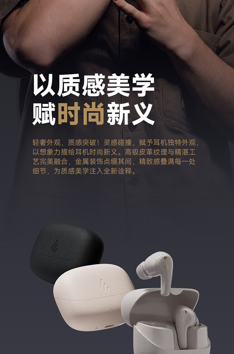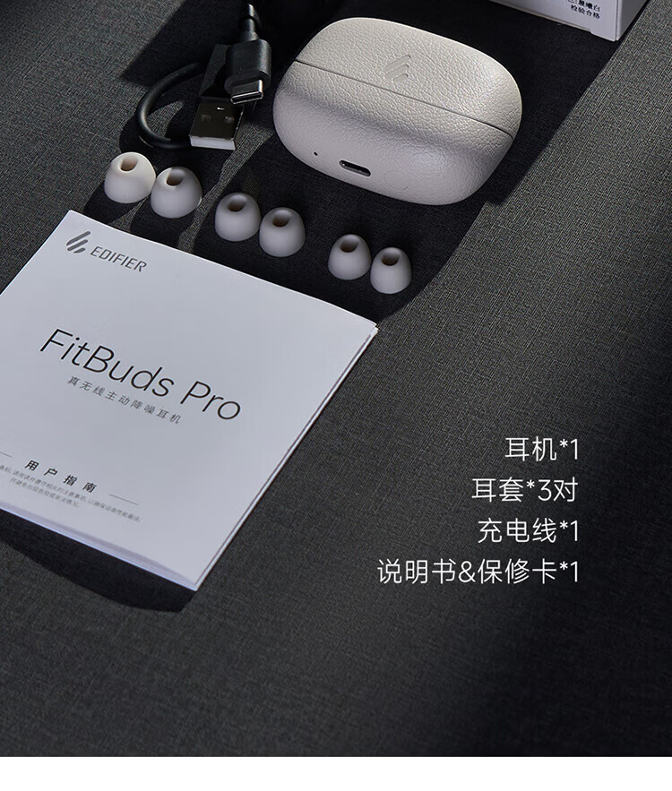 漫步者(EDIFIER)FitBuds Pro真无线主动降噪蓝牙耳机太空舱入耳式低延迟轻奢学生音乐游戏运动礼物适配于苹果华为 【皮革纹理设计】晨曦白+收纳袋