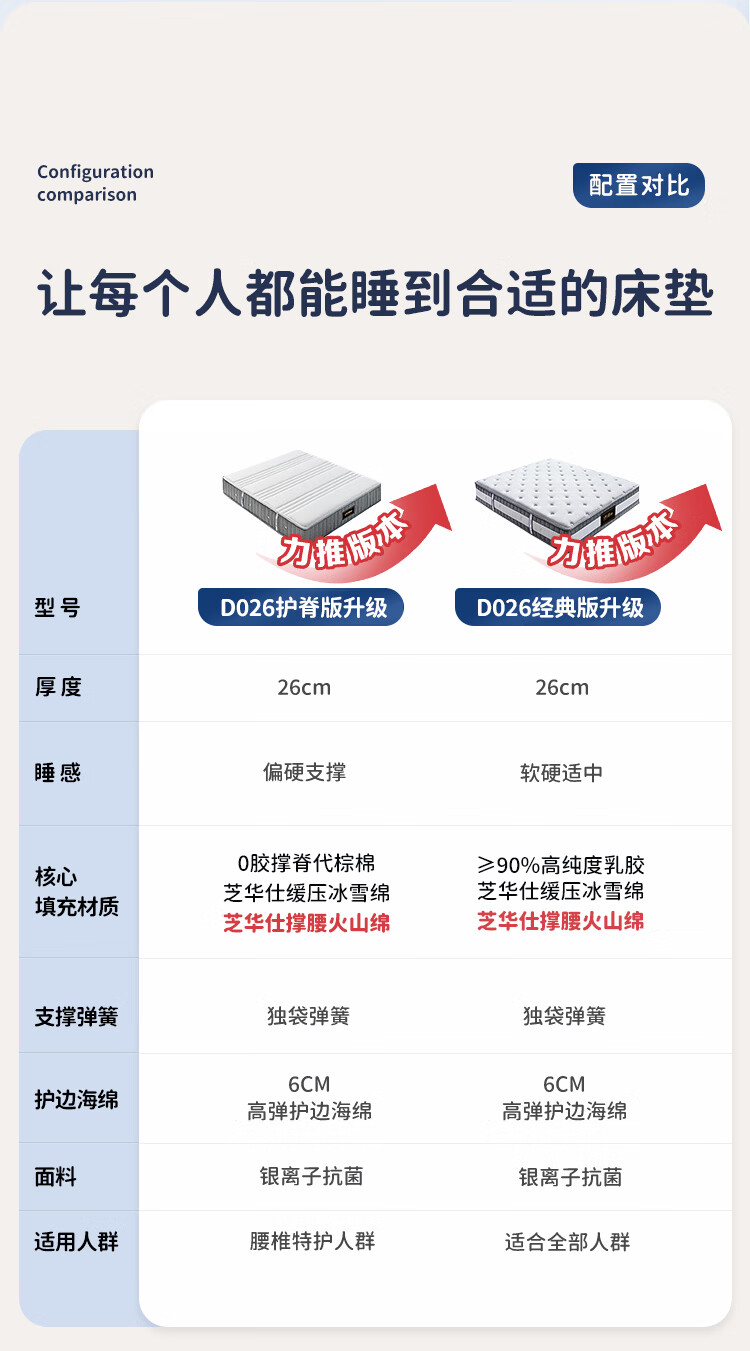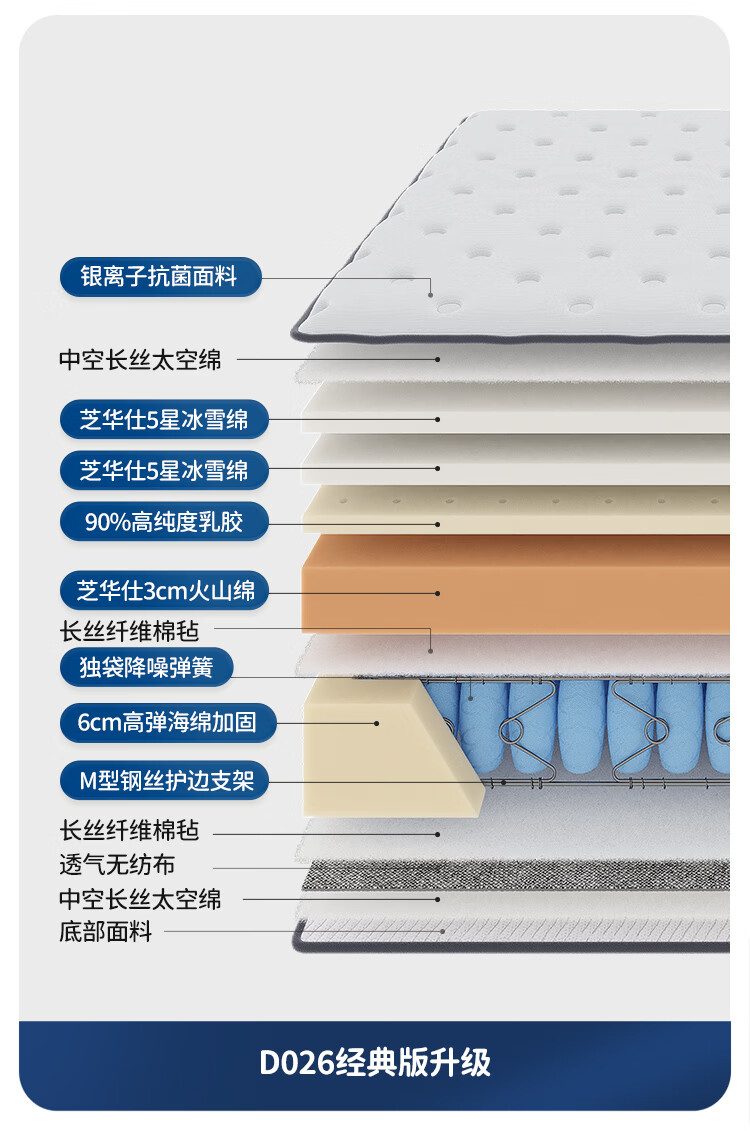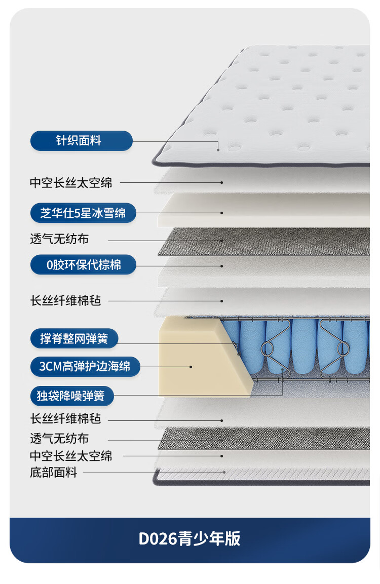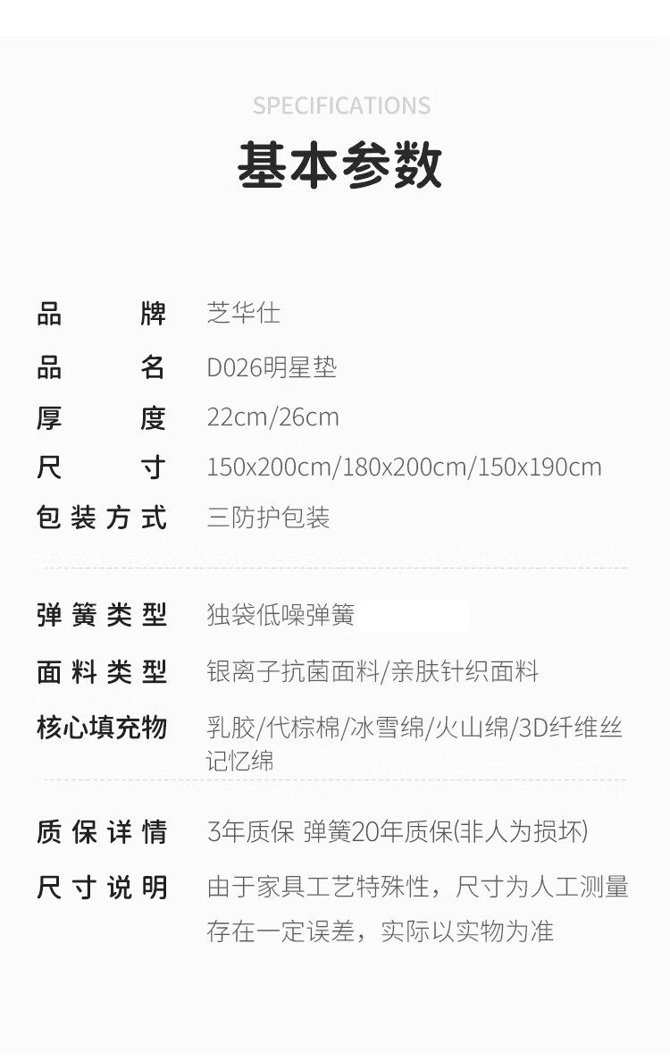 芝华仕5星床垫独立袋装弹簧静音家用乳胶席梦思软硬护脊厚垫明星垫D026 舒睡经典版升级款-1.8*2M 年前发货(地址详询客服)