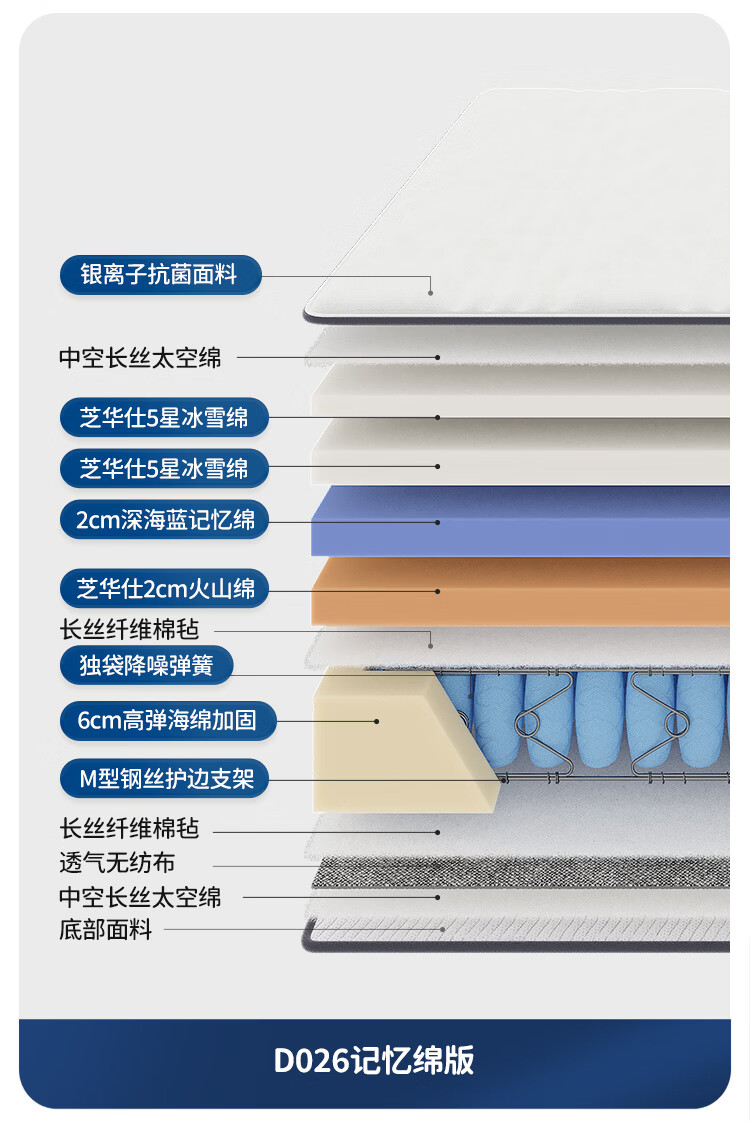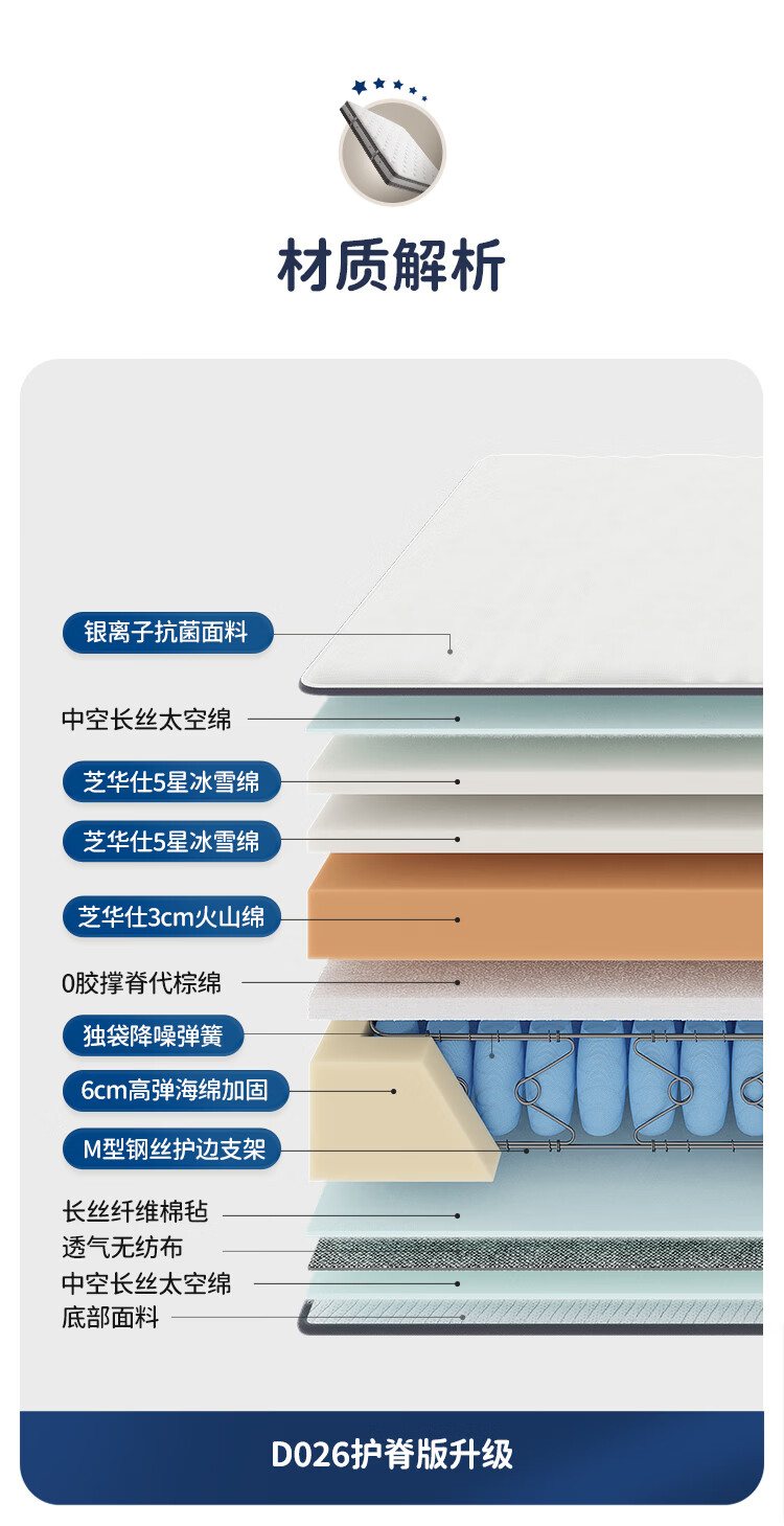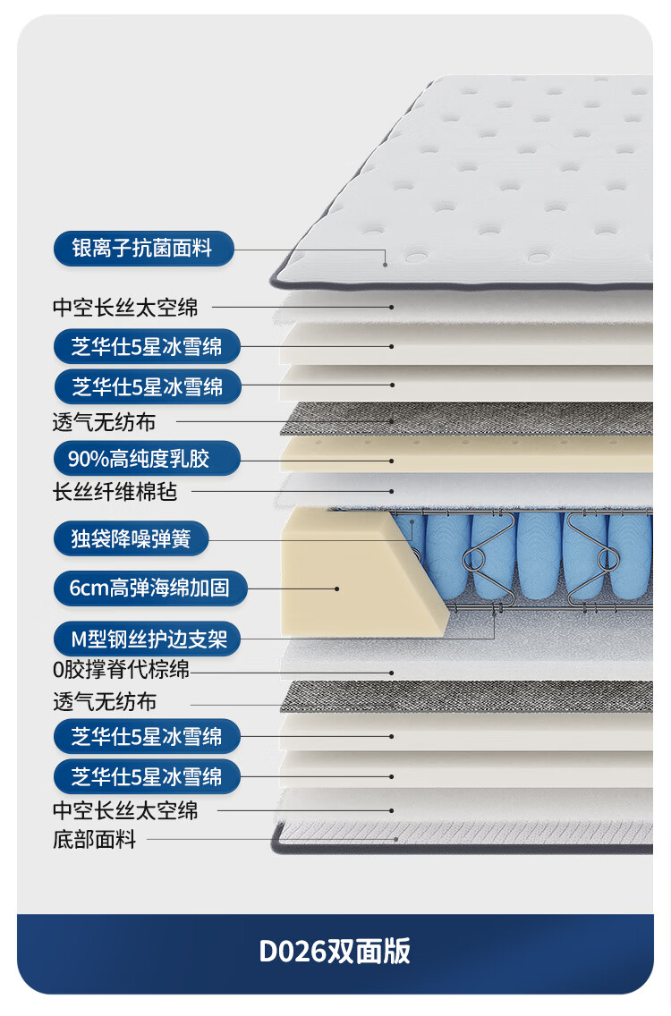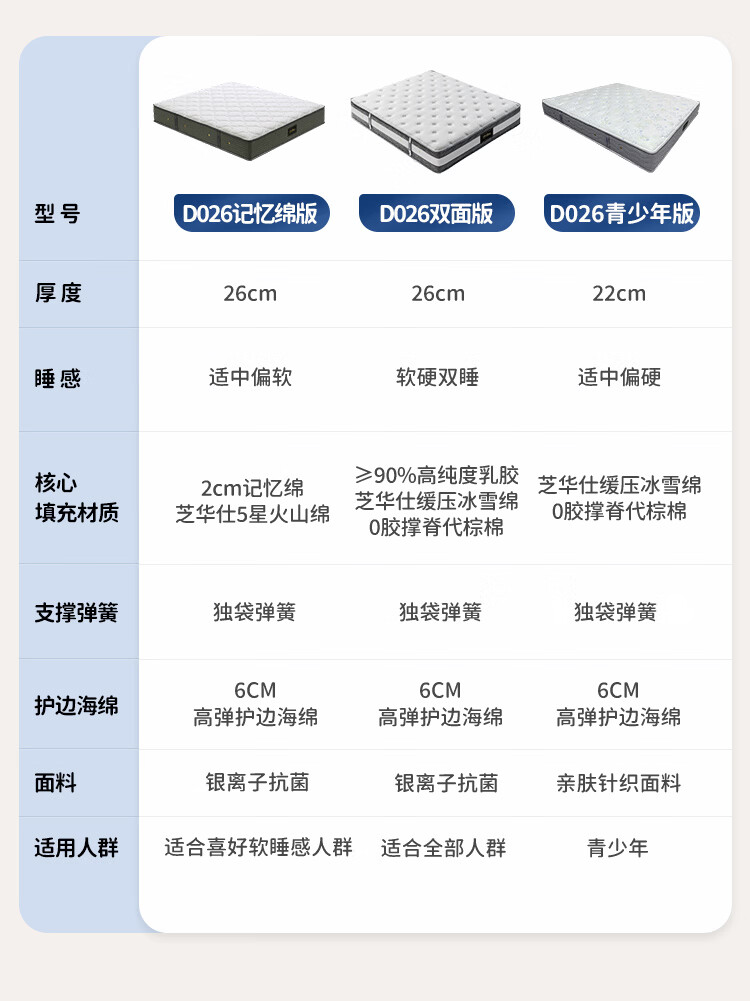 芝华仕5星床垫独立袋装弹簧静音家用乳胶席梦思软硬护脊厚垫明星垫D026 舒睡经典版升级款-1.8*2M 年前发货(地址详询客服)