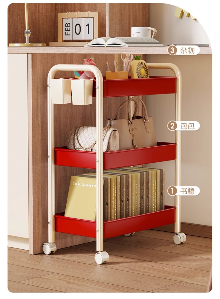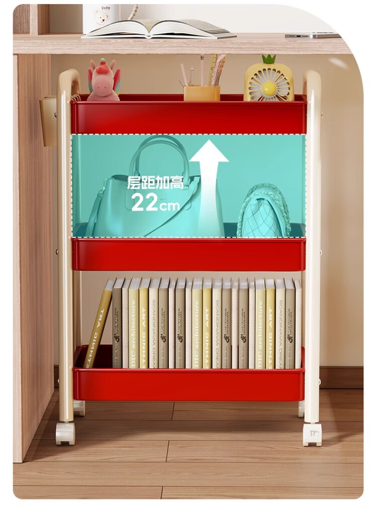 尔思家书架立式落地书柜储物柜一体靠墙可移动置物架多层办公室收纳架 三层黑色