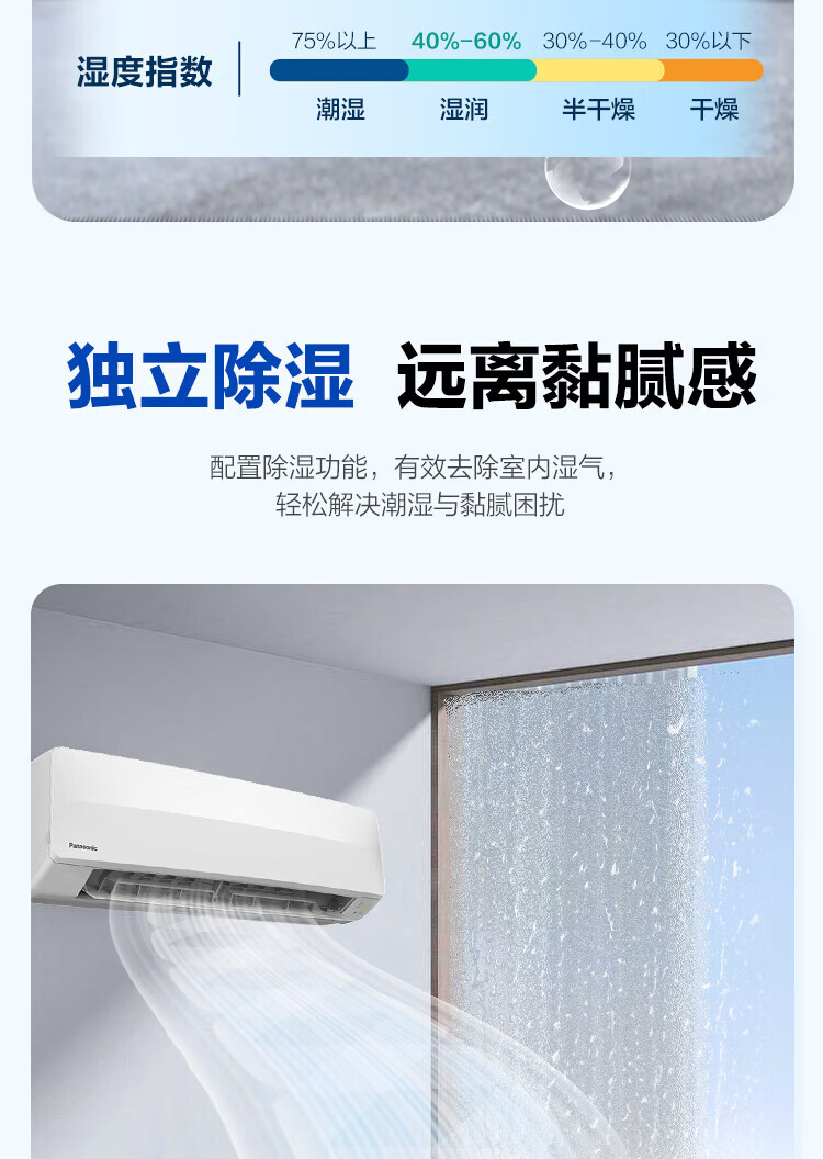 松下(Panasonic)空调挂机松之舞1.5匹一级能效变频冷暖省电原装压缩机独立除湿自清洁健康风HZ35K410Q