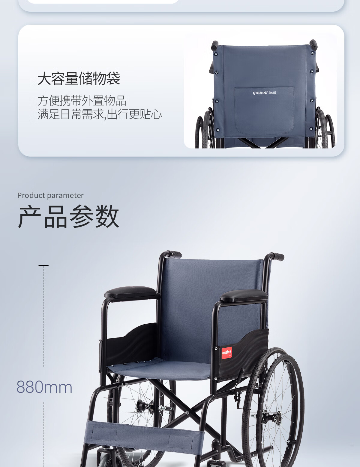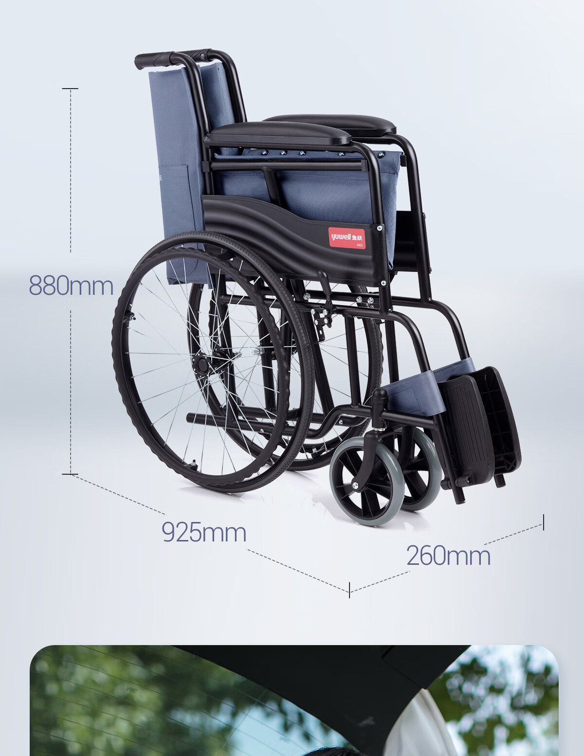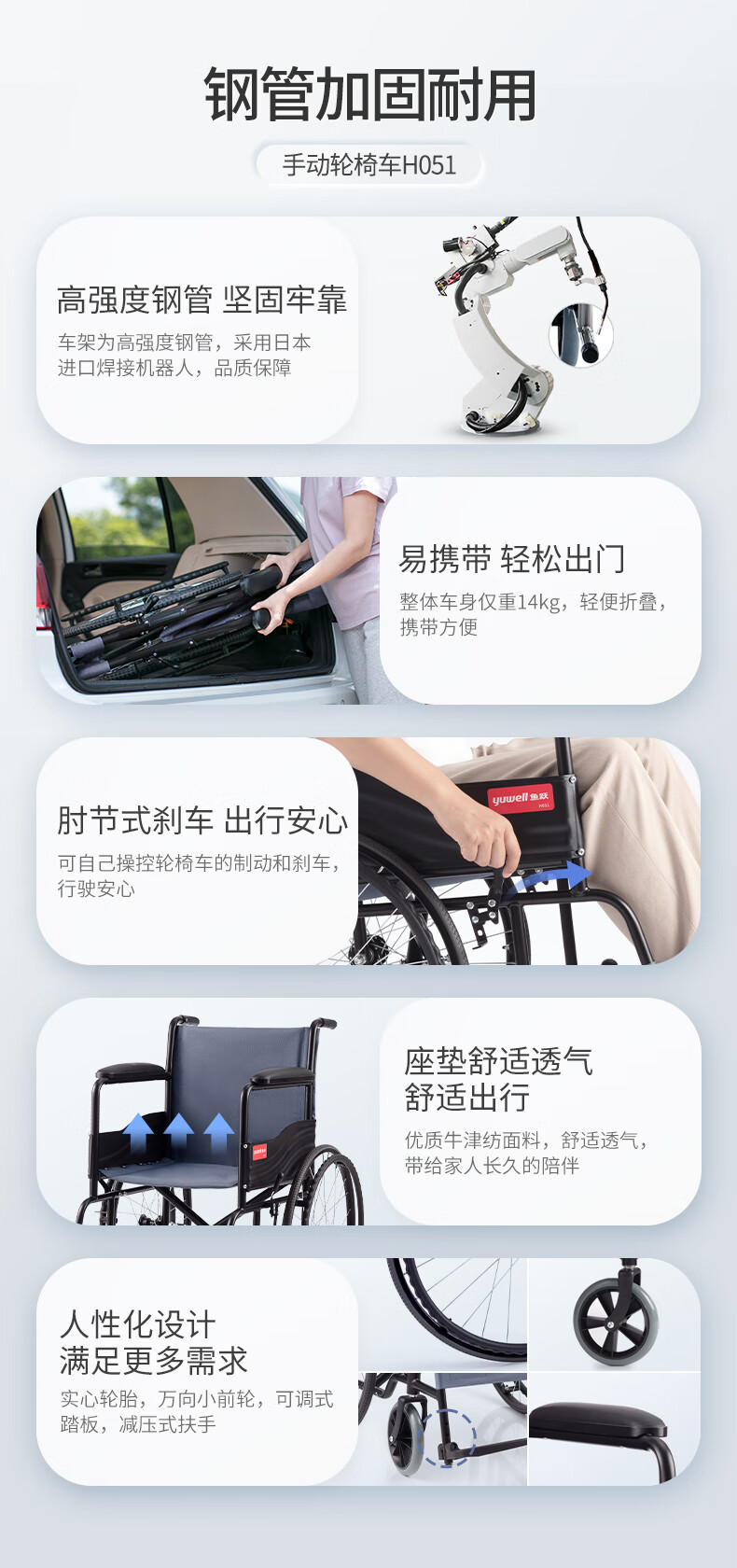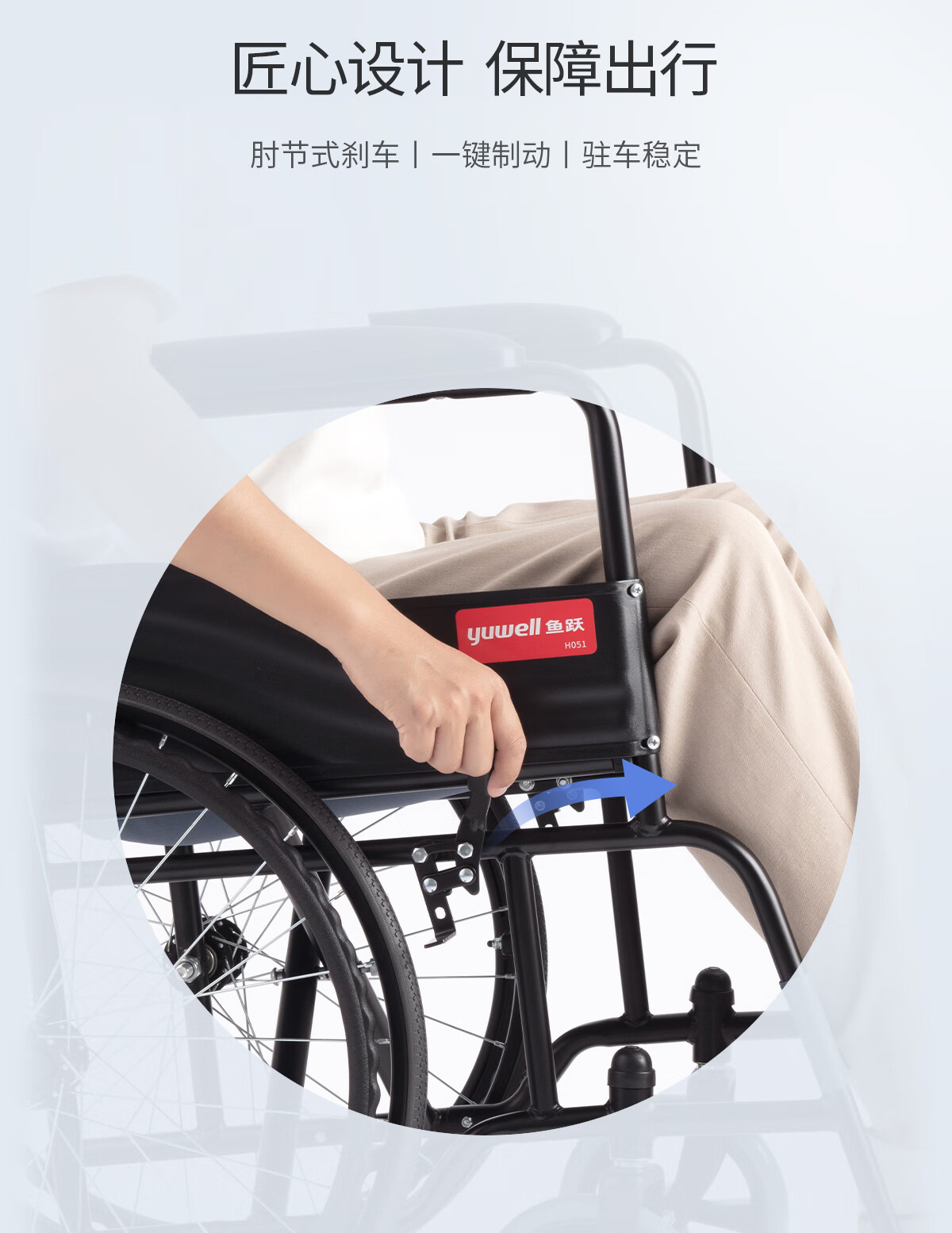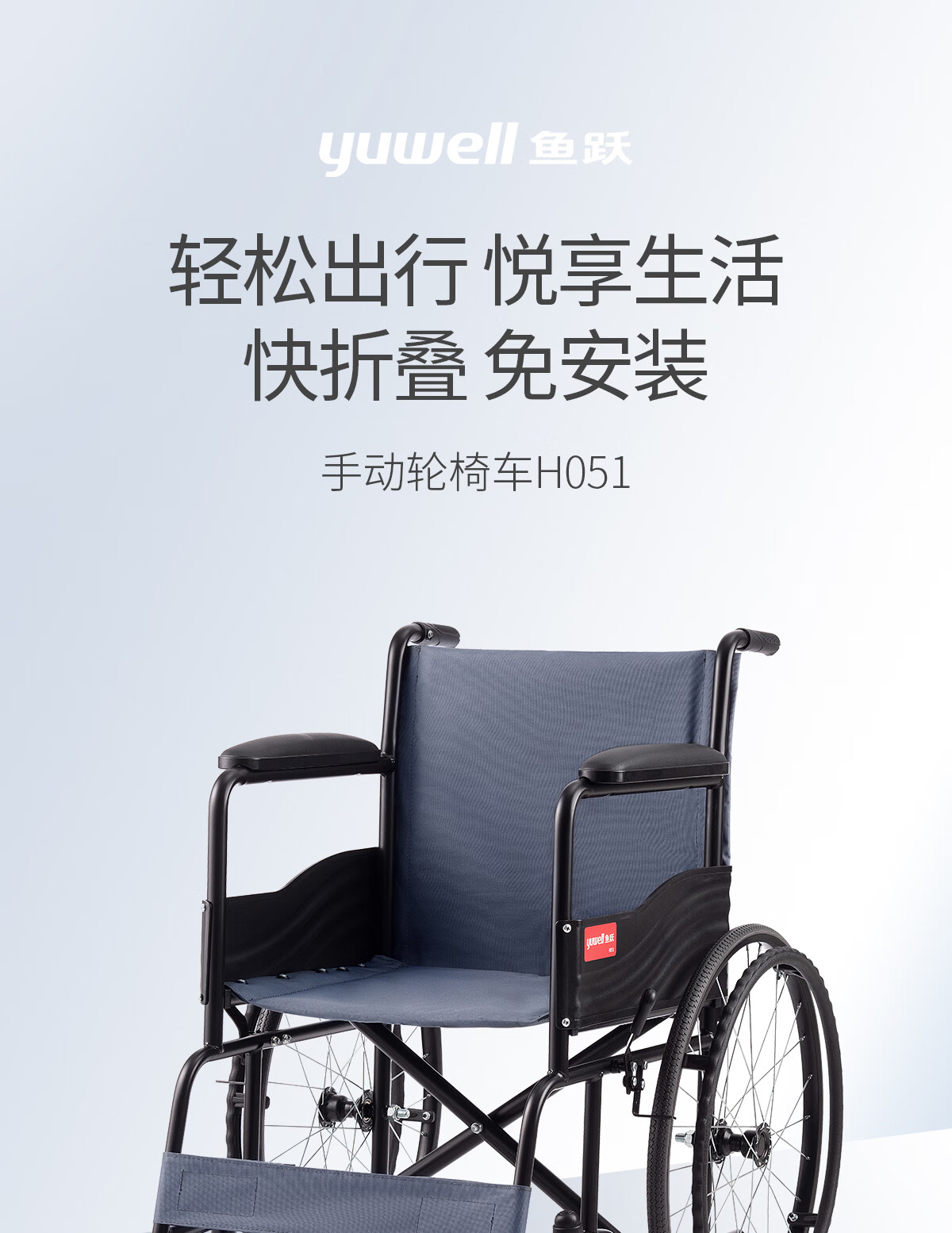 鱼跃(yuwell)轮椅车H051折叠老人轻便旅行手推车钢管免充气胎代步车