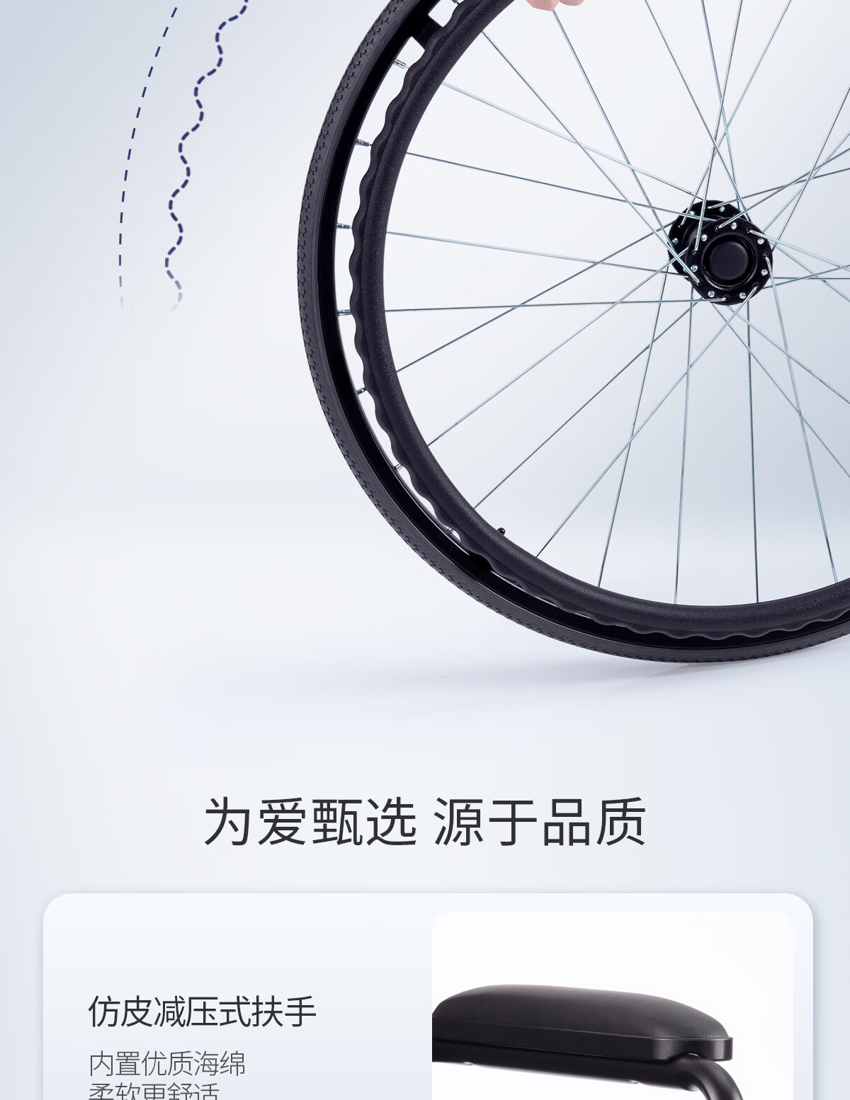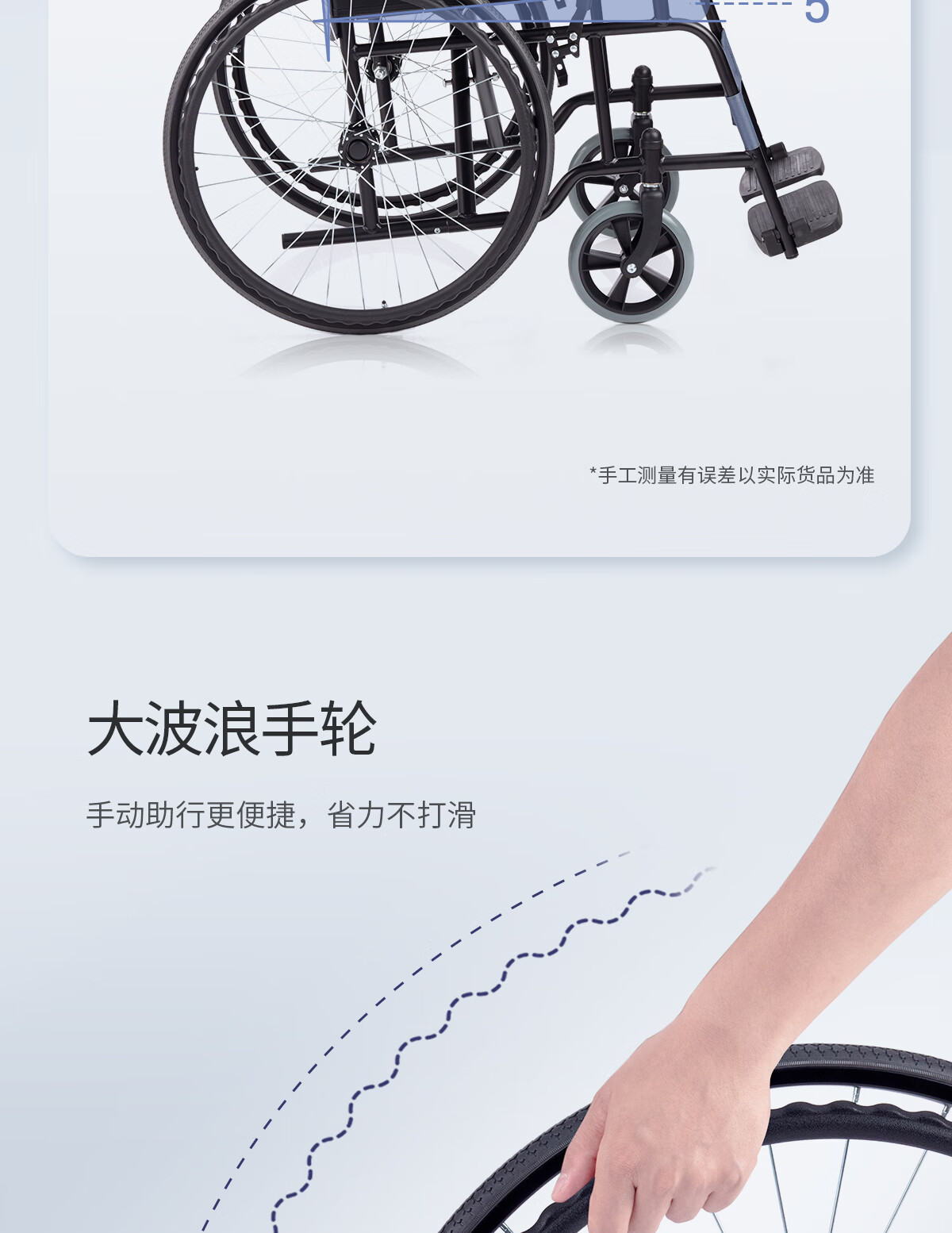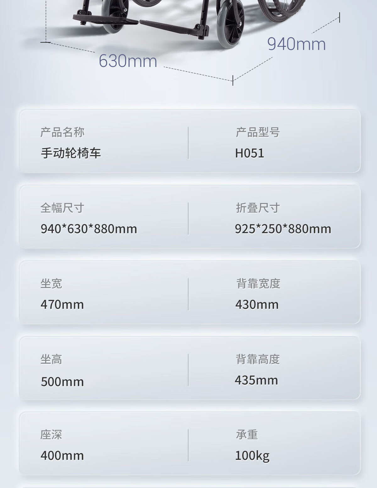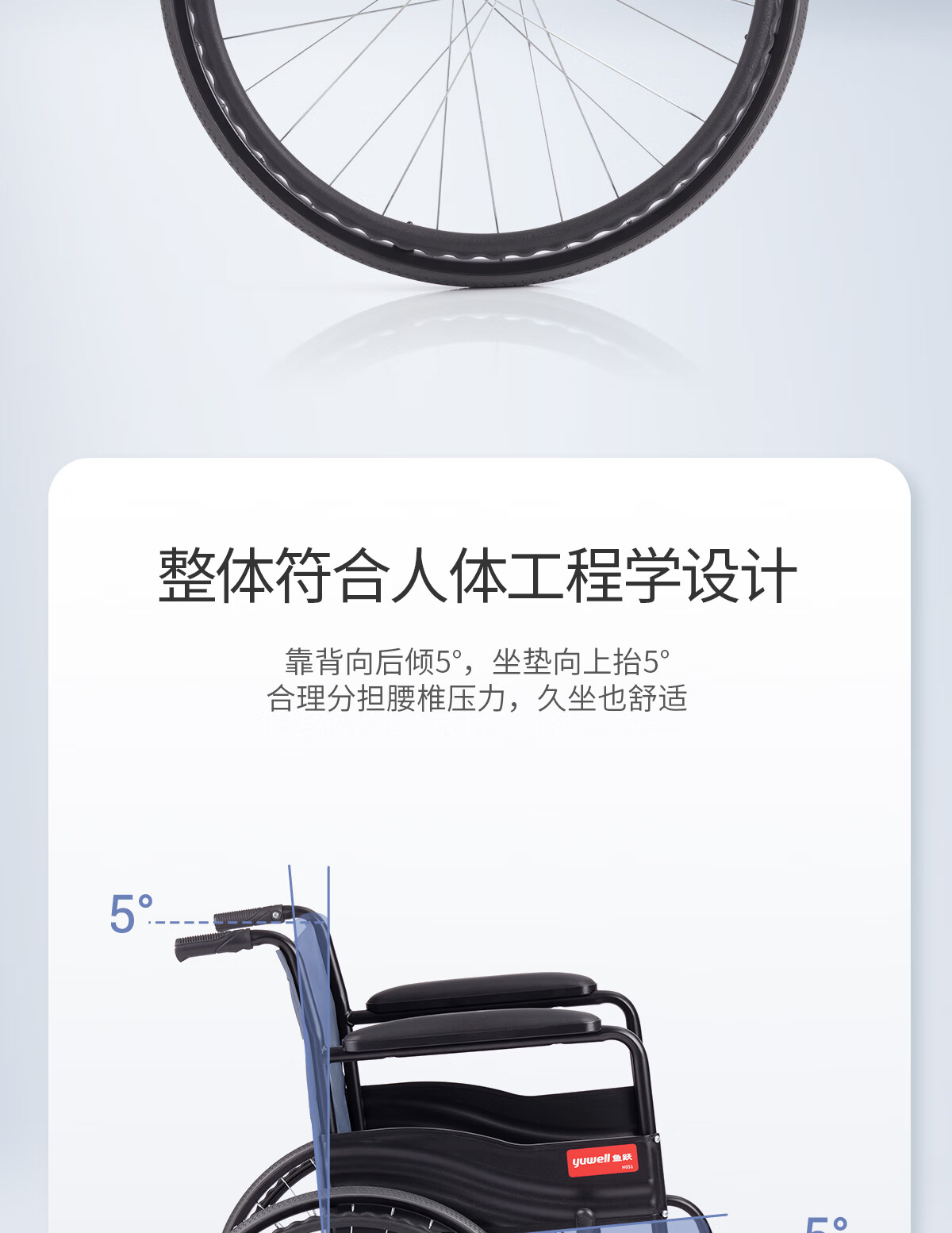 鱼跃(yuwell)轮椅车H051折叠老人轻便旅行手推车钢管免充气胎代步车
