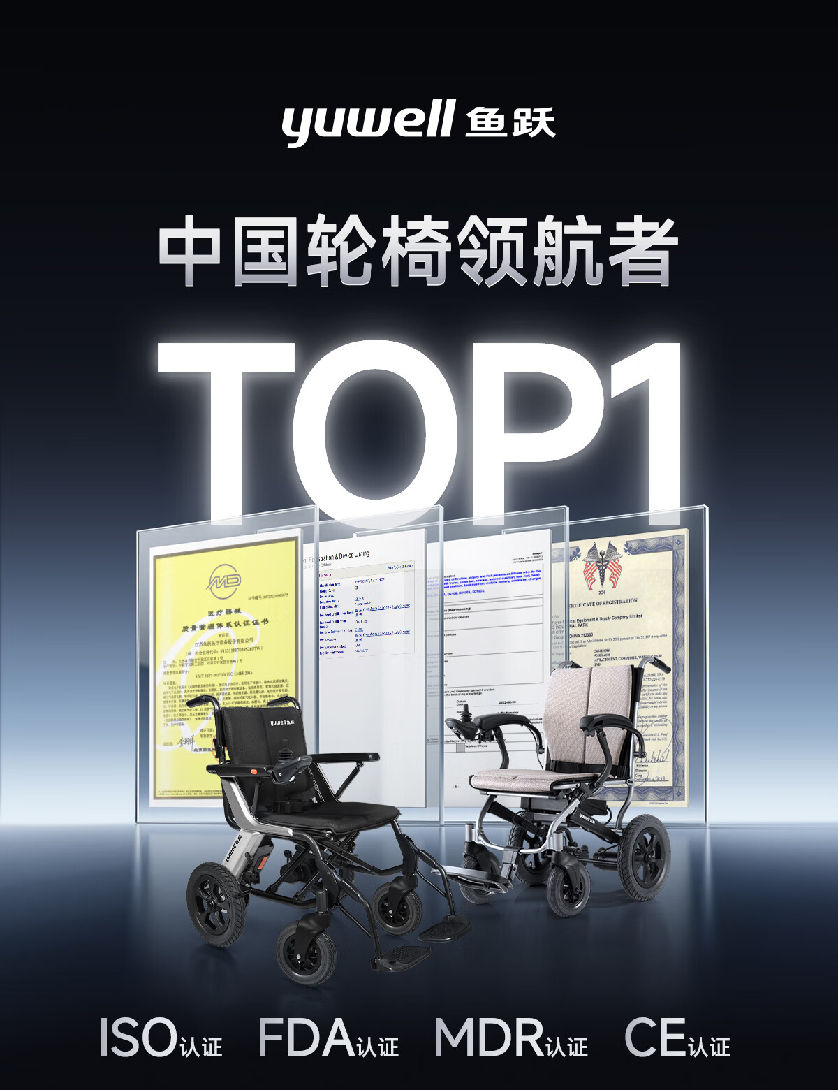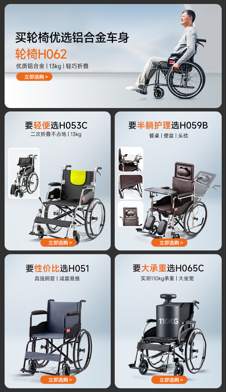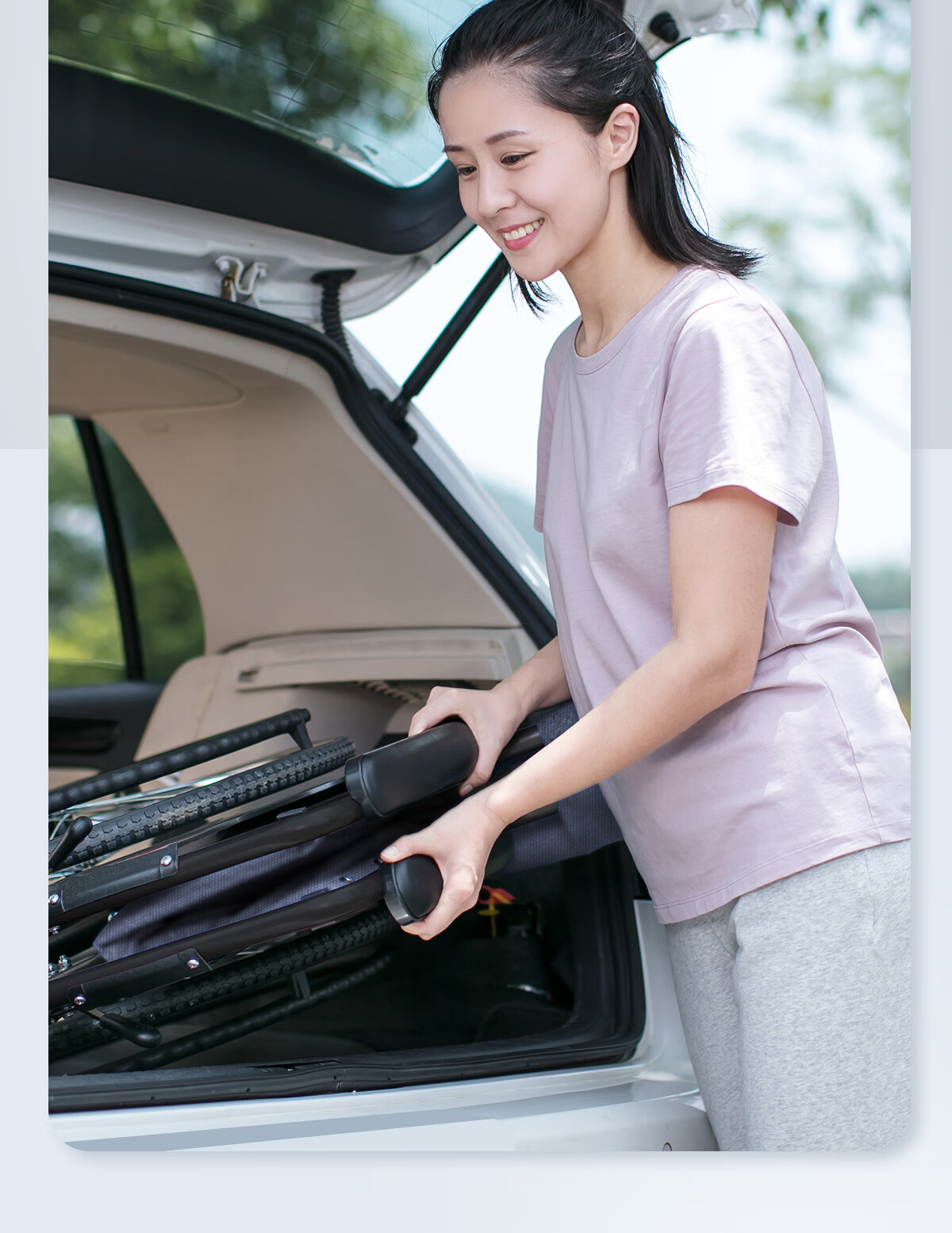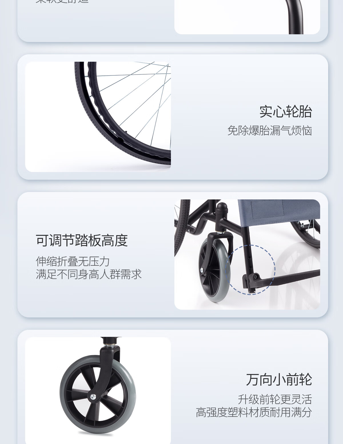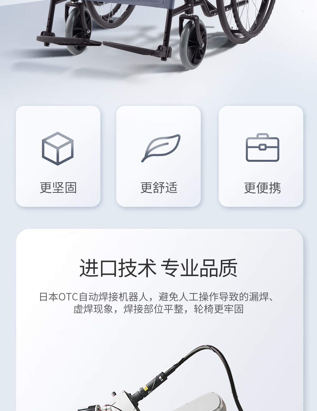 鱼跃(yuwell)轮椅车H051折叠老人轻便旅行手推车钢管免充气胎代步车