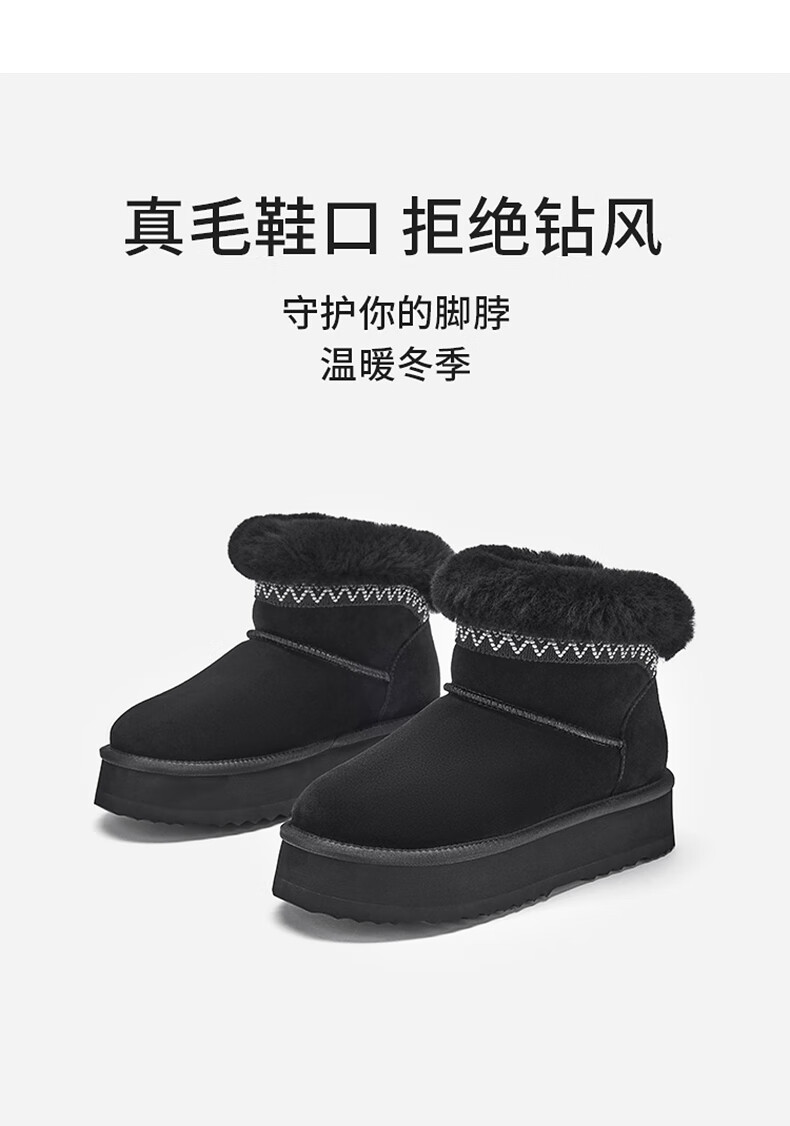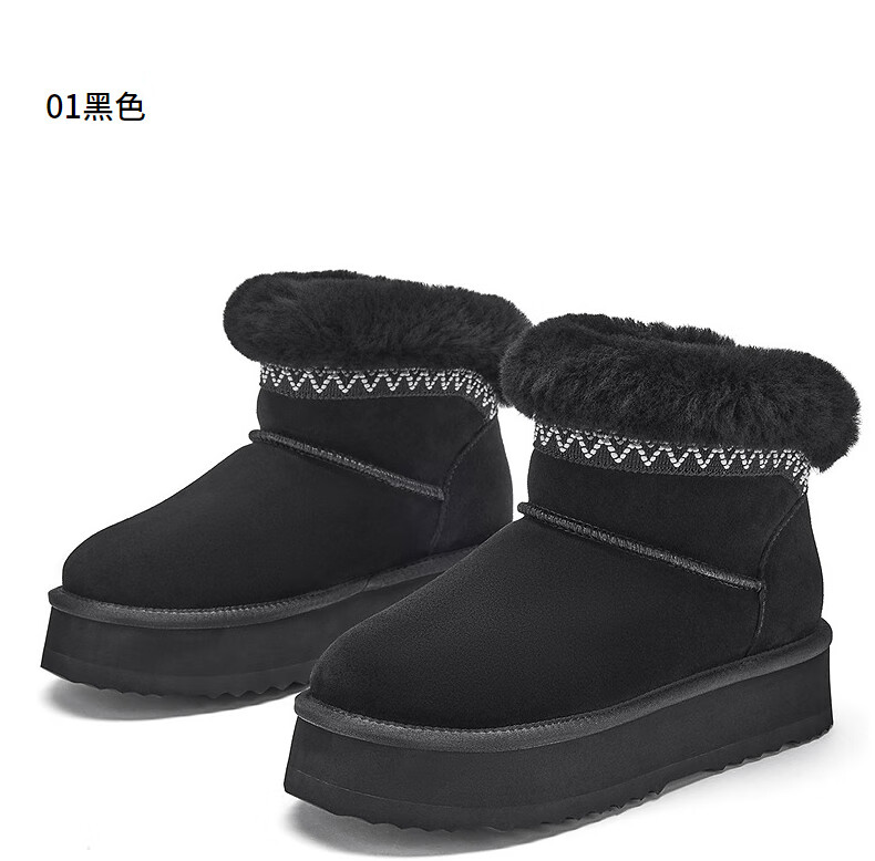 热风加绒雪地靴女2025年冬季新款复古保暖休闲靴小个子加厚棉鞋 01黑色 34