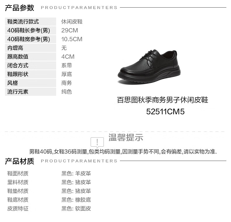 百思图2025秋季商场新款舒适软面羊皮皮鞋商务正装男鞋52511CM5 黑色 42