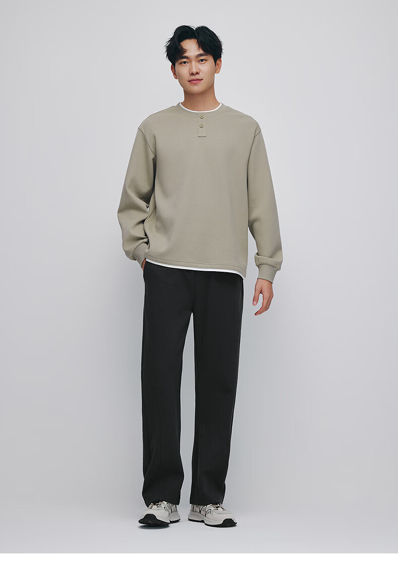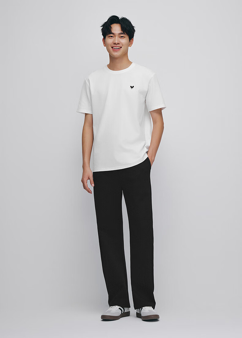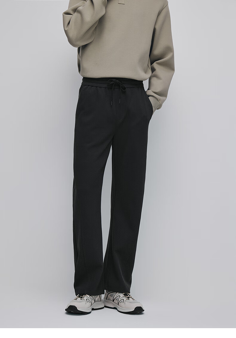 热风男士直筒卫裤2025年秋季新款肌理直筒宽松舒适百搭休闲长裤 01黑色 S