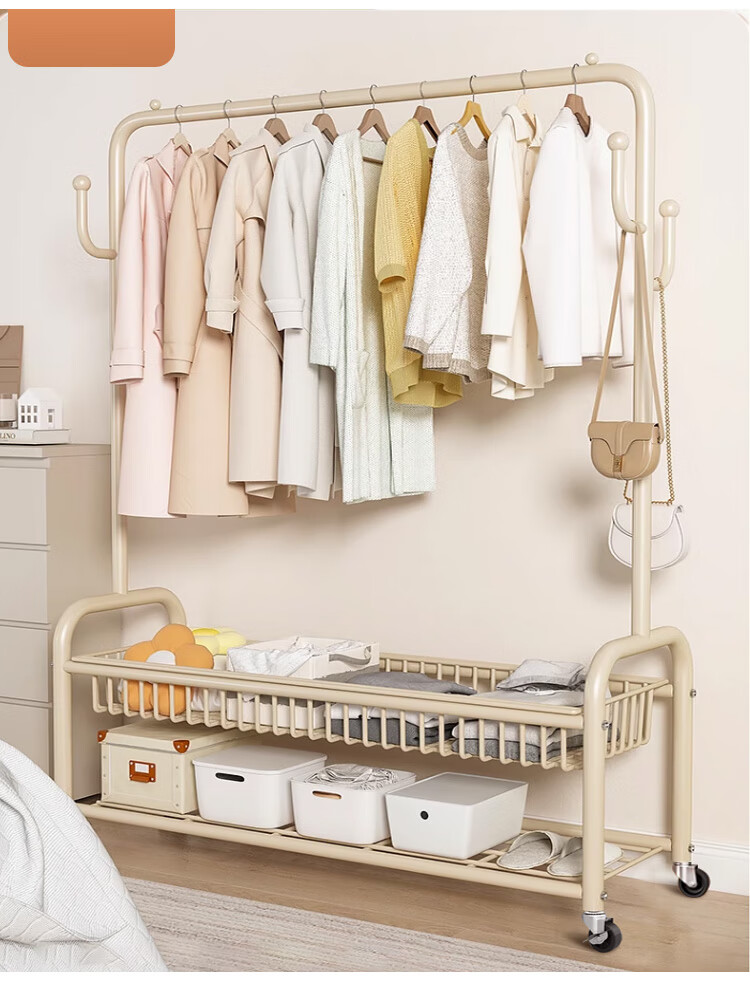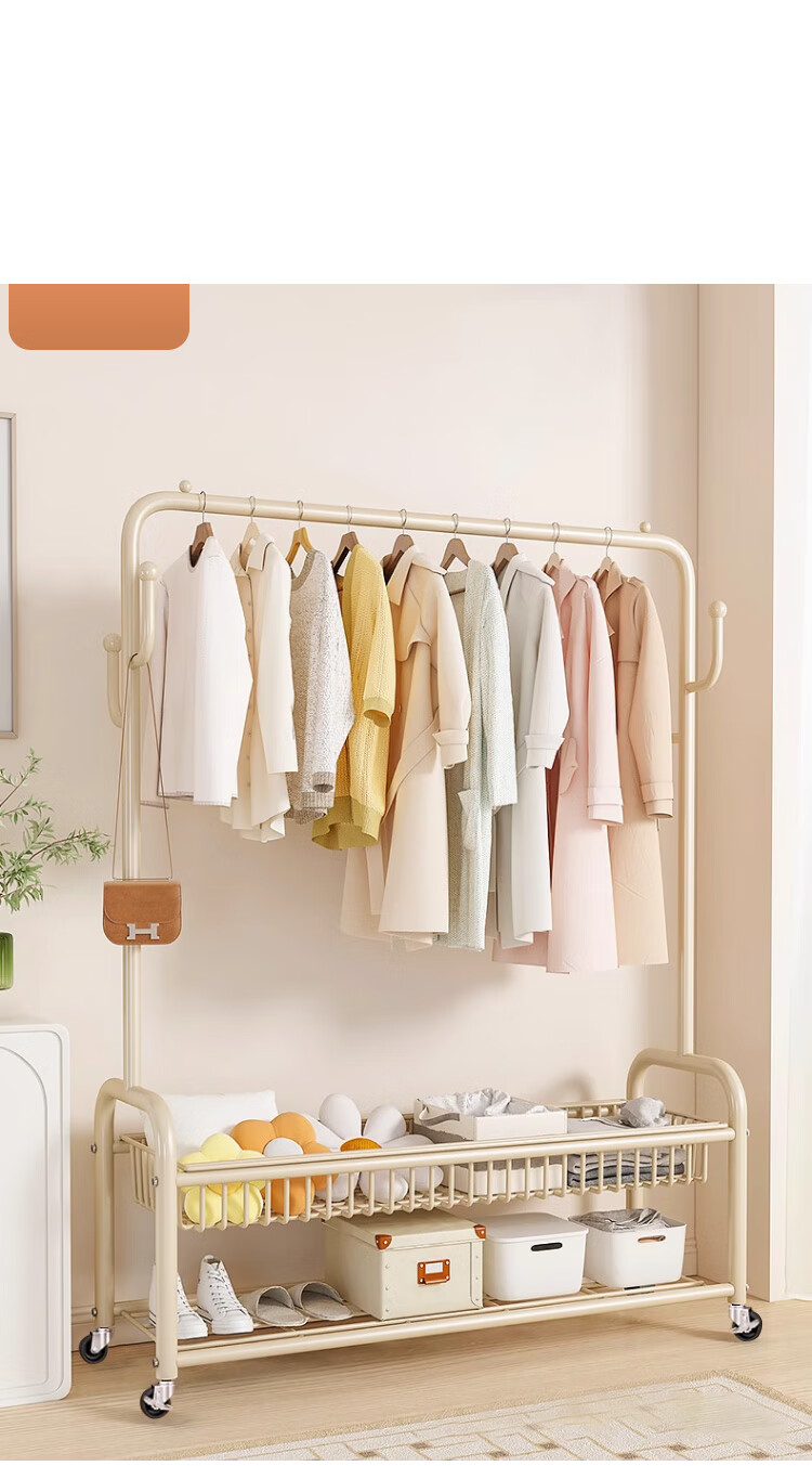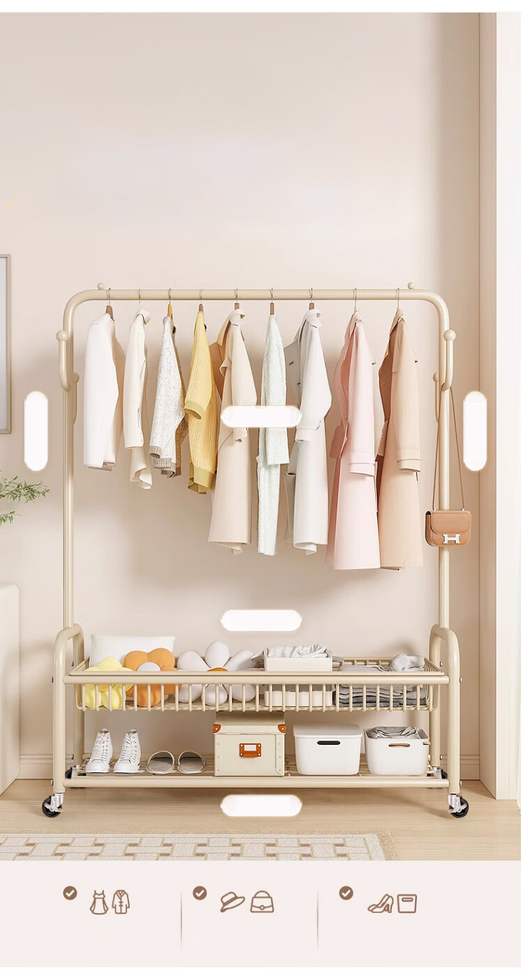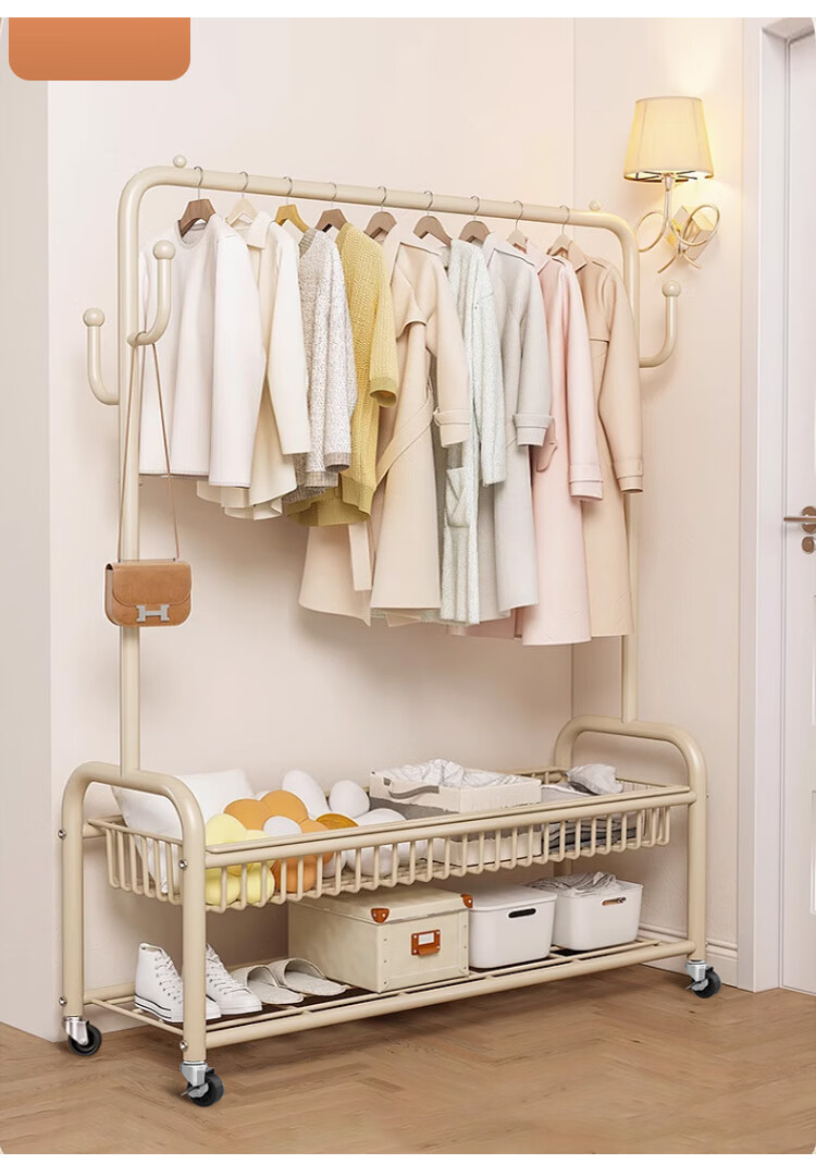喻品衣架落地衣帽架挂衣架卧室客厅可移动晾衣收纳架子MJ52双层白100