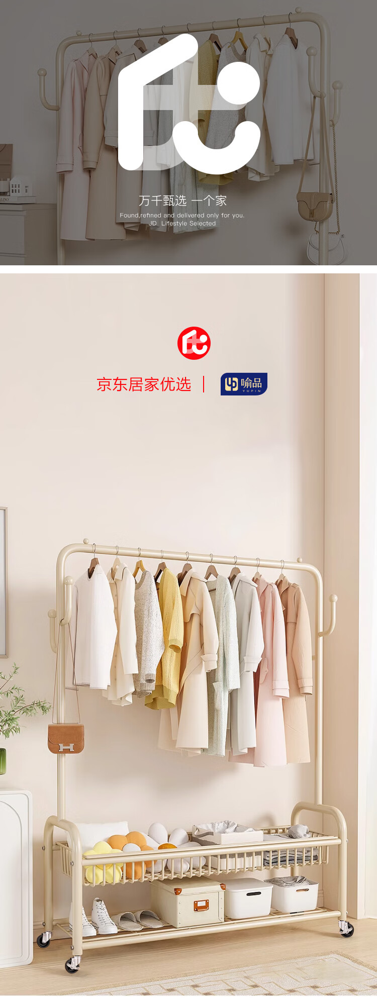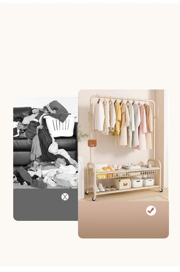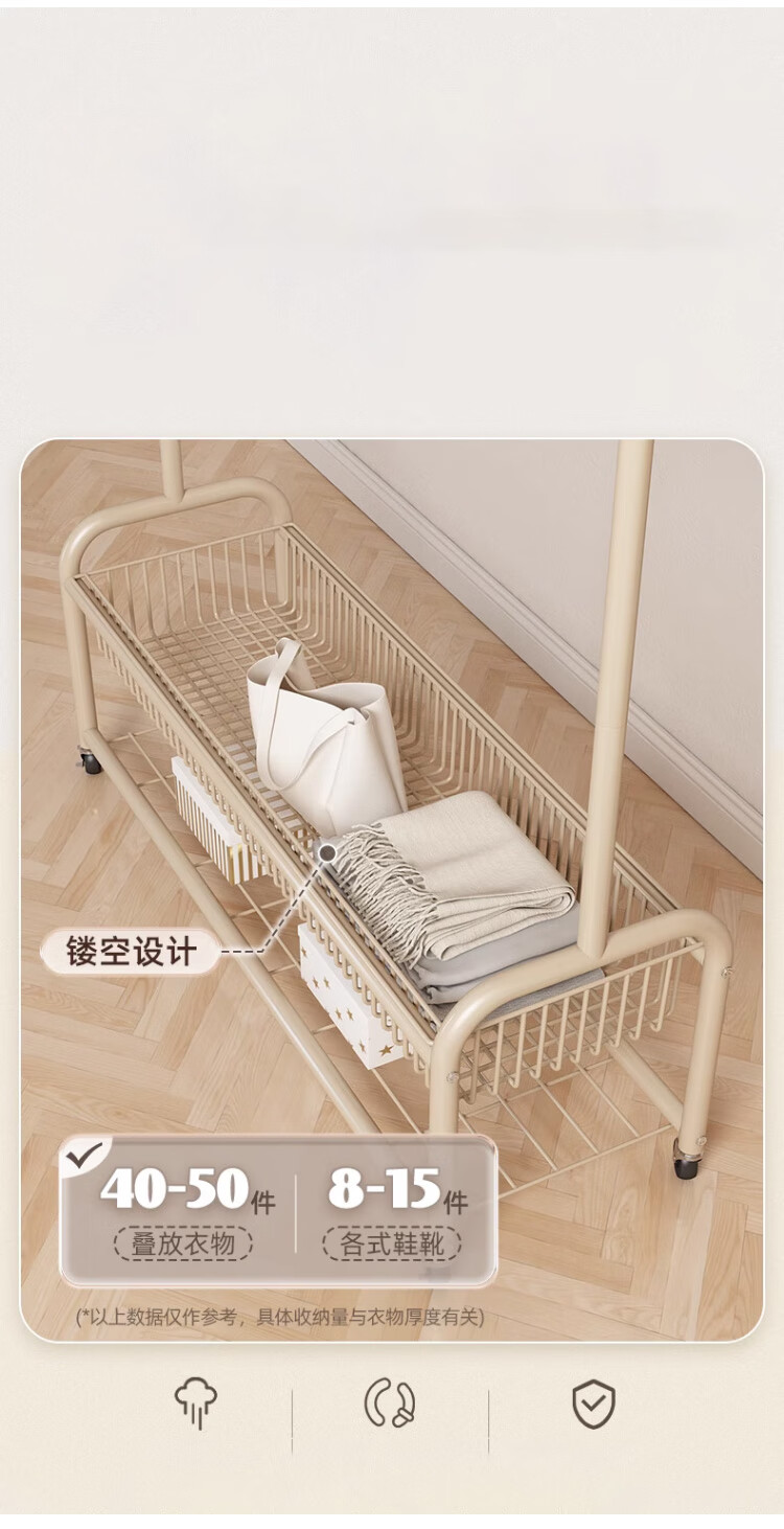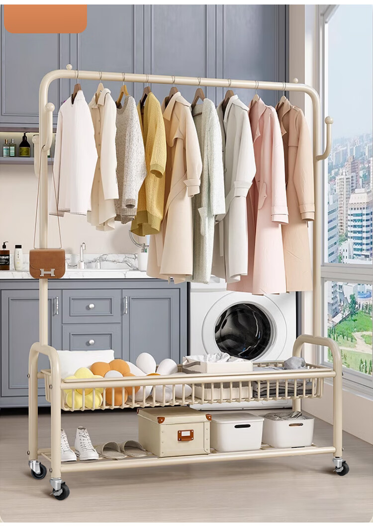 喻品衣架落地衣帽架挂衣架卧室客厅可移动晾衣收纳架子MJ52双层白100
