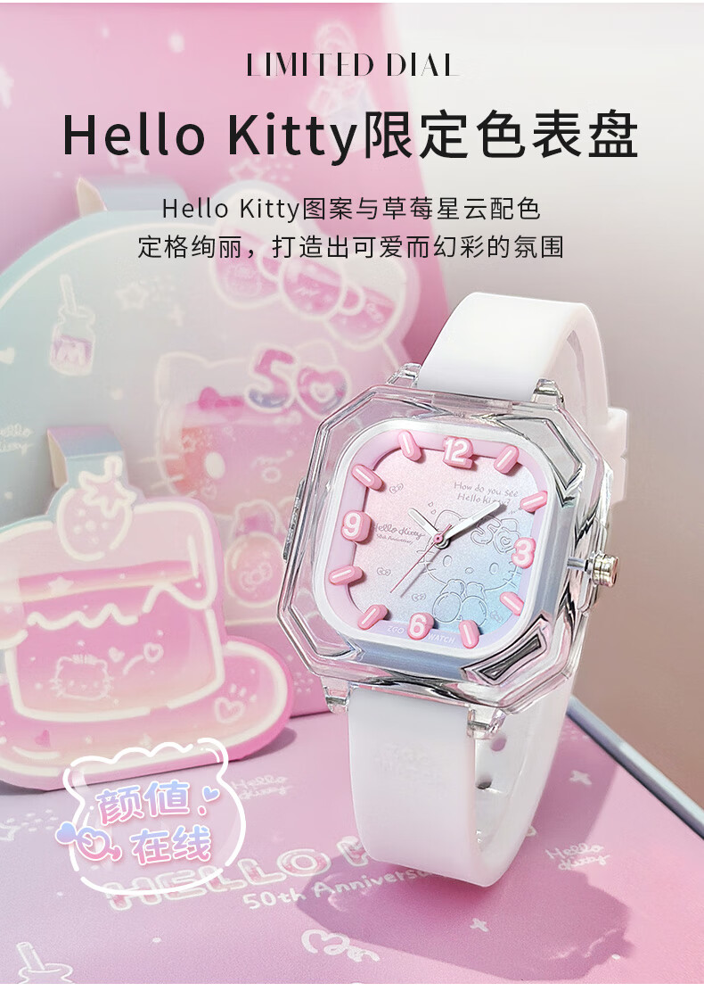 Hello Kitty【50周年限定】手表女学生小学初中生儿童手表开学生日礼物送女孩