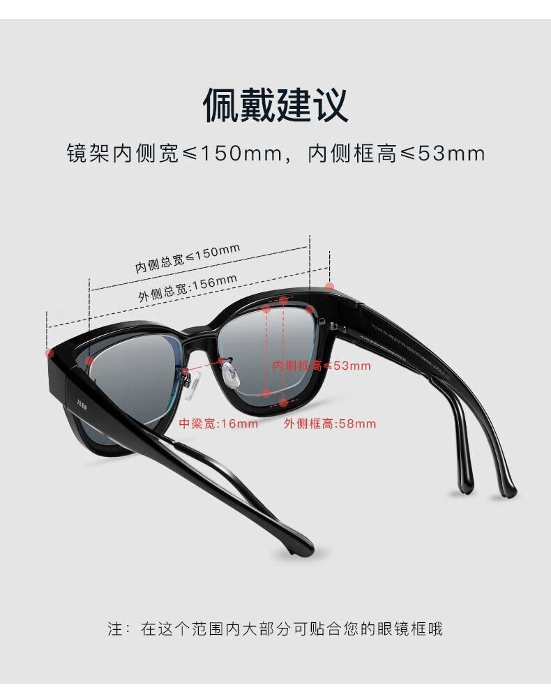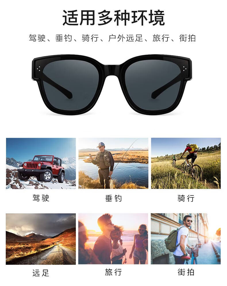 mikibobo太阳镜 墨镜男女 口袋折叠 近视专用套镜 开车防紫外线UV400 折叠云镜黑