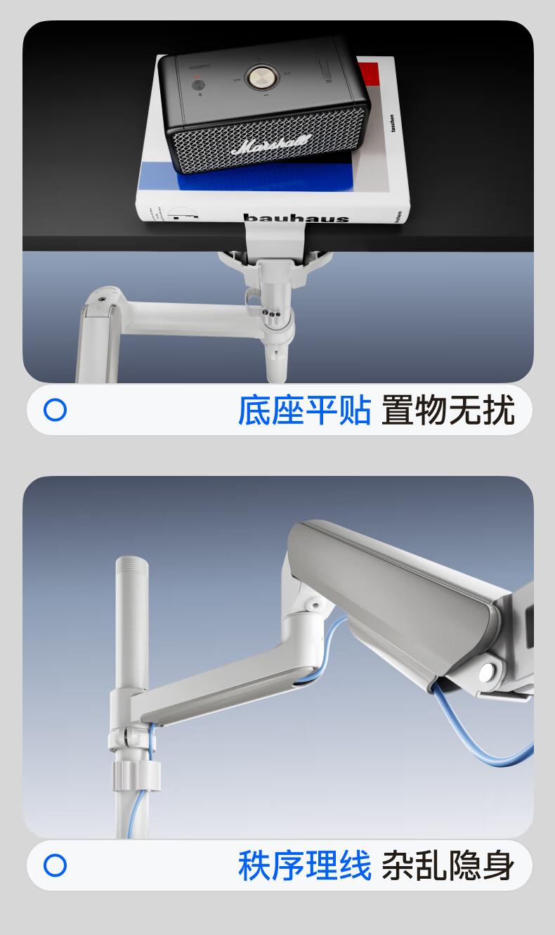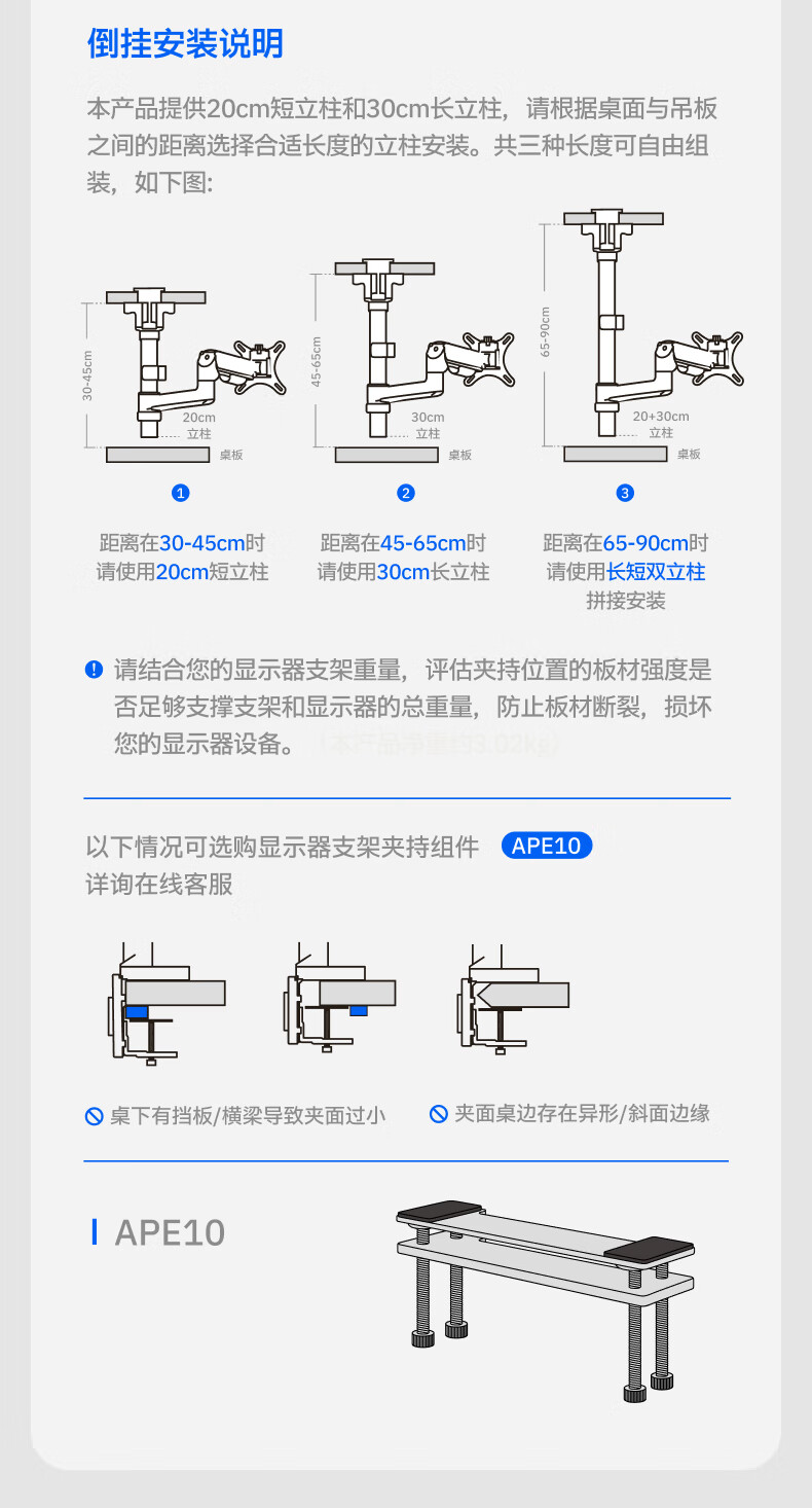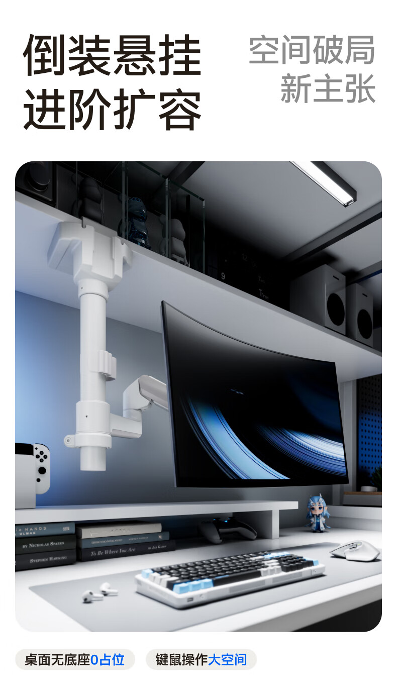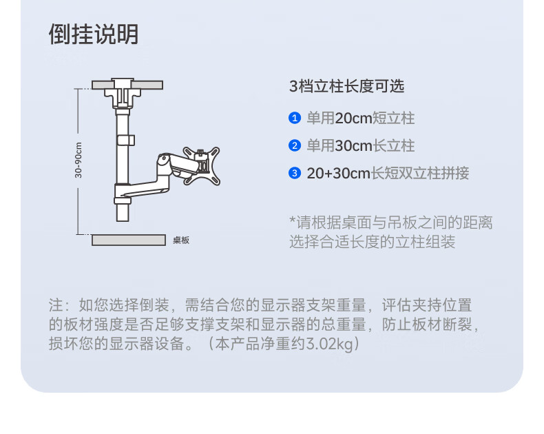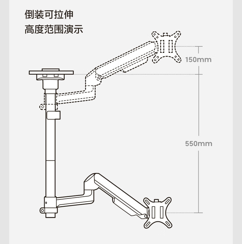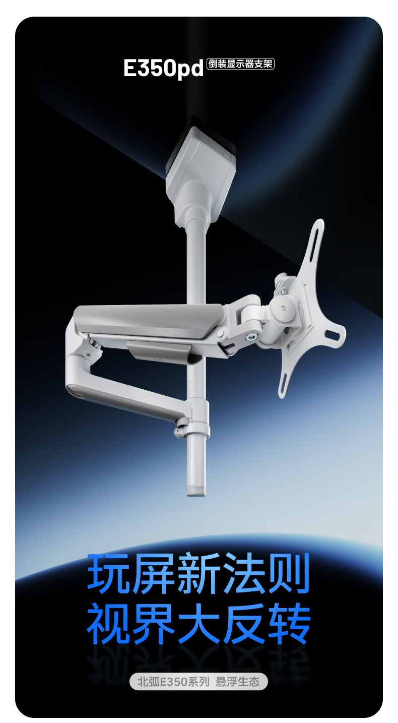 Brateck北弧 显示器支架 倒挂机械臂 电脑支架桌面夹式底座 倒装屏幕升降臂E350pd白17-32吋 宿舍悬空托架