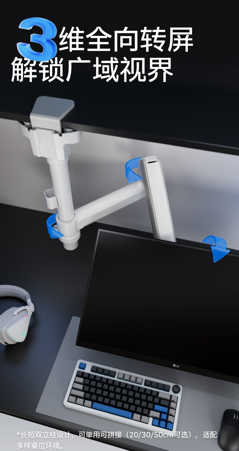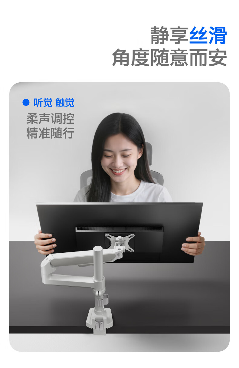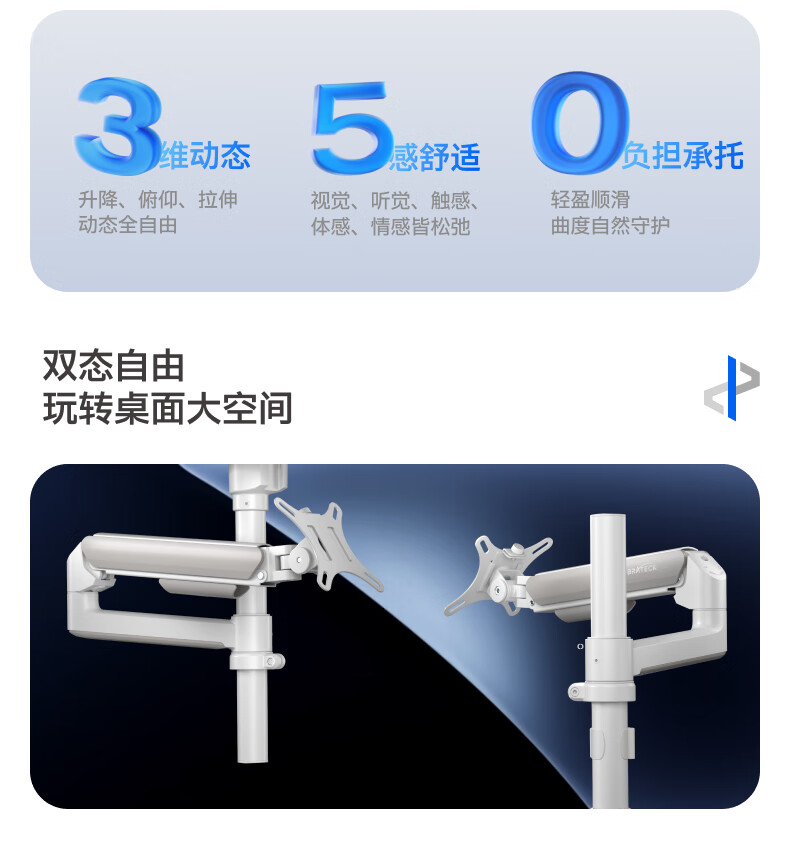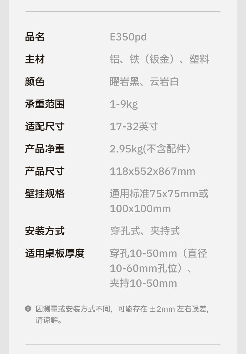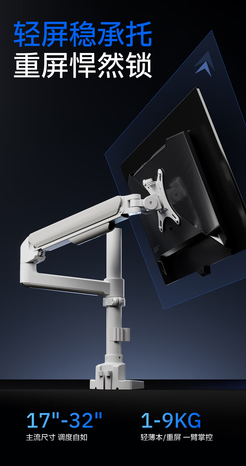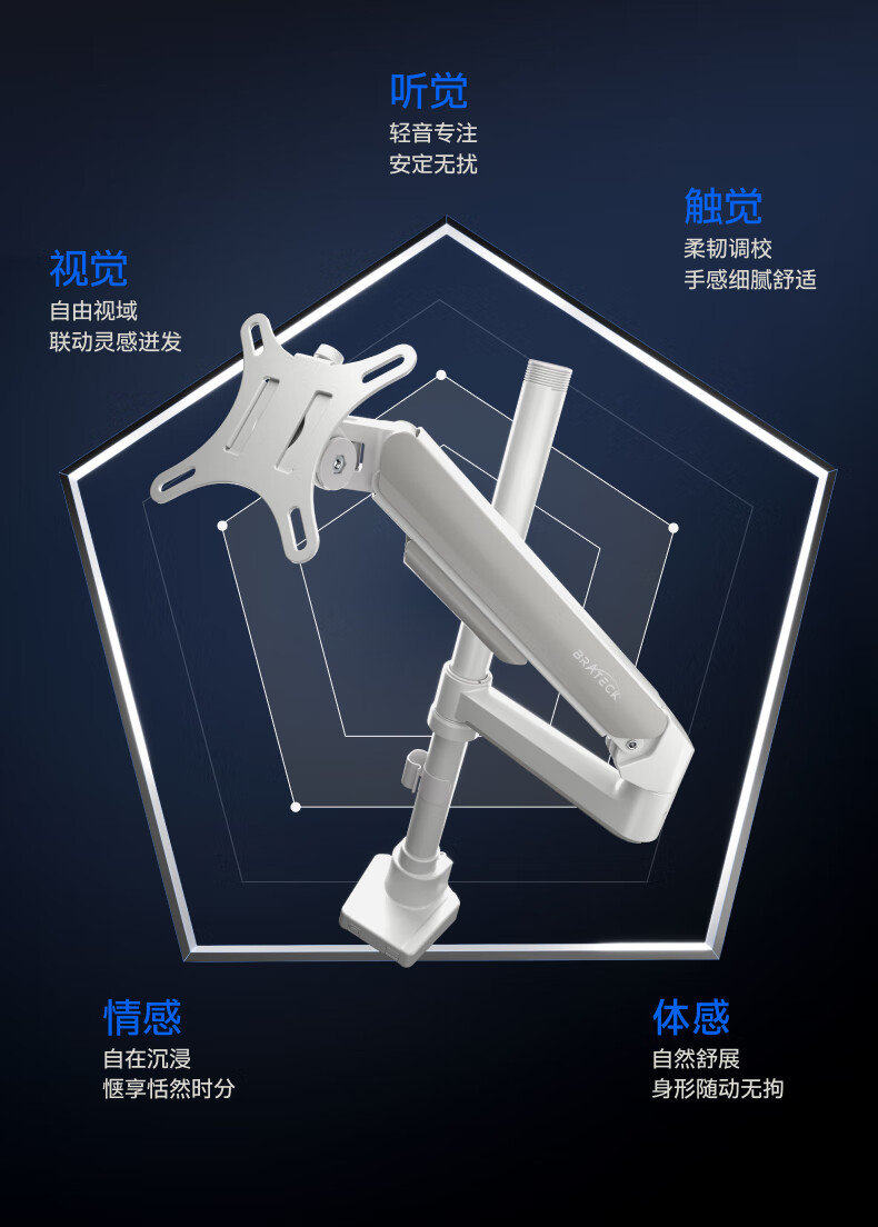 Brateck北弧 显示器支架 倒挂机械臂 电脑支架桌面夹式底座 倒装屏幕升降臂E350pd白17-32吋 宿舍悬空托架