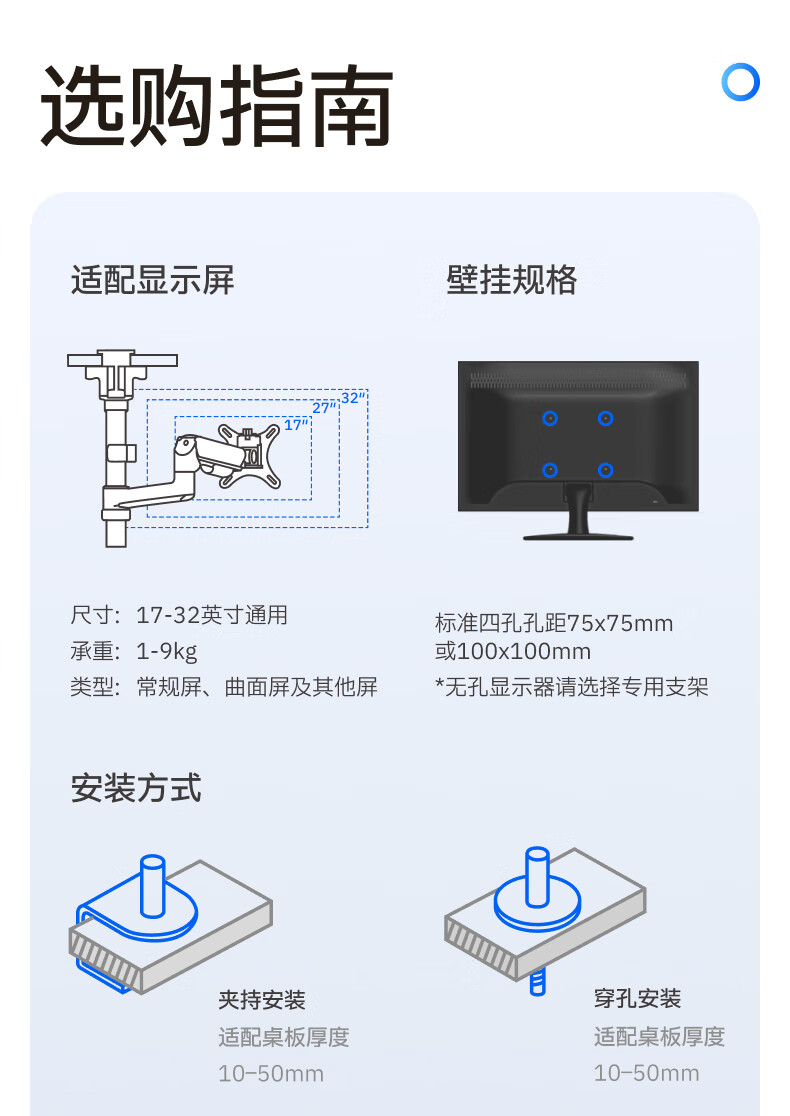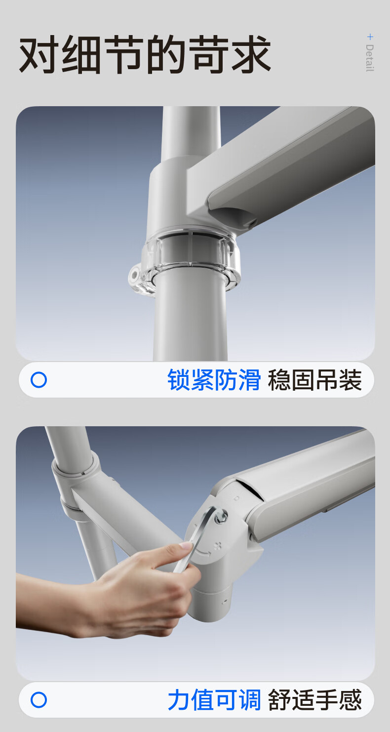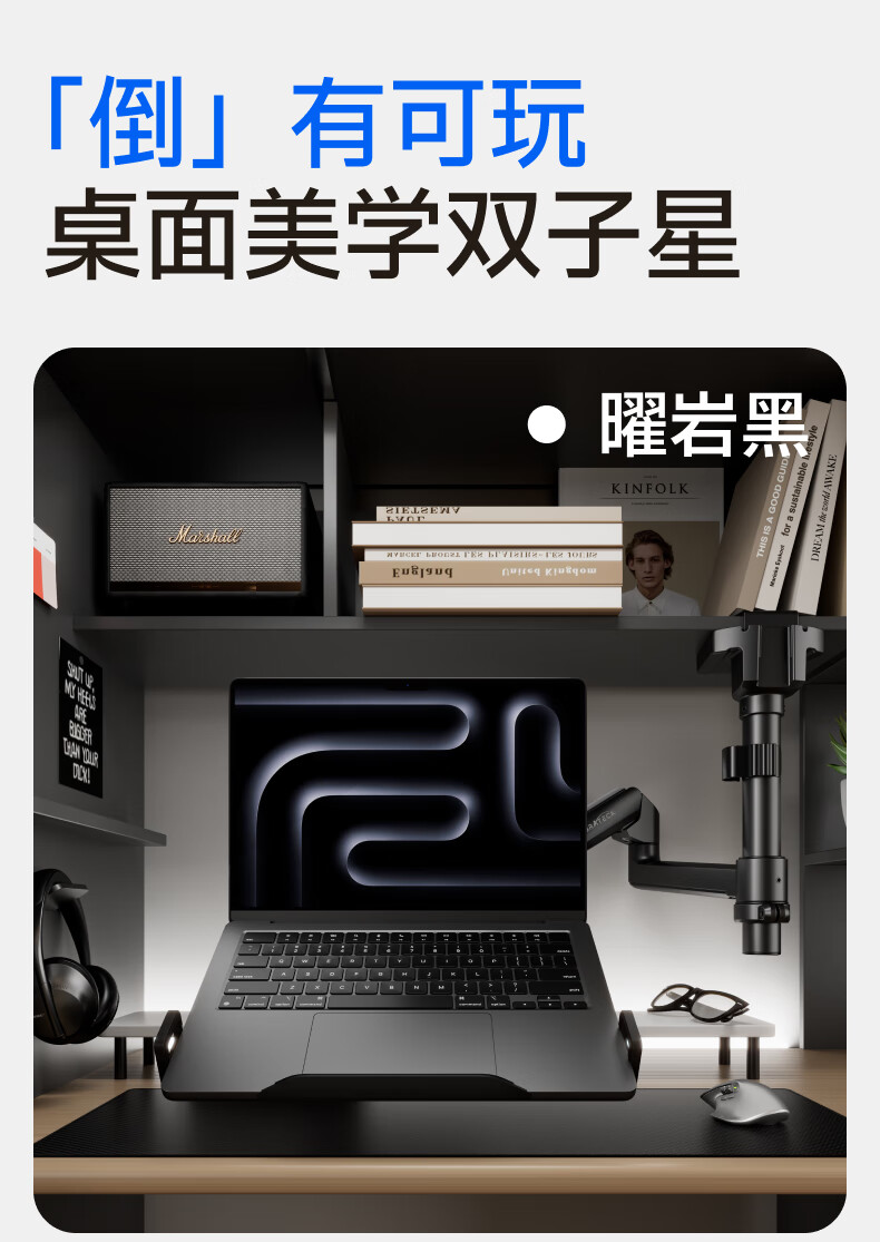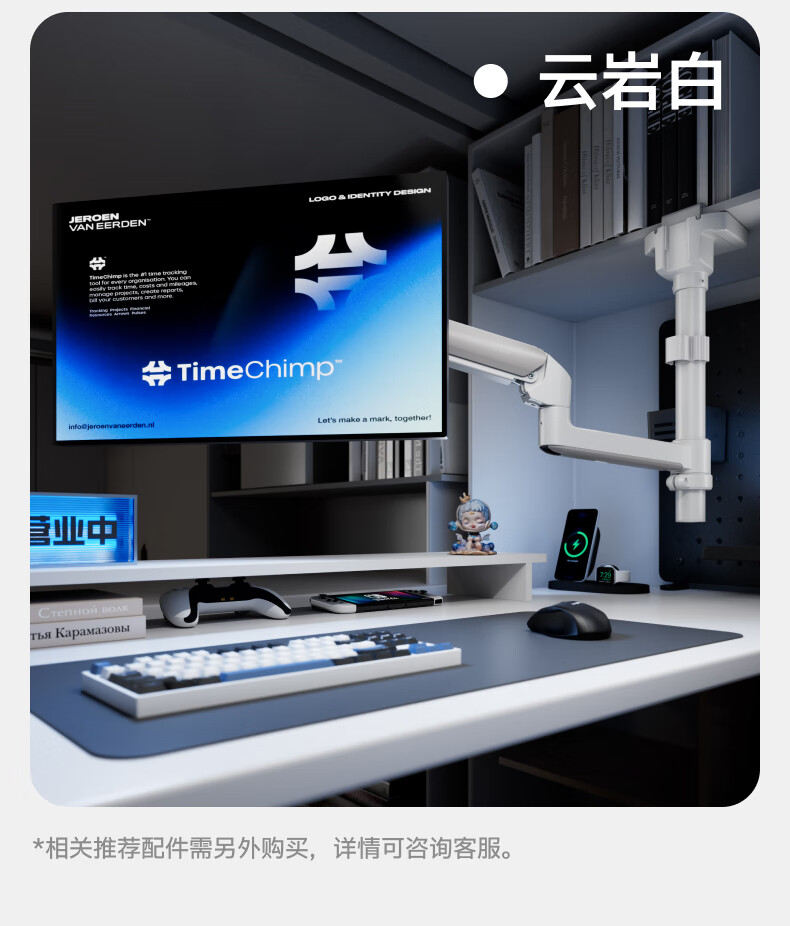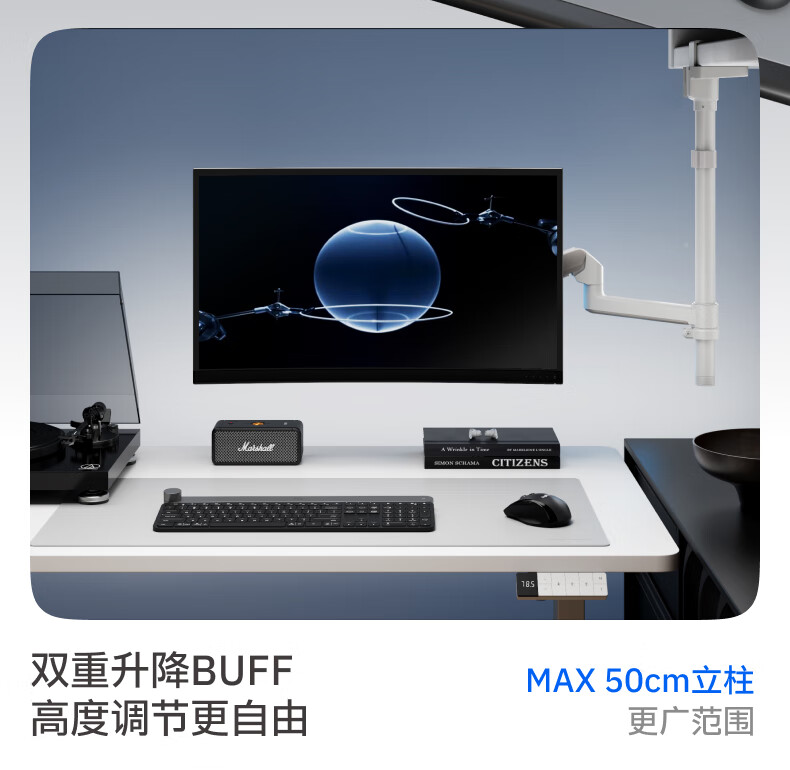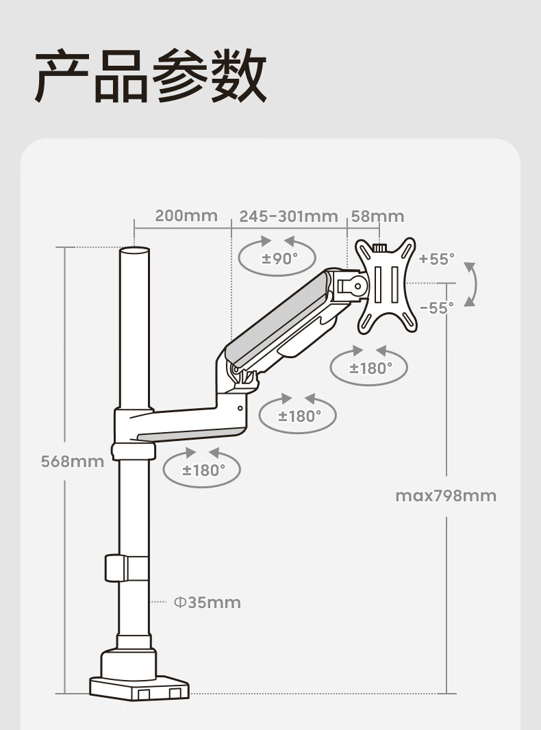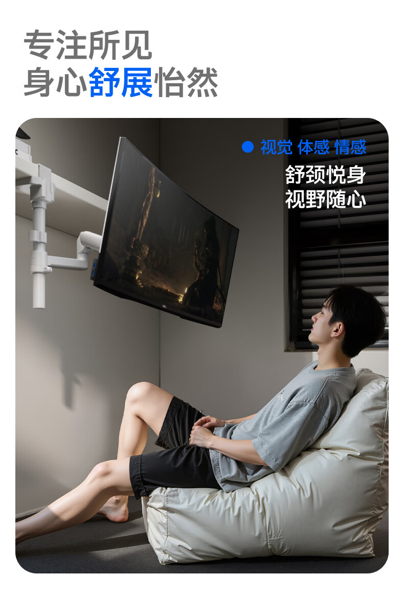 Brateck北弧 显示器支架 倒挂机械臂 电脑支架桌面夹式底座 倒装屏幕升降臂E350pd白17-32吋 宿舍悬空托架