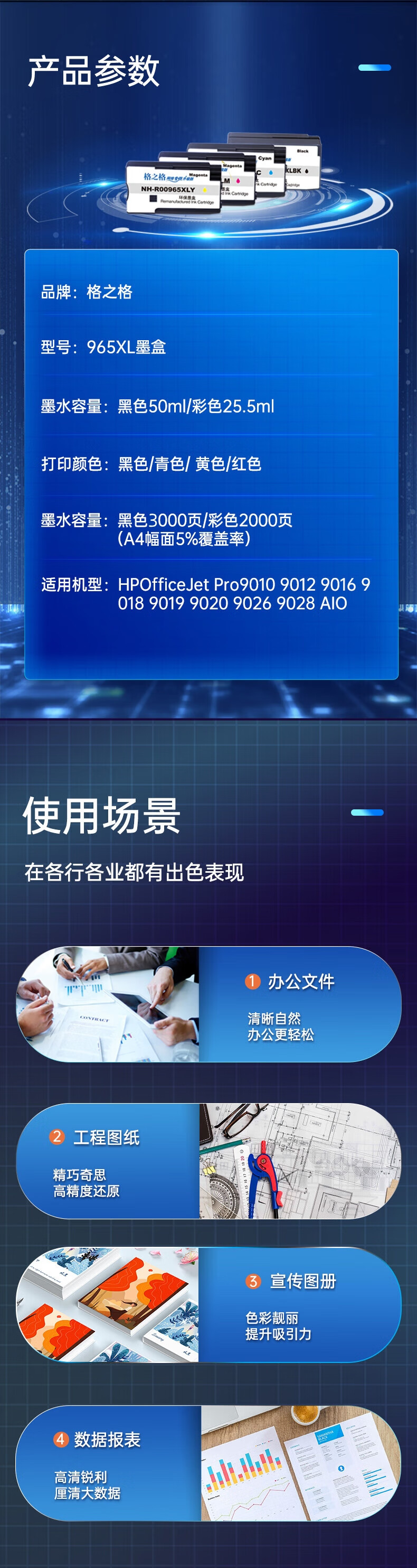 格之格965XL墨盒 适用惠普9020墨盒9012 9028 9016 9018 9026 9019 惠普9010打印机墨盒 965XL大容量四色套装