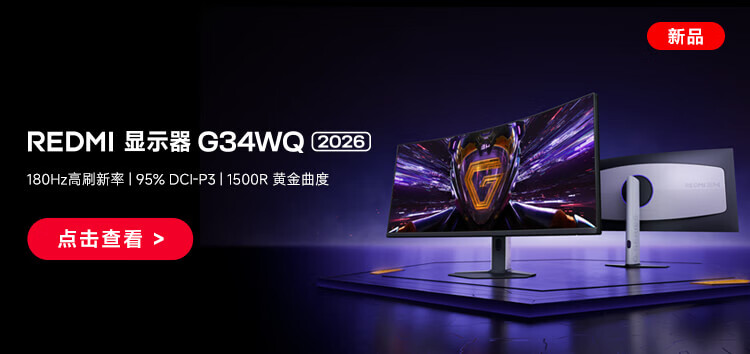 小米Redmi 34英寸电竞显示器WQHD曲面带鱼屏 180Hz刷新率 95%DCI-P3 广色域 带鱼屏显示器显示屏