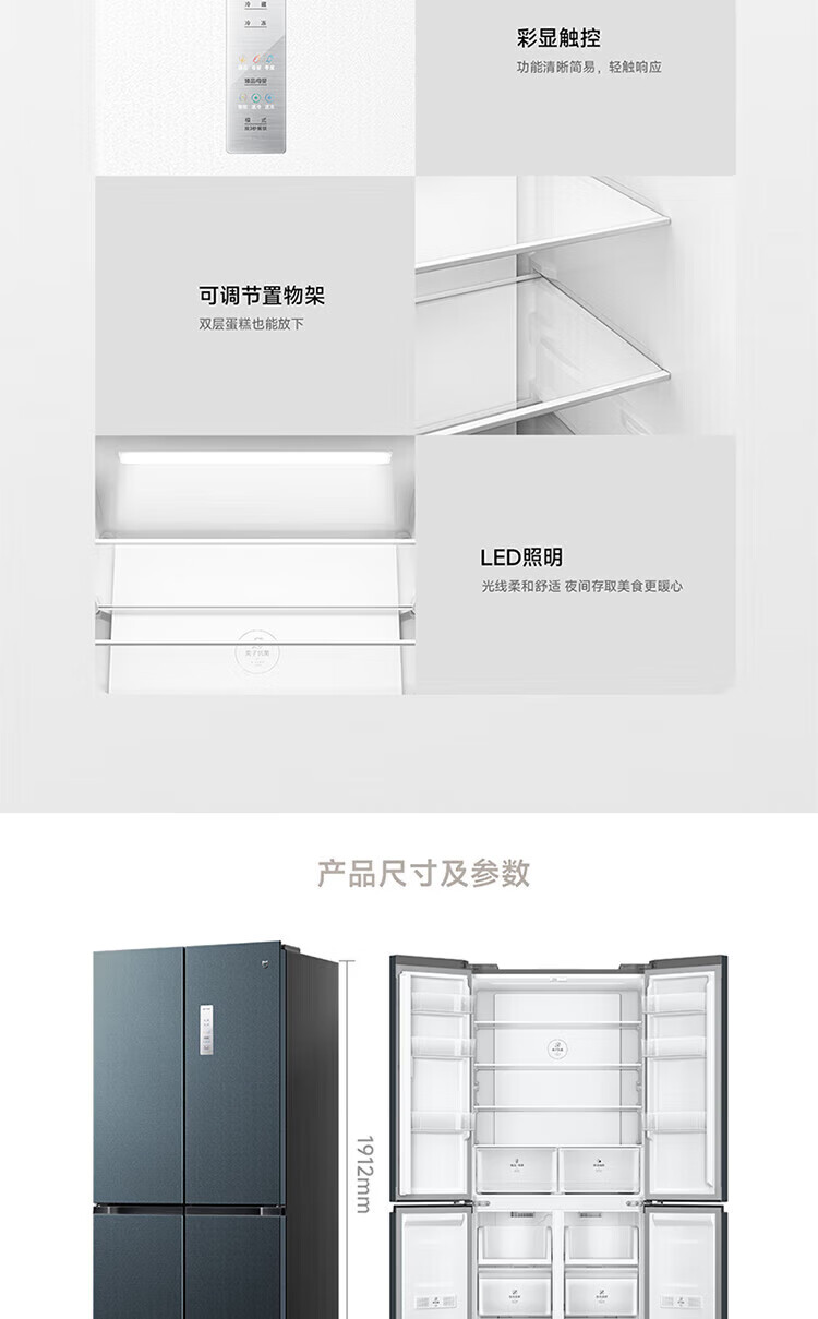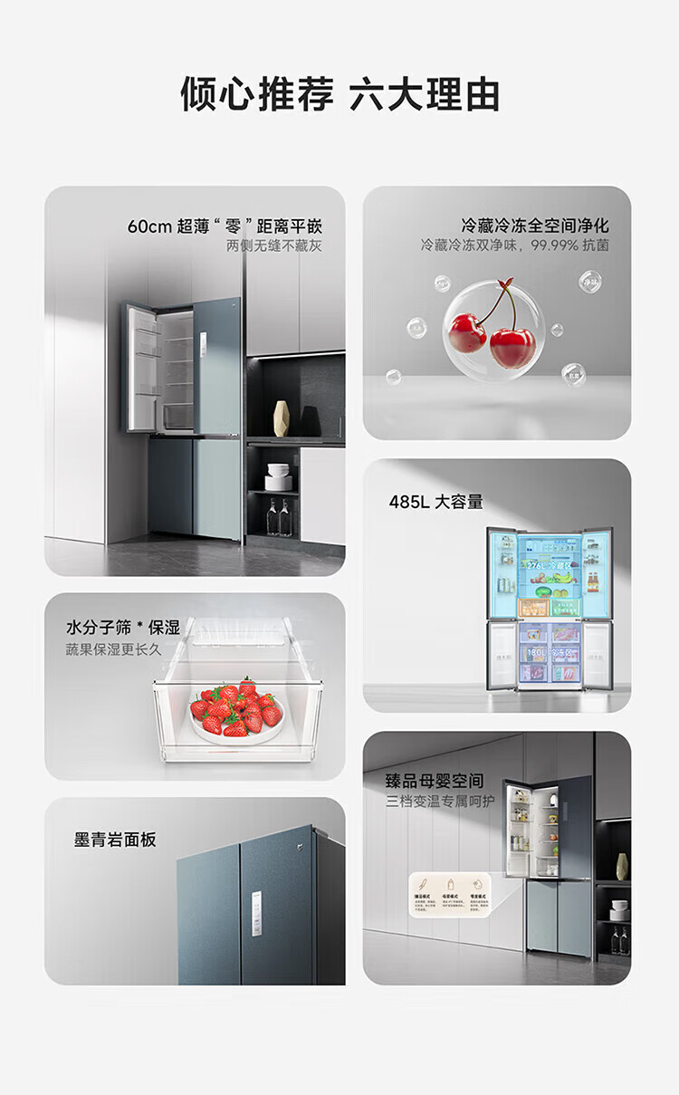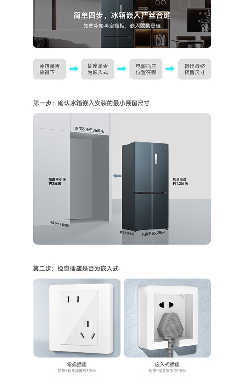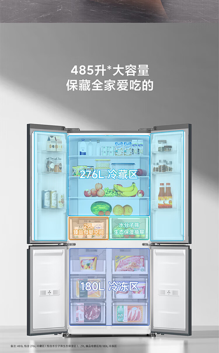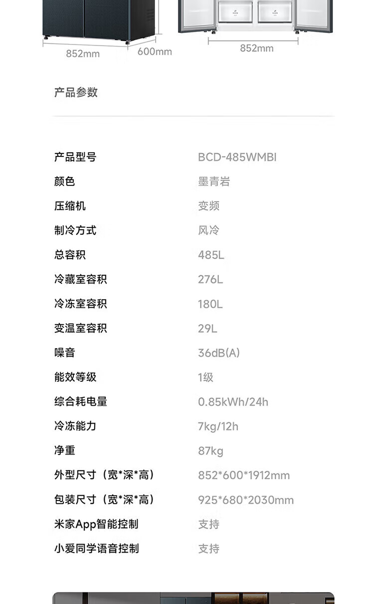 小米(MI)米家485升平嵌十字对开四开多门超薄平嵌嵌入式冰箱家用变频一级能效大容量底部散热全空间净化 米家485L十字冰箱 BCD-485WMBI