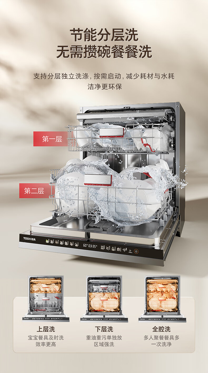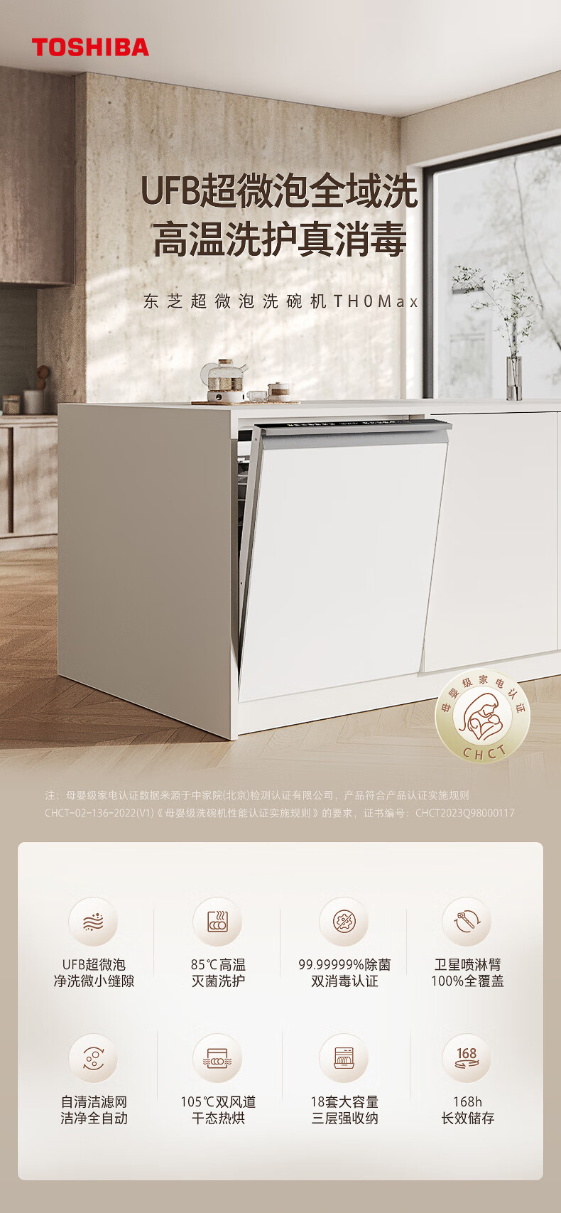 东芝(TOSHIBA)【白玉】洗碗机18套大容量 超净纳米微泡洗 五星消毒 85°高温 母婴级认证 门店同款DWTH0Max-1825