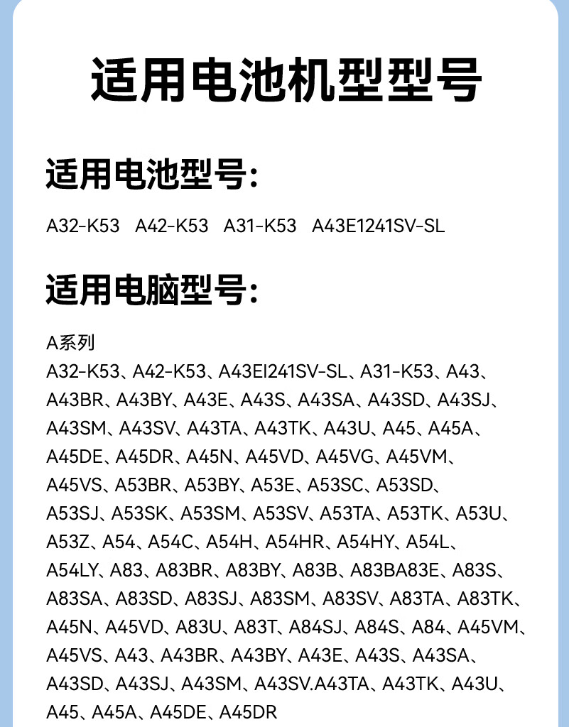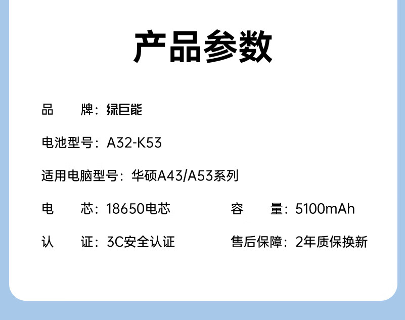绿巨能(llano)适用华硕A32-K53笔记本电池 A43E A43S K53SJ A53S K53S X43S X53S X43E X44H Asus电脑电池6芯