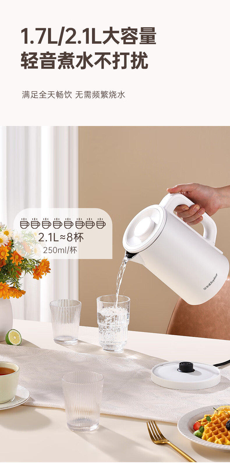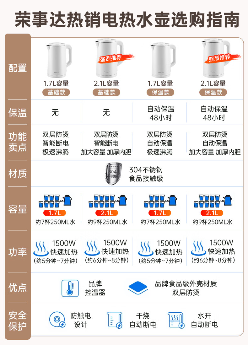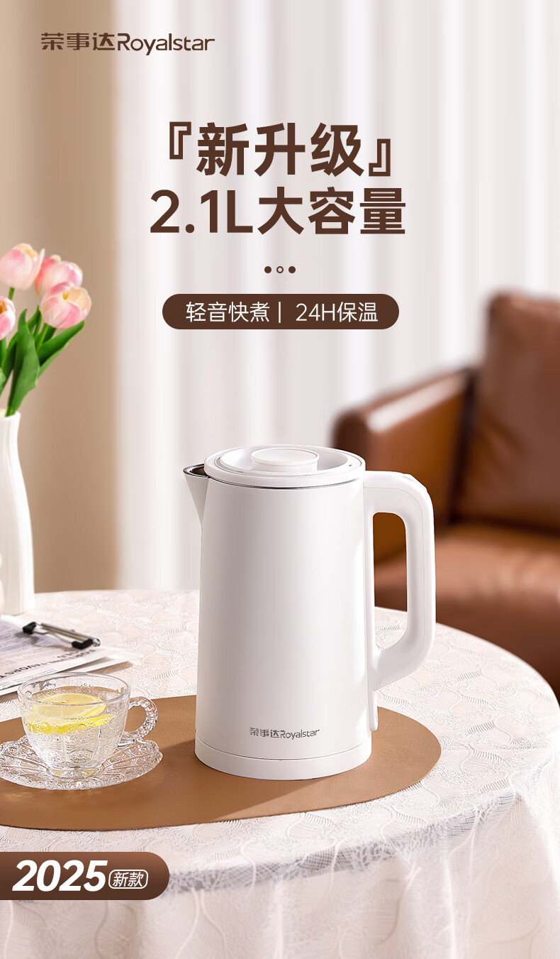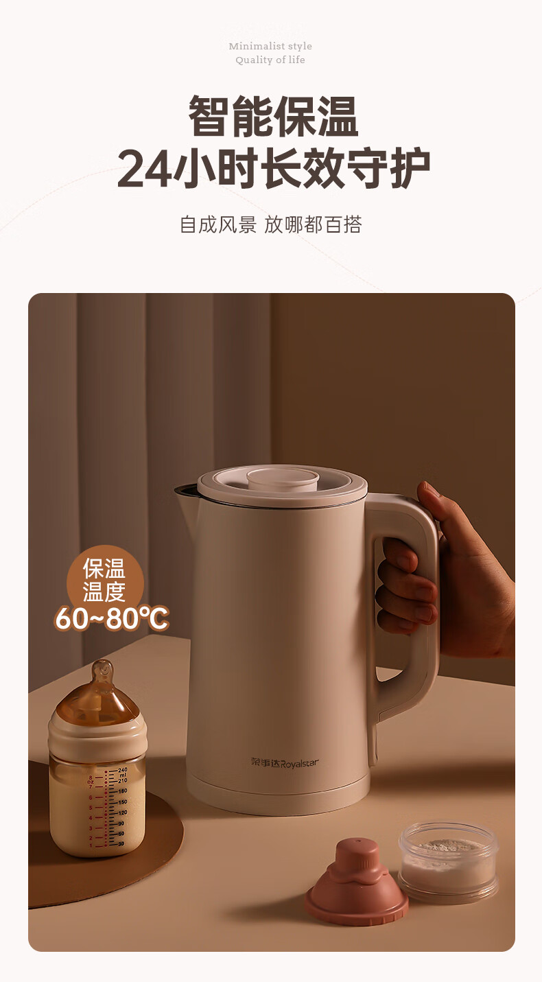 荣事达烧水壶电热水壶自动断电保温一体全自动恒温最新款电水壶开水壶大容量家用304母婴级内胆冲奶母婴 1.7L 双层防烫+自动断电