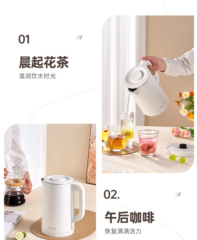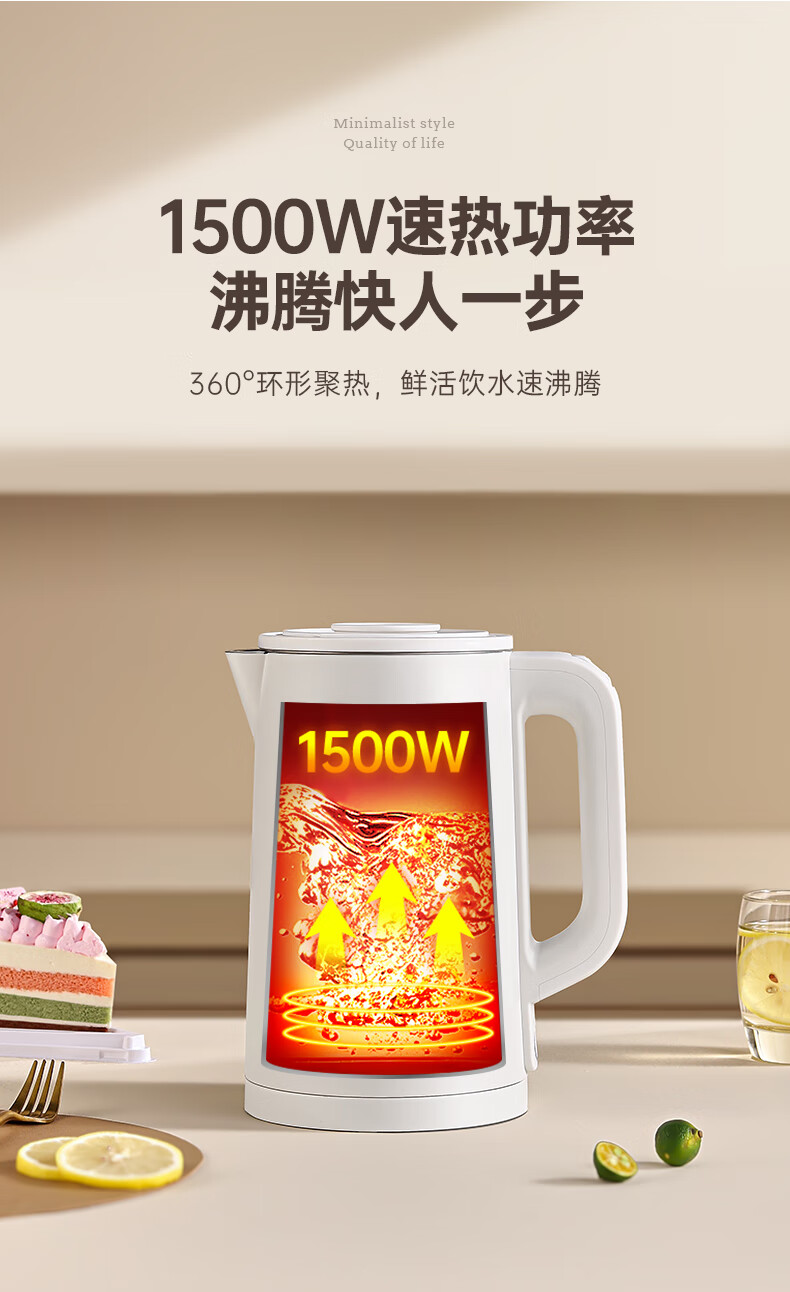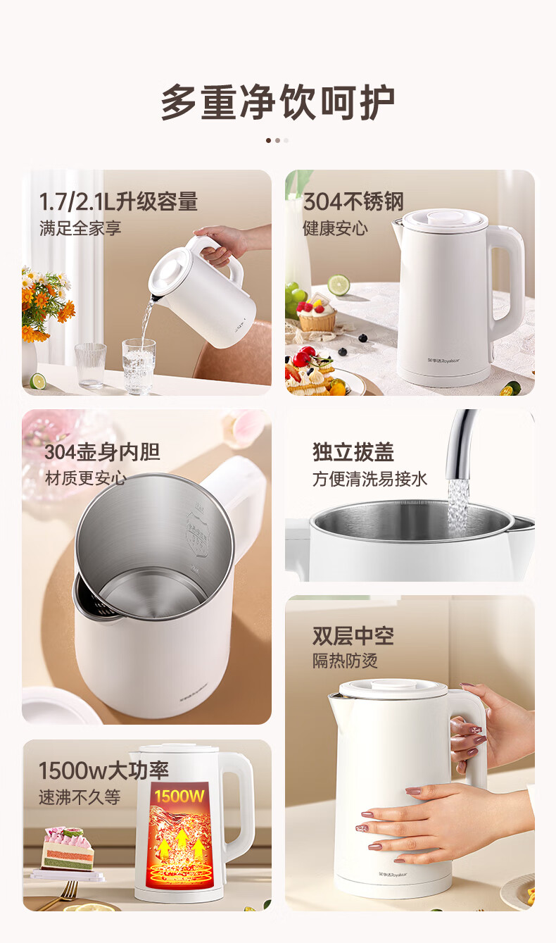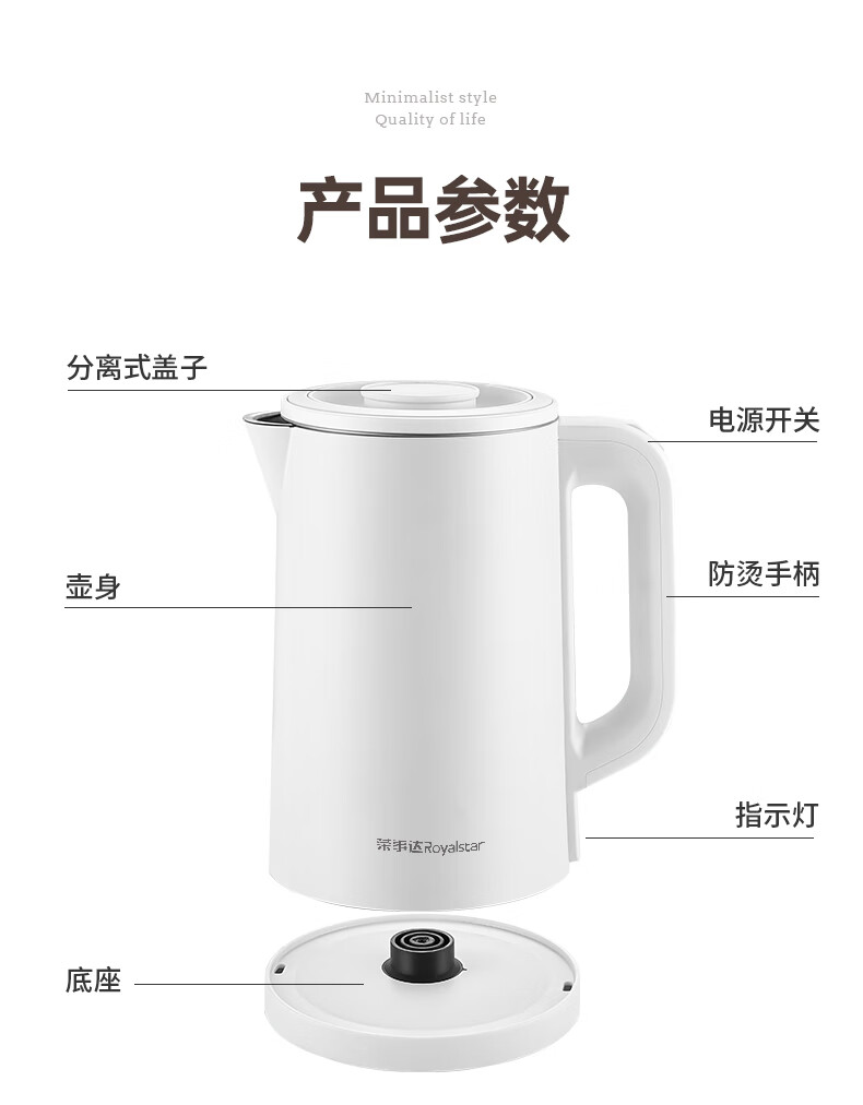 荣事达烧水壶电热水壶自动断电保温一体全自动恒温最新款电水壶开水壶大容量家用304母婴级内胆冲奶母婴 1.7L 双层防烫+自动断电