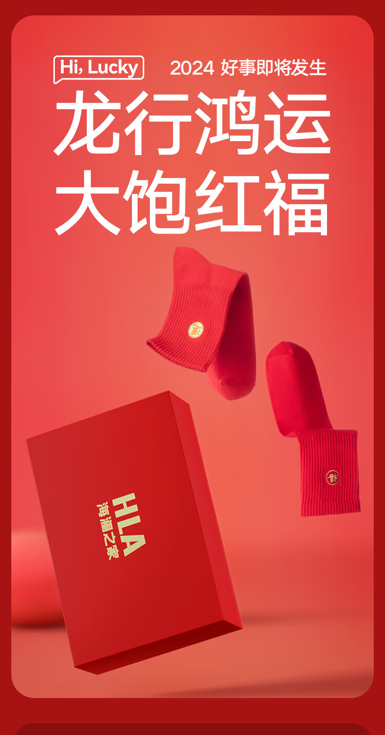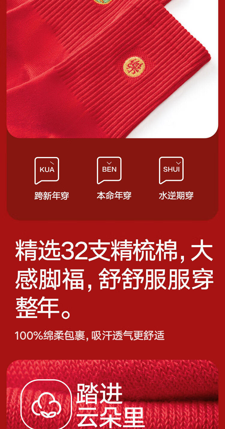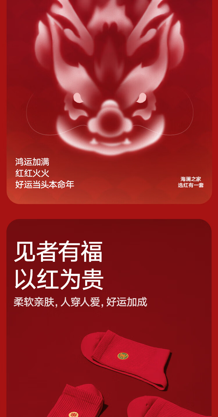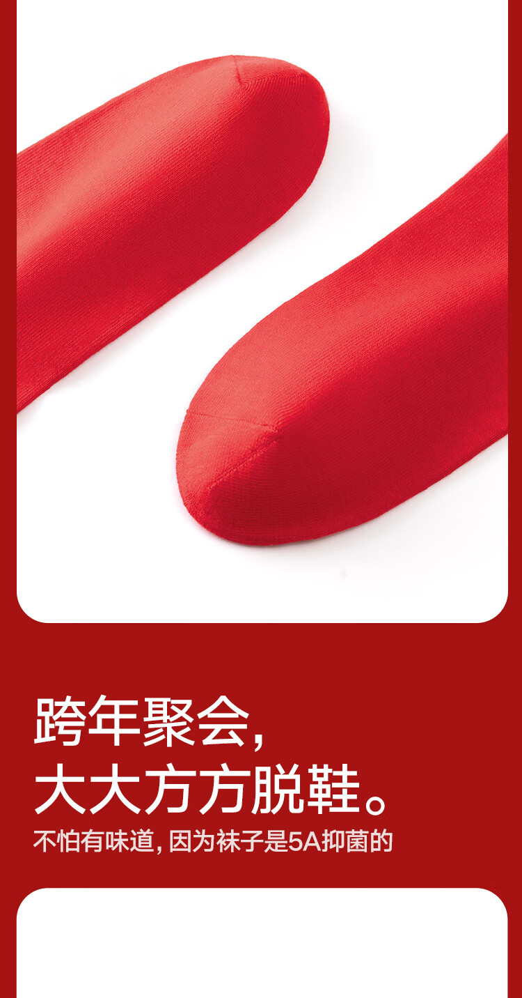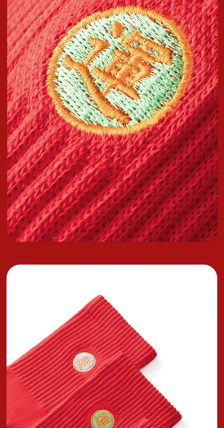 海澜之家【鸿运】红袜子男本命年纯棉抗菌消臭骐骥红马年红色中长袜3双装