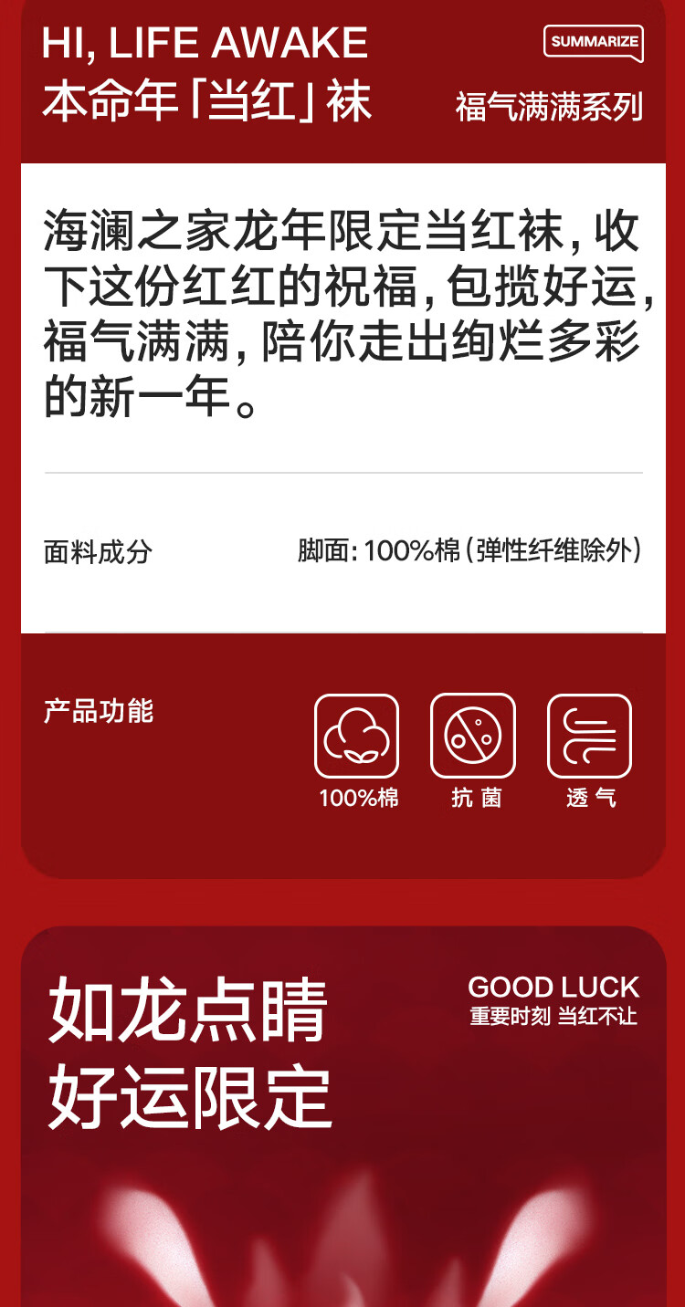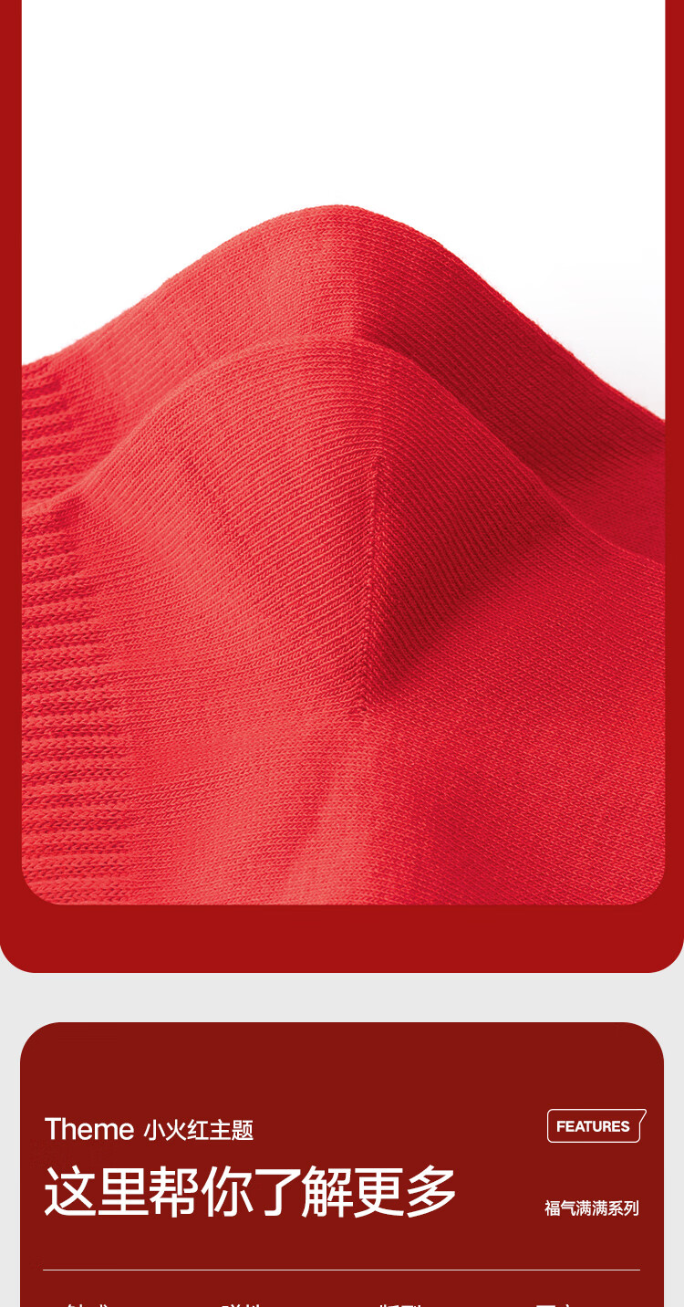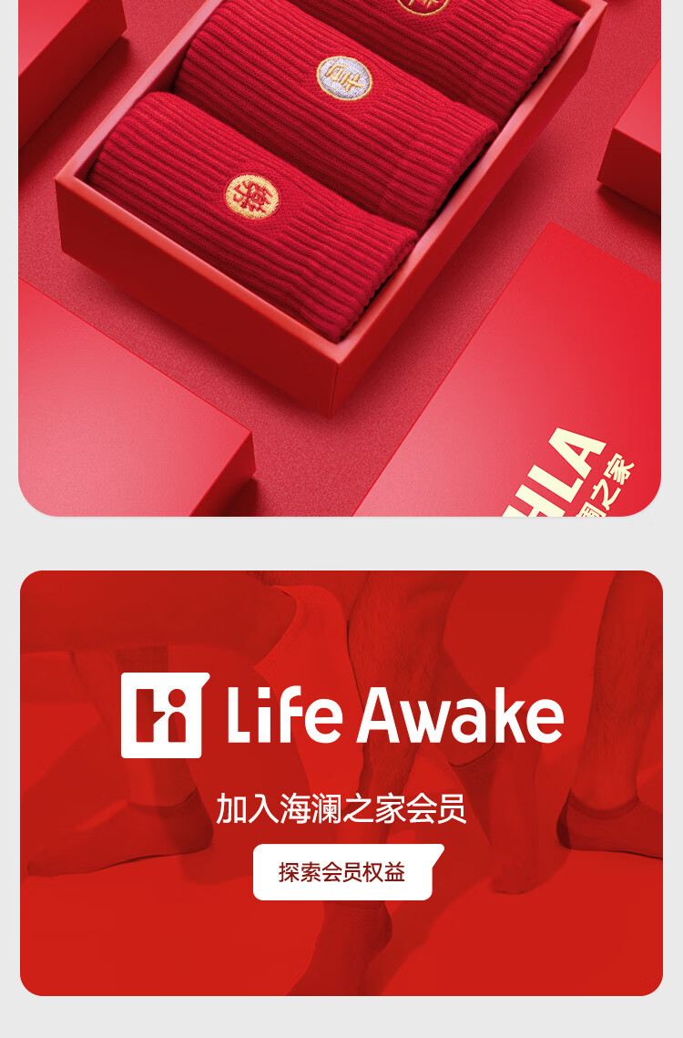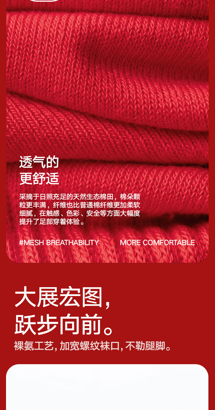 海澜之家【鸿运】红袜子男本命年纯棉抗菌消臭骐骥红马年红色中长袜3双装