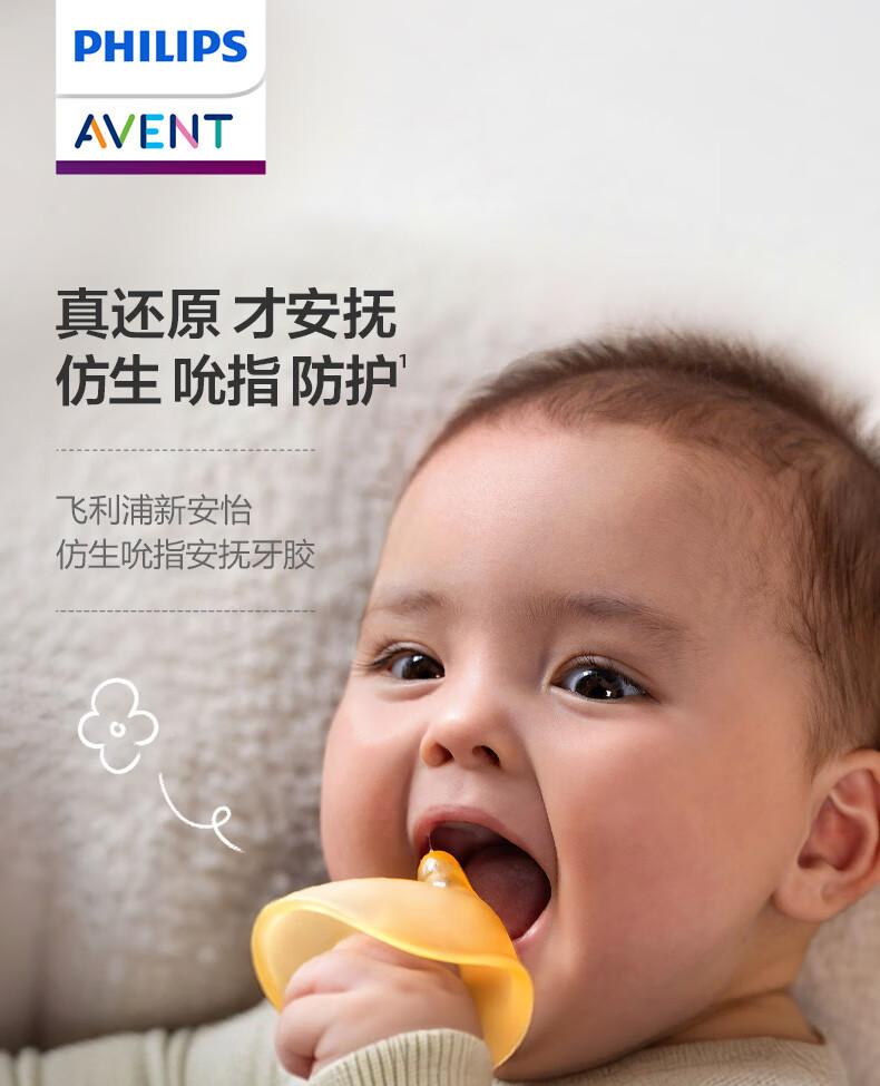 新安怡(AVENT)飞利浦新安怡牙胶婴儿口欲期防吃手宝宝安抚吮吸磨牙硅胶咬棒